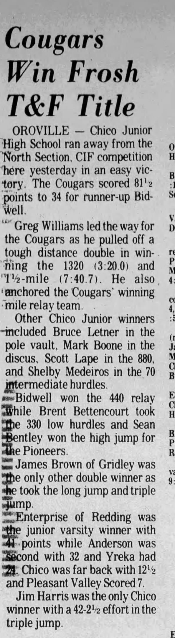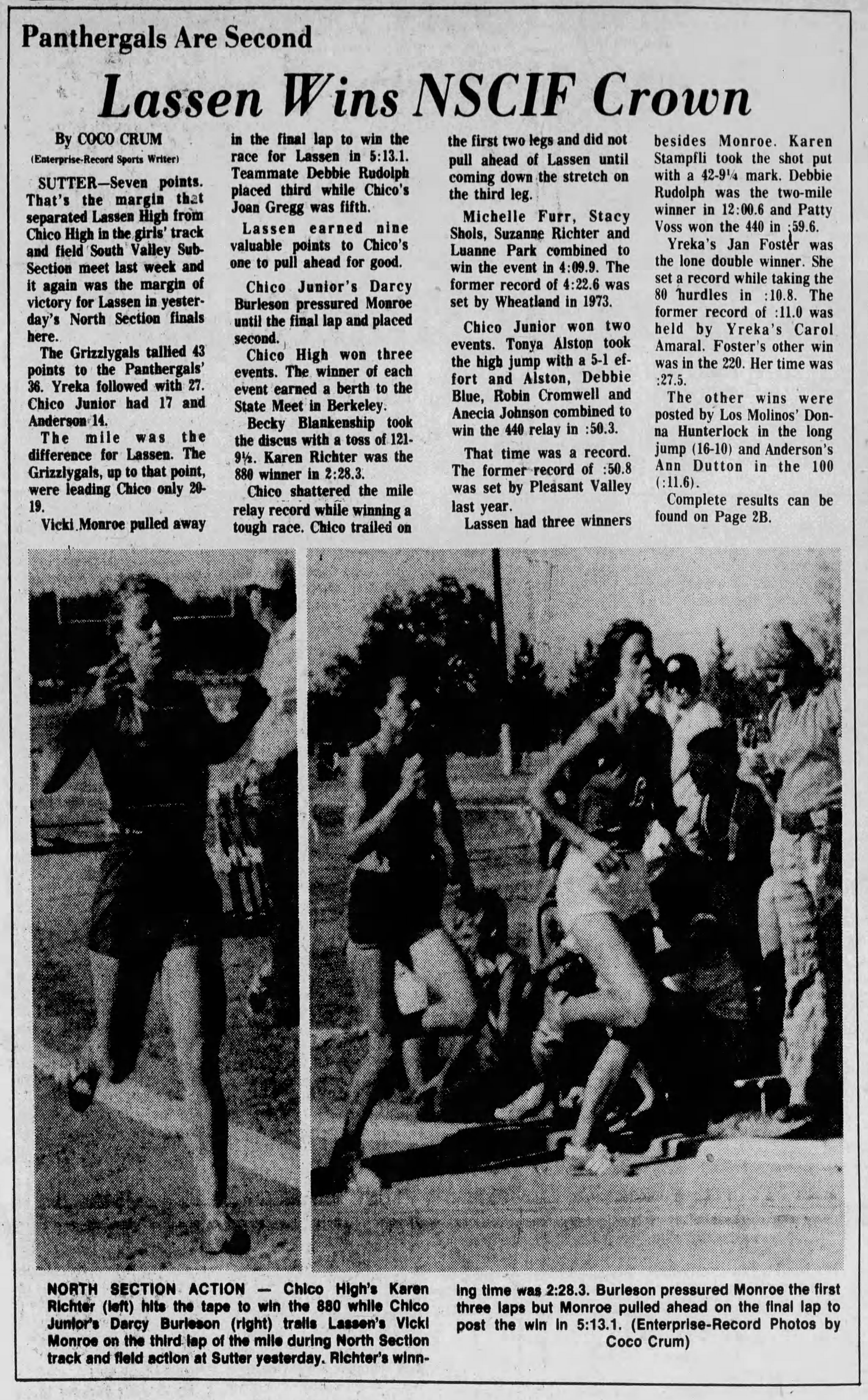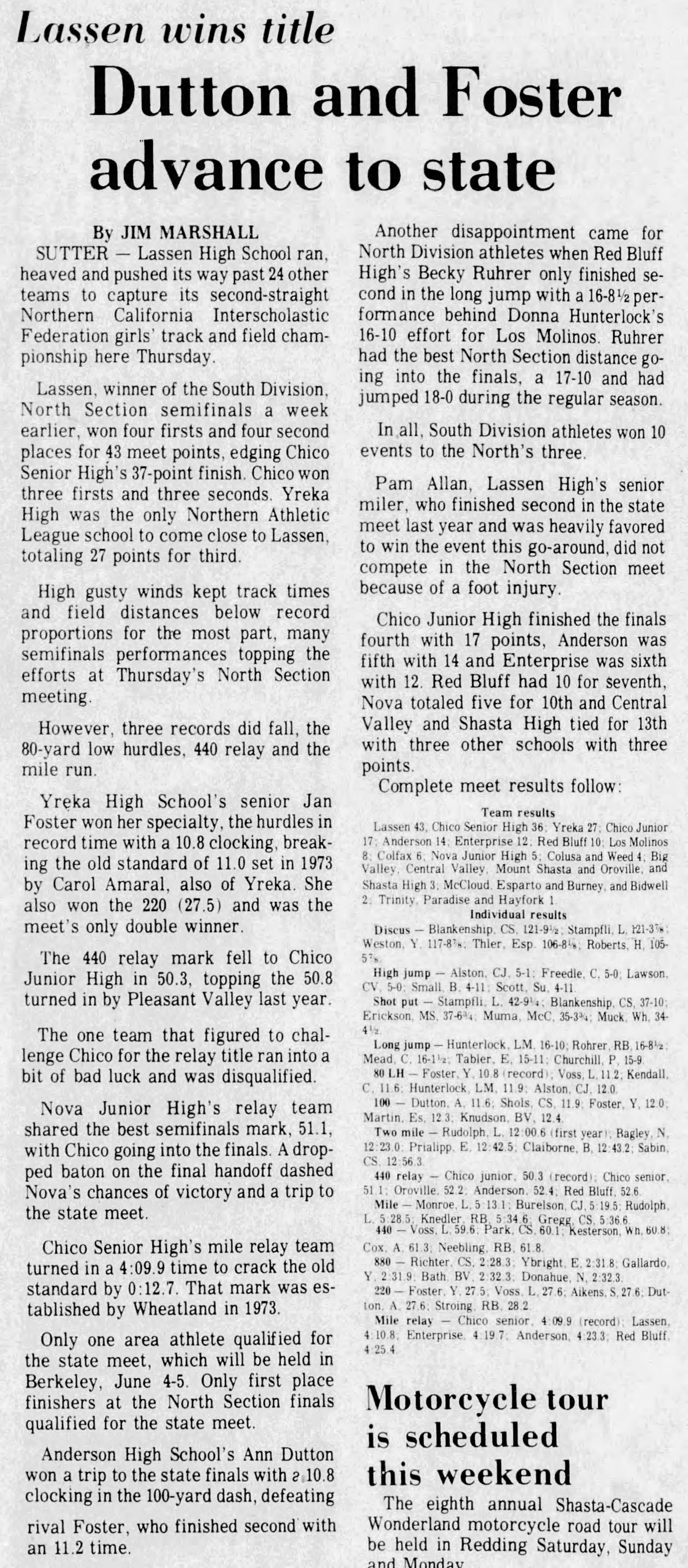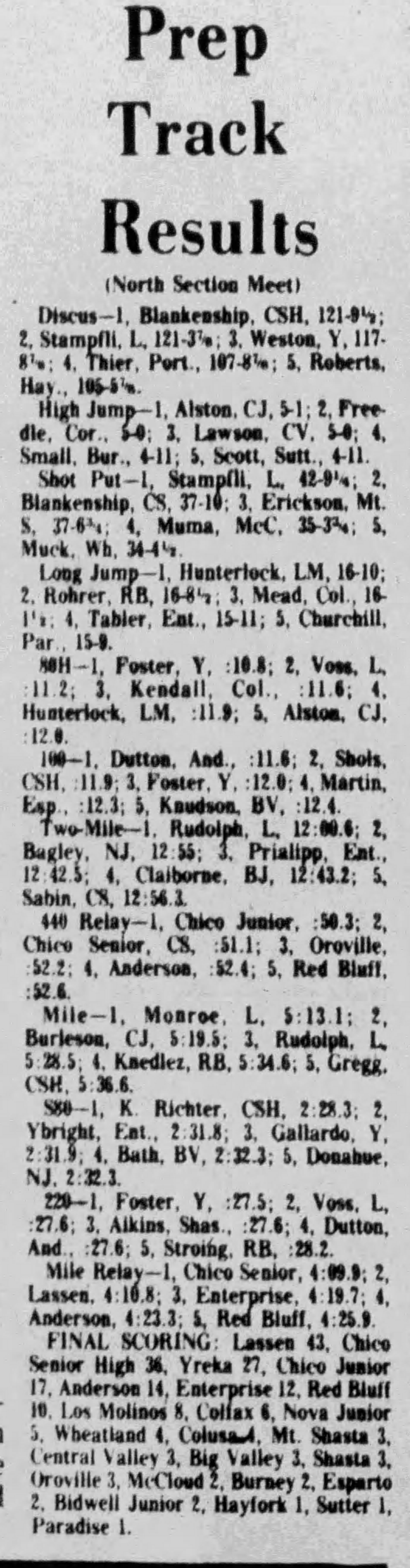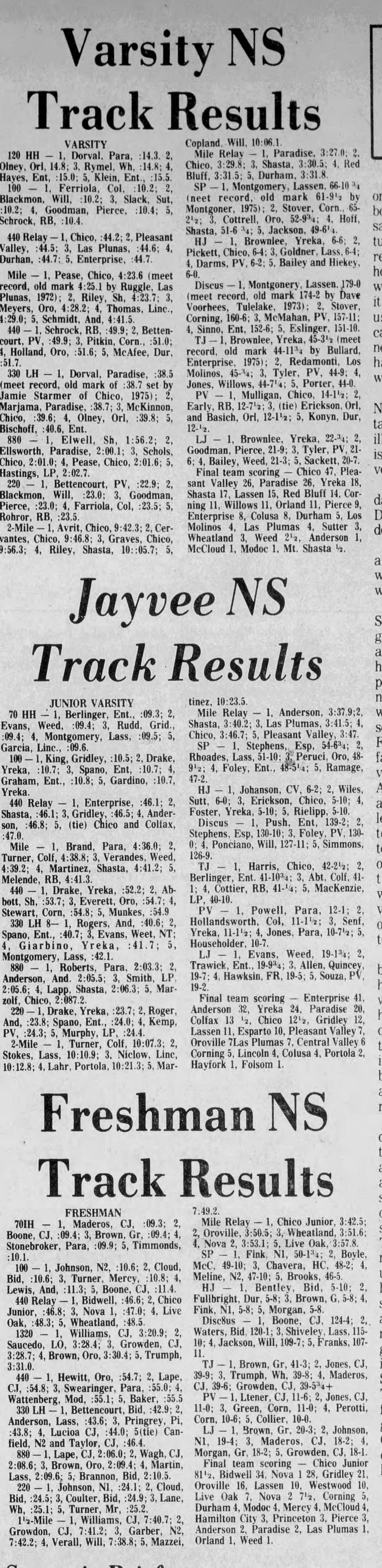 1976 NSCIF Boys Track & Field Championships Mitchell Field Oroville, California Friday May 28, 1976 1977 NSCIF Girls Track & Field Championships Sutter, California Thursday May 27, 1977