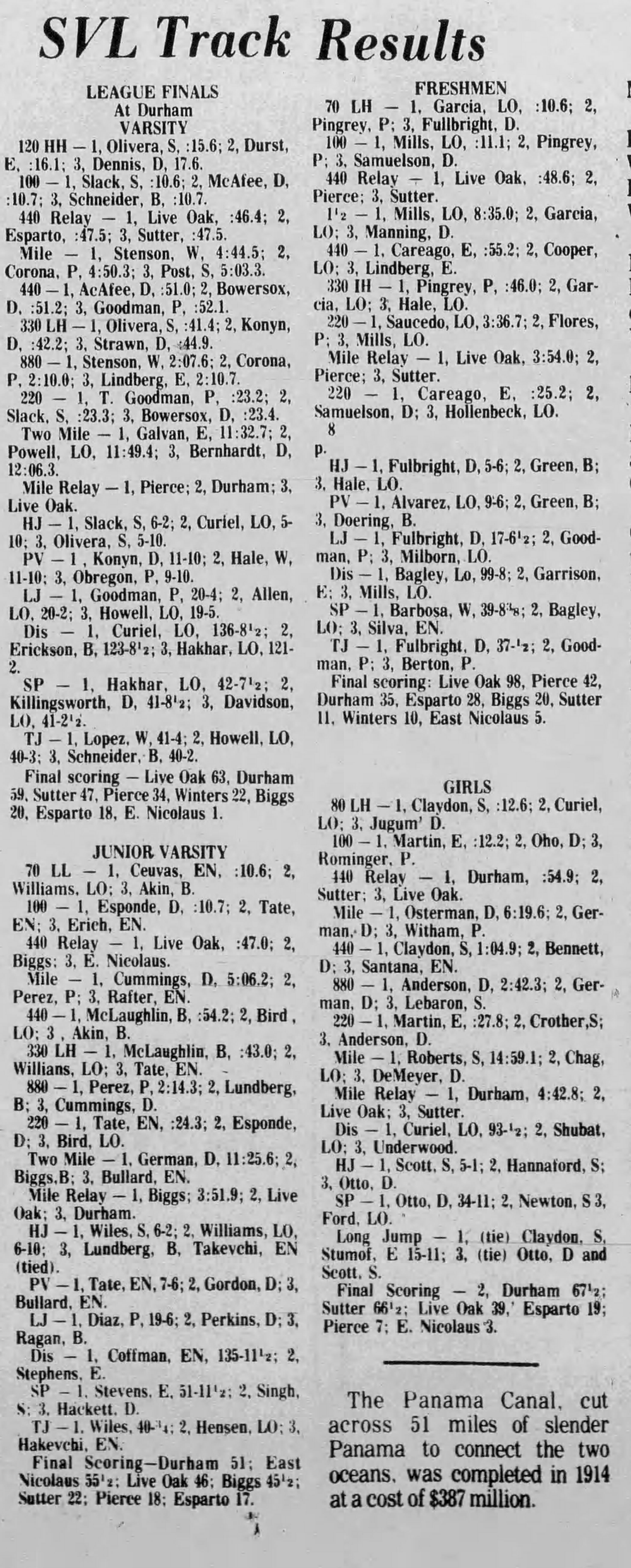 1976 Southern Valley League (SVL) Track & Field Championships Durham High School Durham, California Friday May 14, 1976