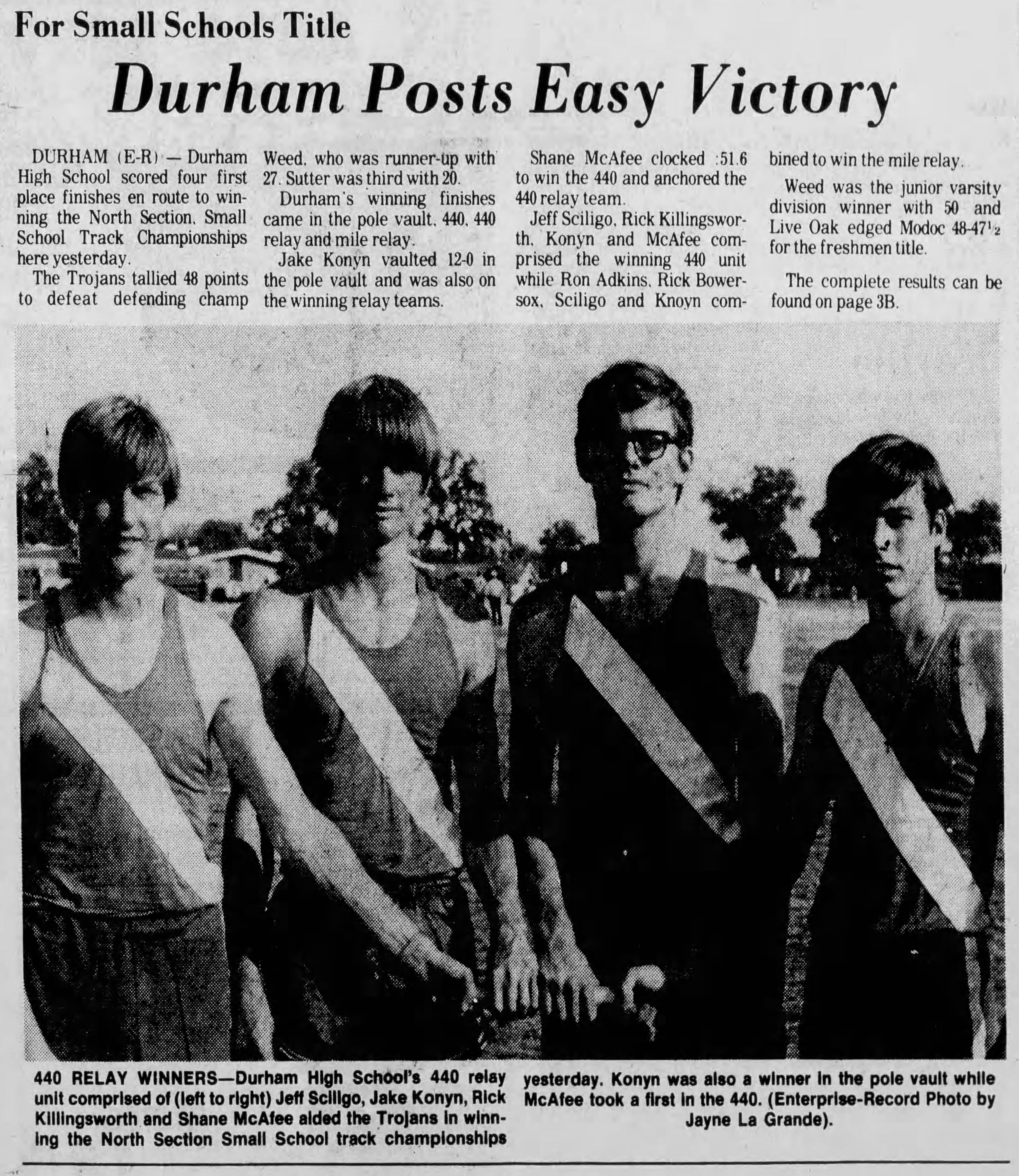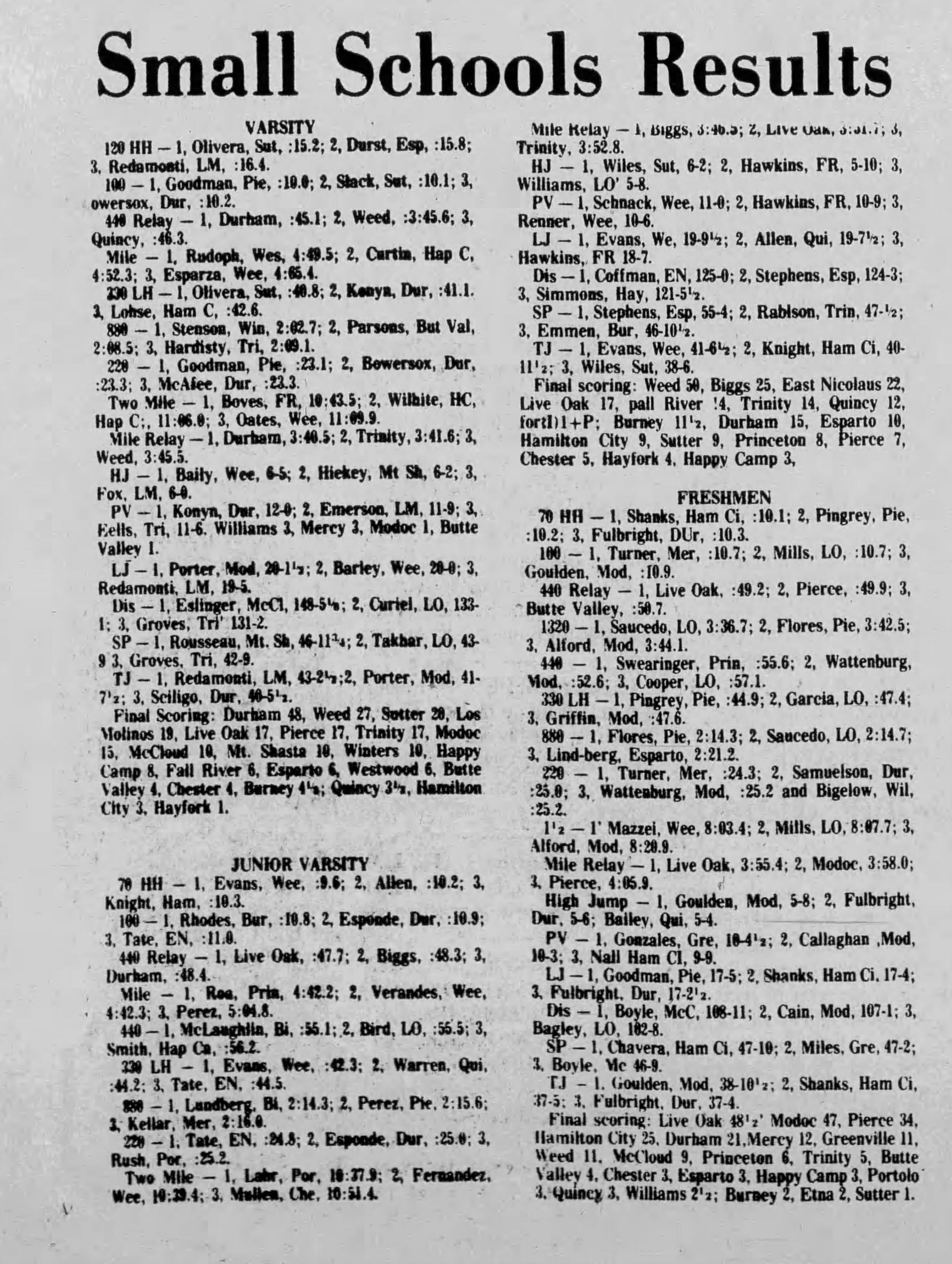 1976 Small Schools Subsection Qualifying Meet Durham High School Durham, California Friday May 21, 1976