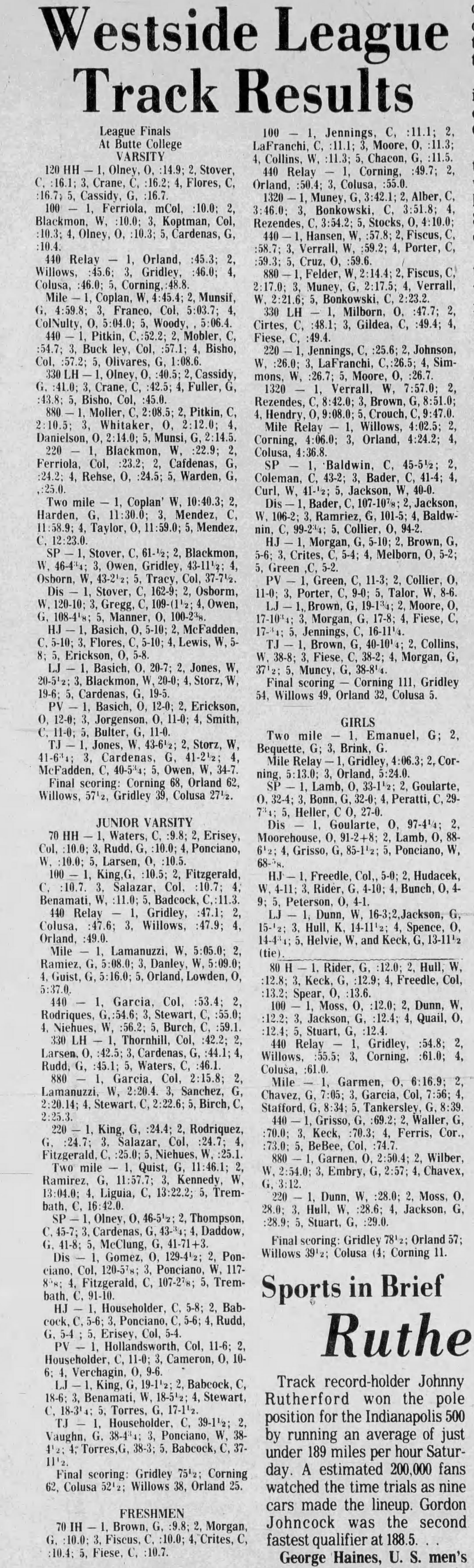1976 West Side League (WSL) Track & Field Championships Butte College Oroville, California Saturday May 15, 1976