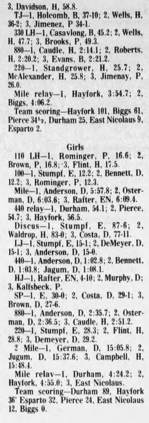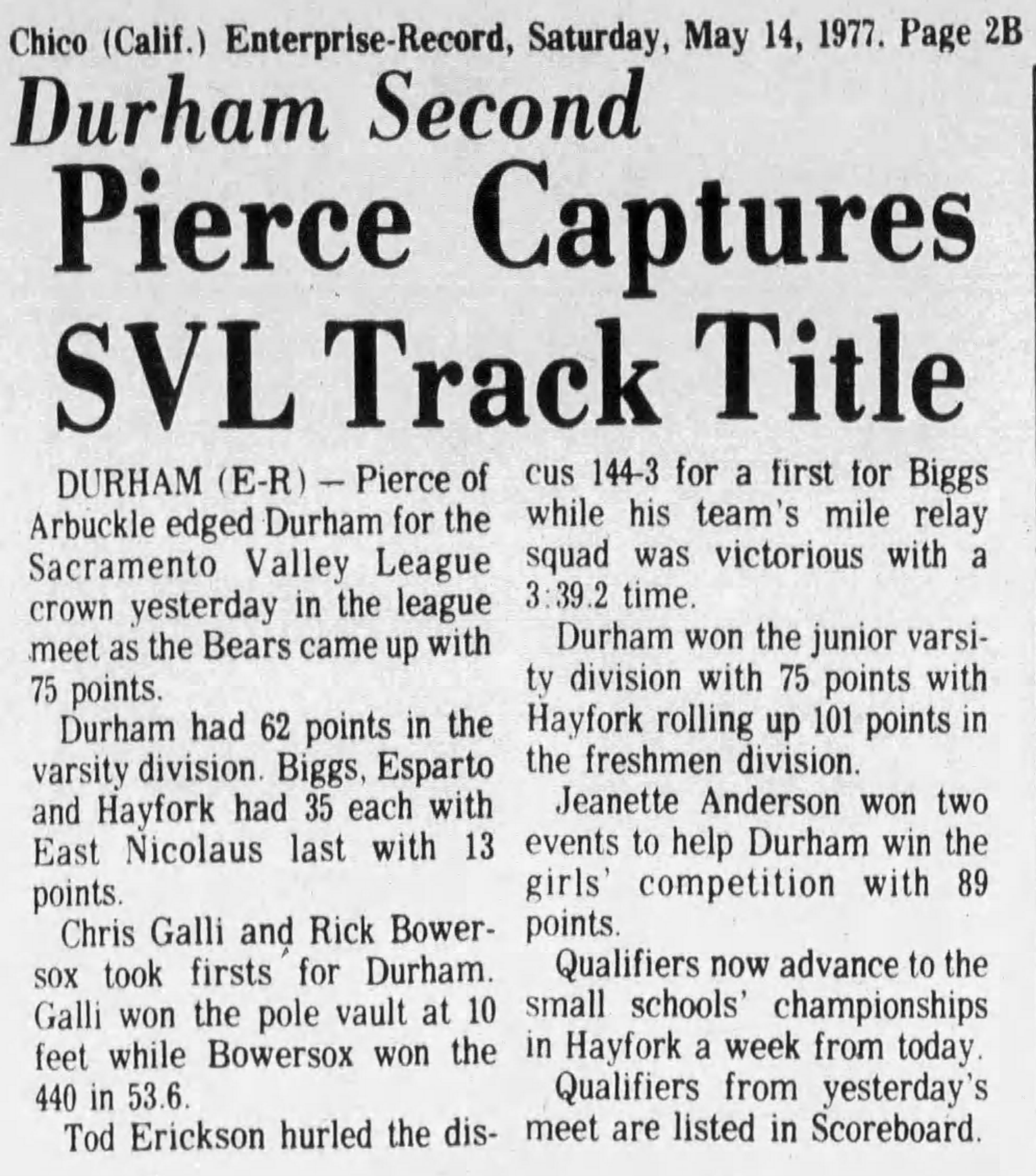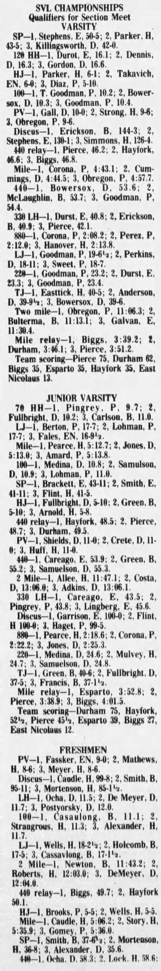 1977 Sacramento Valley League (SVL) Track & Field Championships Durham High School Durham, California Friday May 13, 1977
