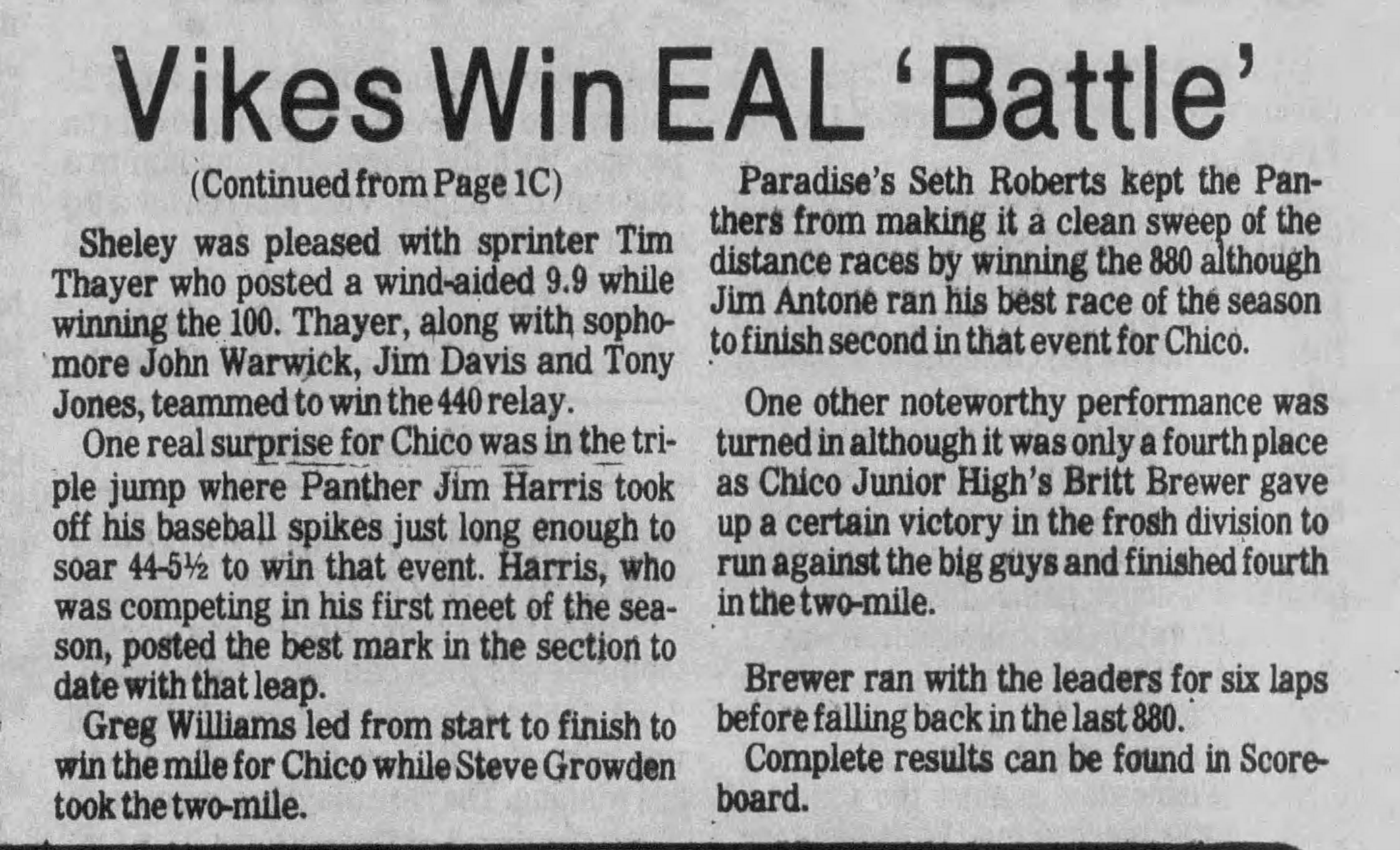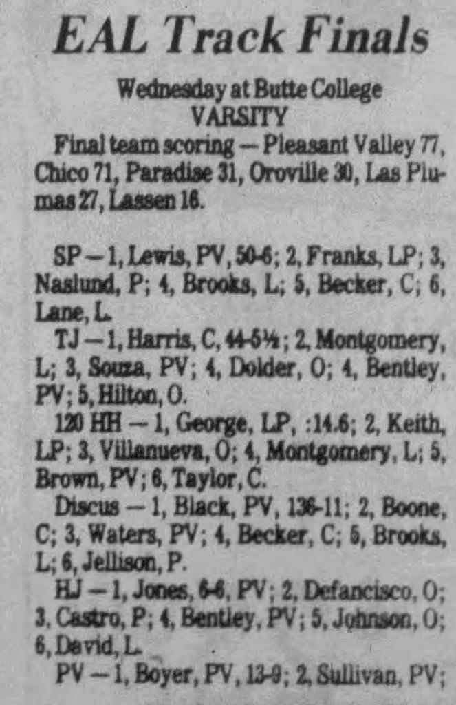1978 Eastern Athletic League (EAL) Boys Track & Field Championships Butte College Oroville, California Wednesday May 17, 1978