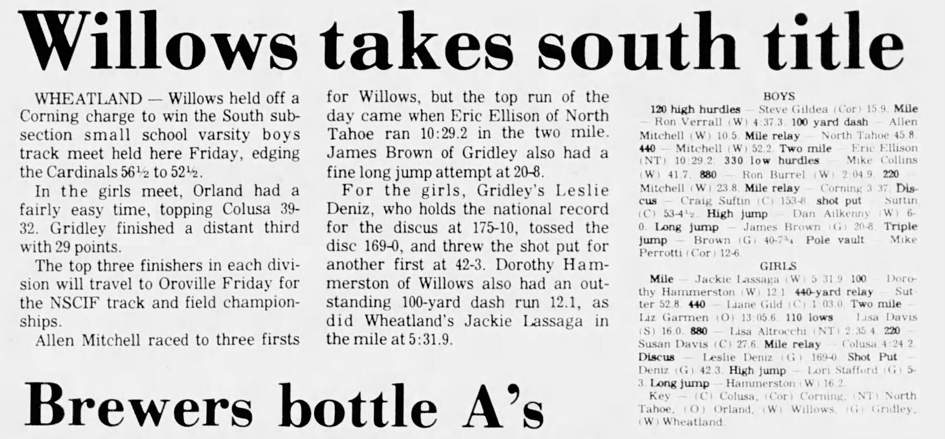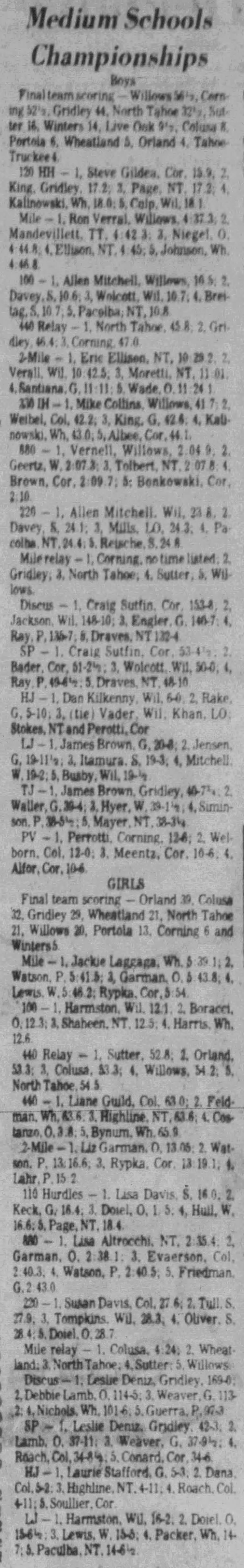 1979 Medium Schools (AA) Track & Field Championships Wheatland High School Wheatland, California Saturday May 19, 1979
