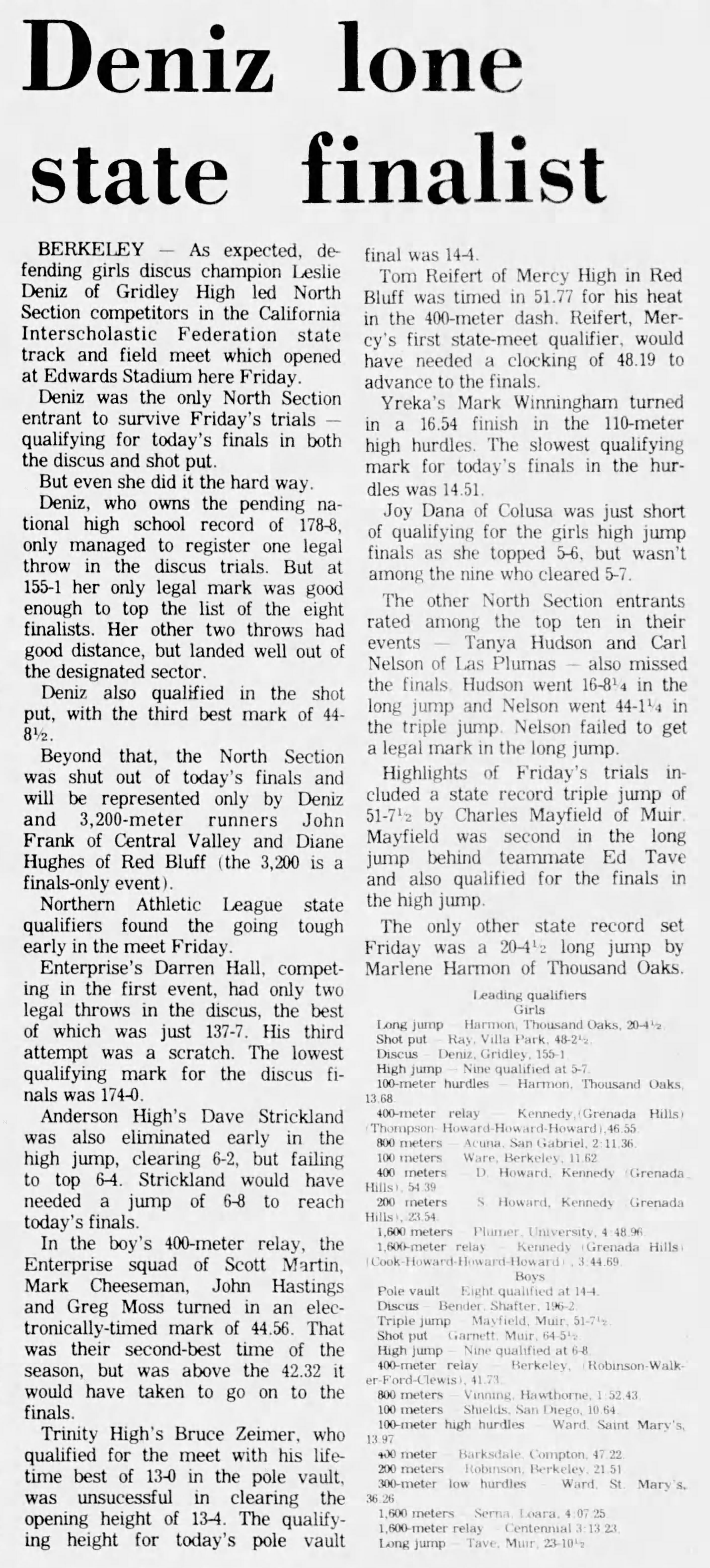 1980 CIF State T & F Meet - Redding RS Edwards Stadium University of California, Berkeley Berkeley, California Friday-Saturday, June 6-7 1980 Prelims Finals
