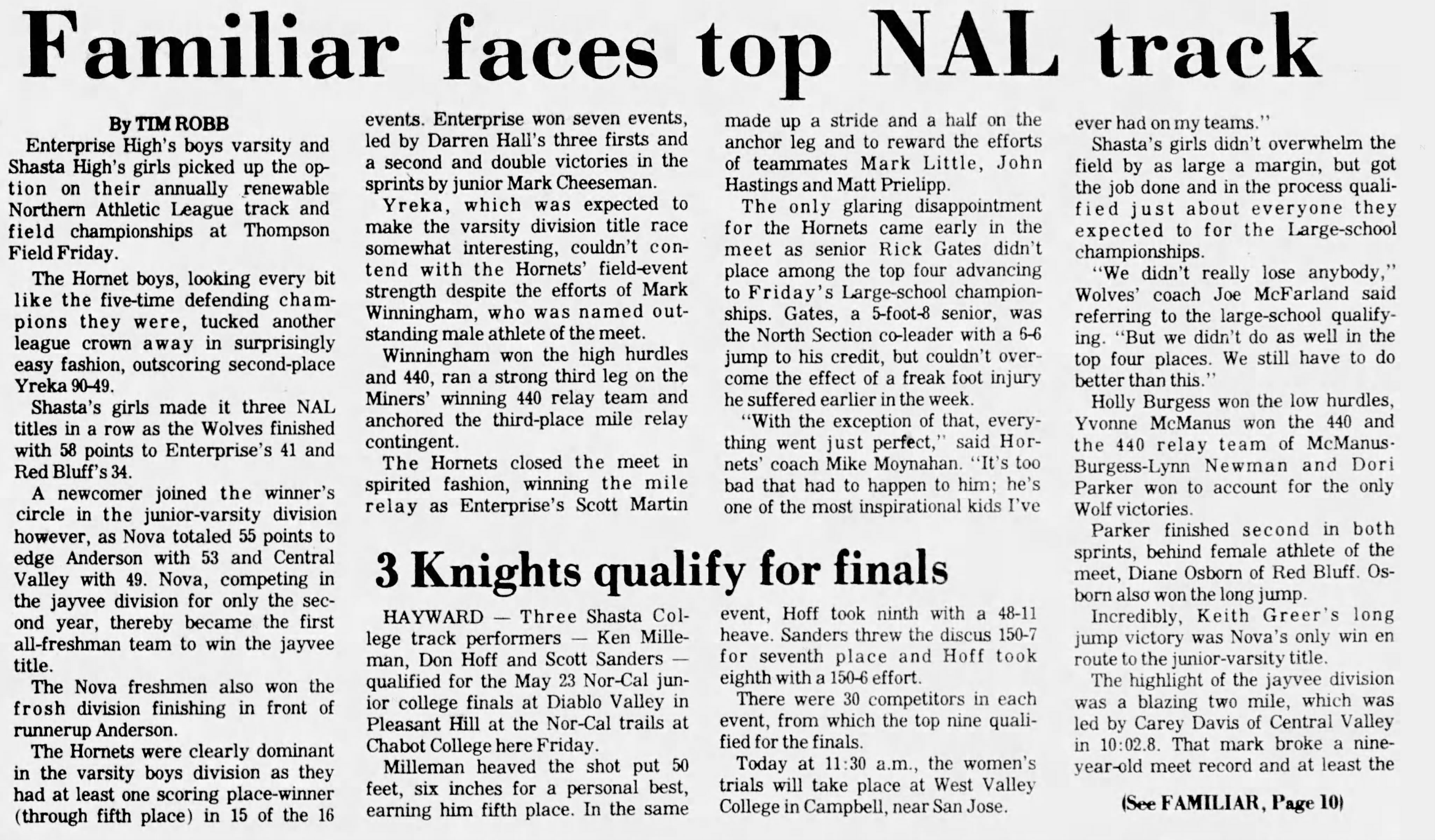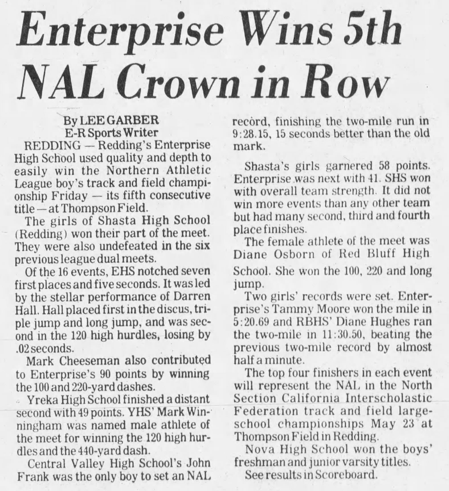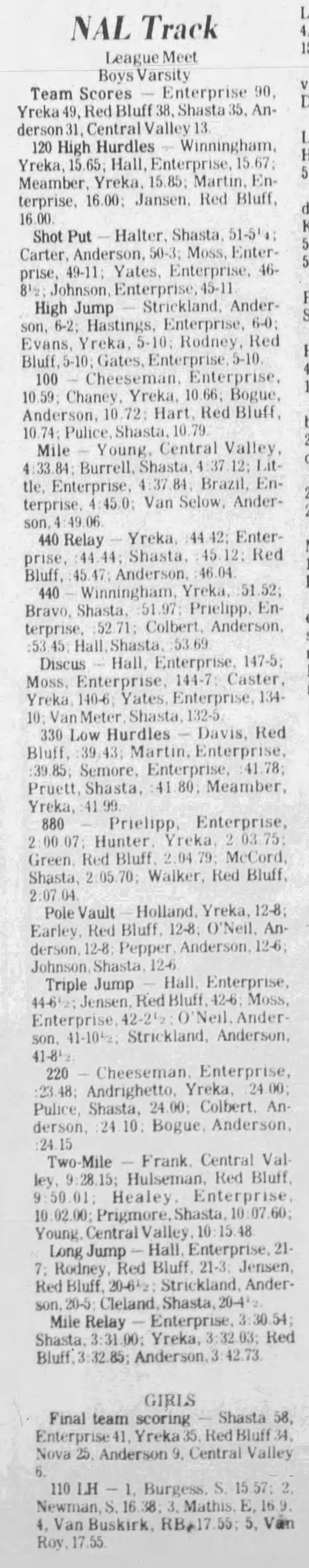 1980 Northern Athletic League (EAL) Track & Field Championships Thompson Field Shasta High School Redding, California Friday May 16, 1980