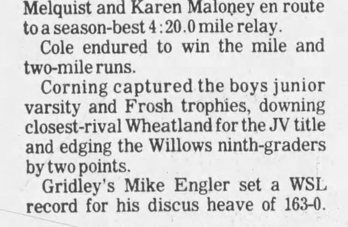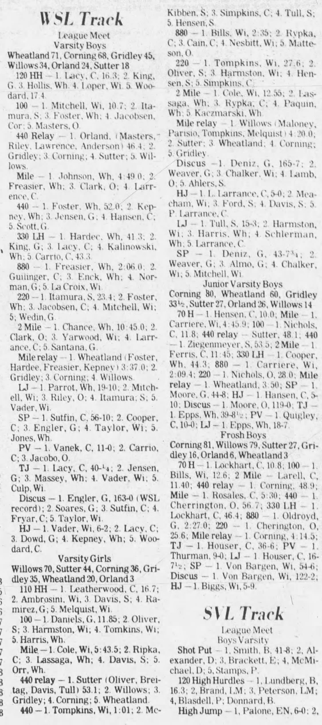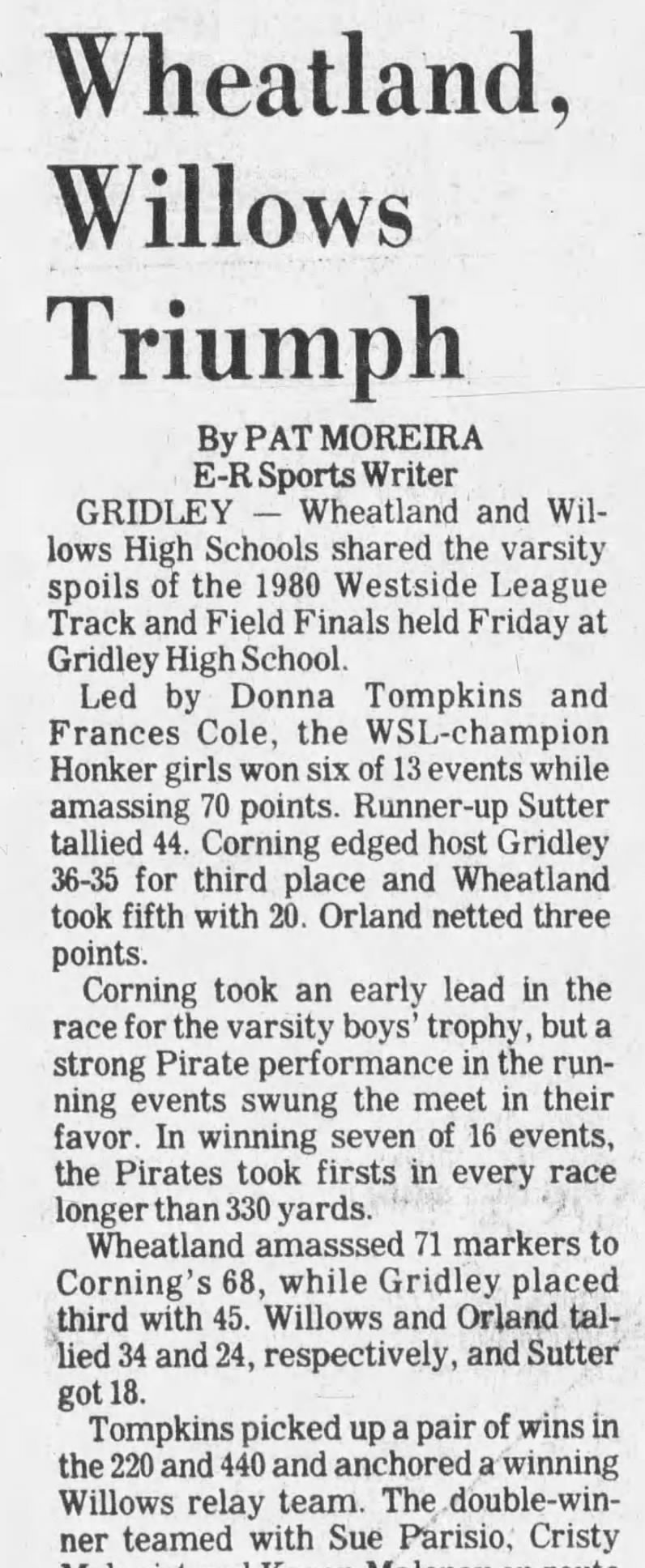 1980 West Side League (WSL) Track & Field Championships Gridley High School Gridley, California Friday May 16, 1980