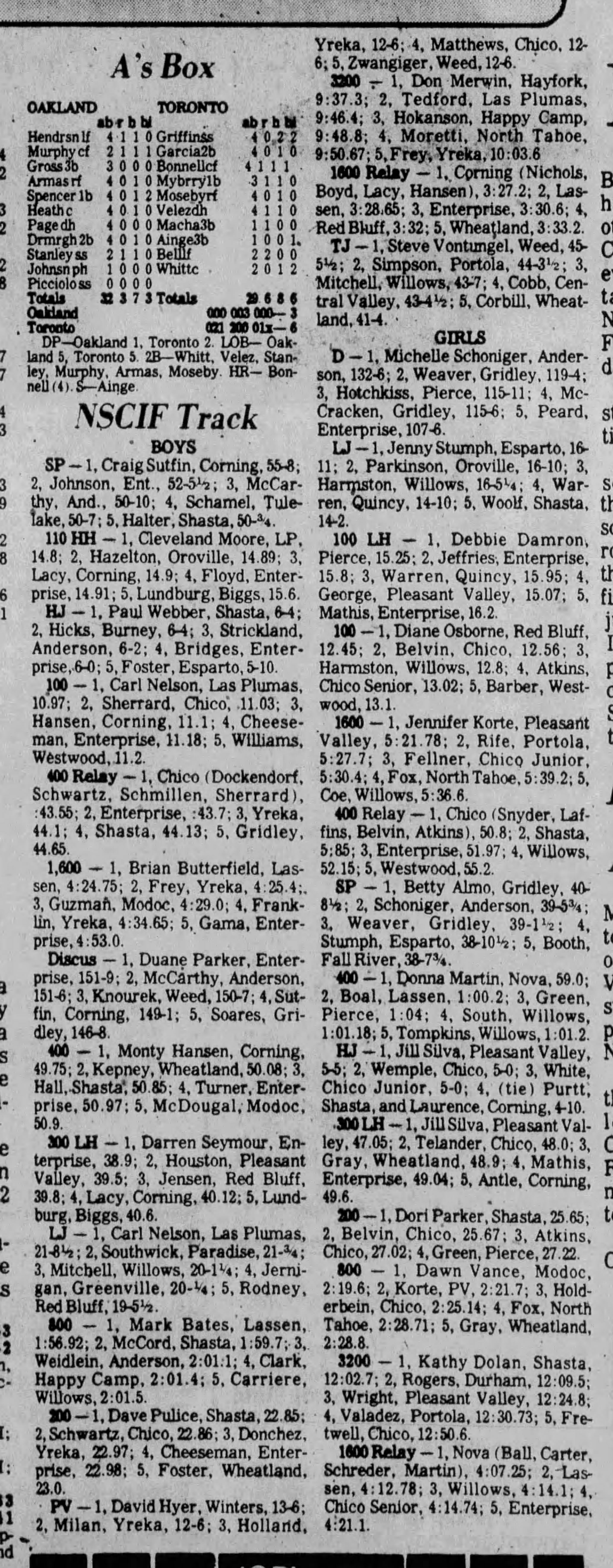 1981 NSCIF Track & Field Finals Yreka High School Yreka, California Friday May 29, 1981 . Boys results (5 deep)