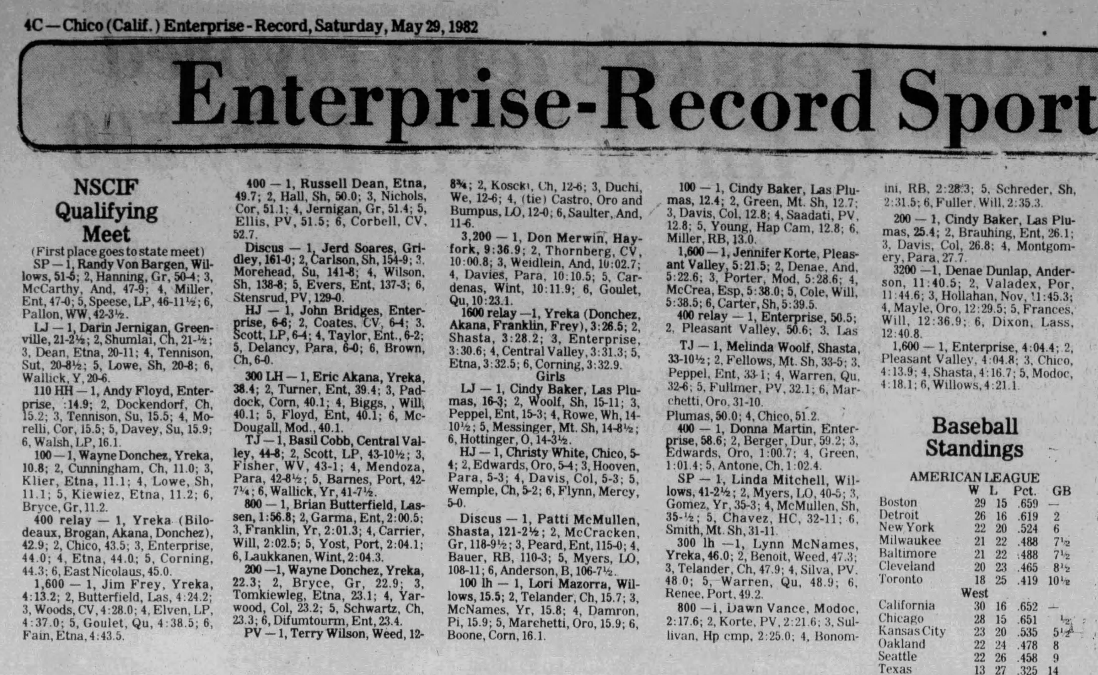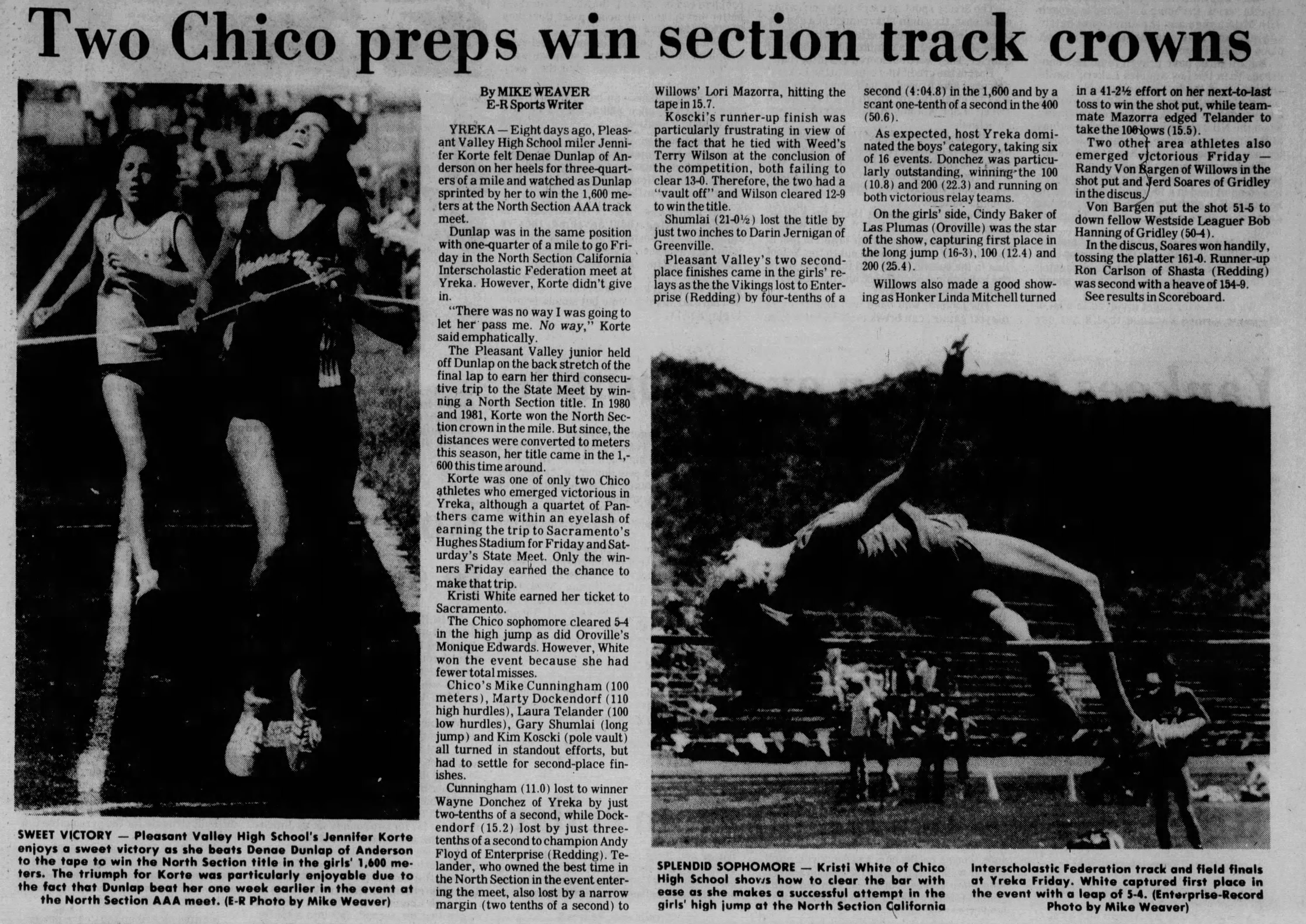 1982 NSCIF Track & Field Finals Yreka High School Yreka, California Friday May 28, 1982 . Boys results (full names)