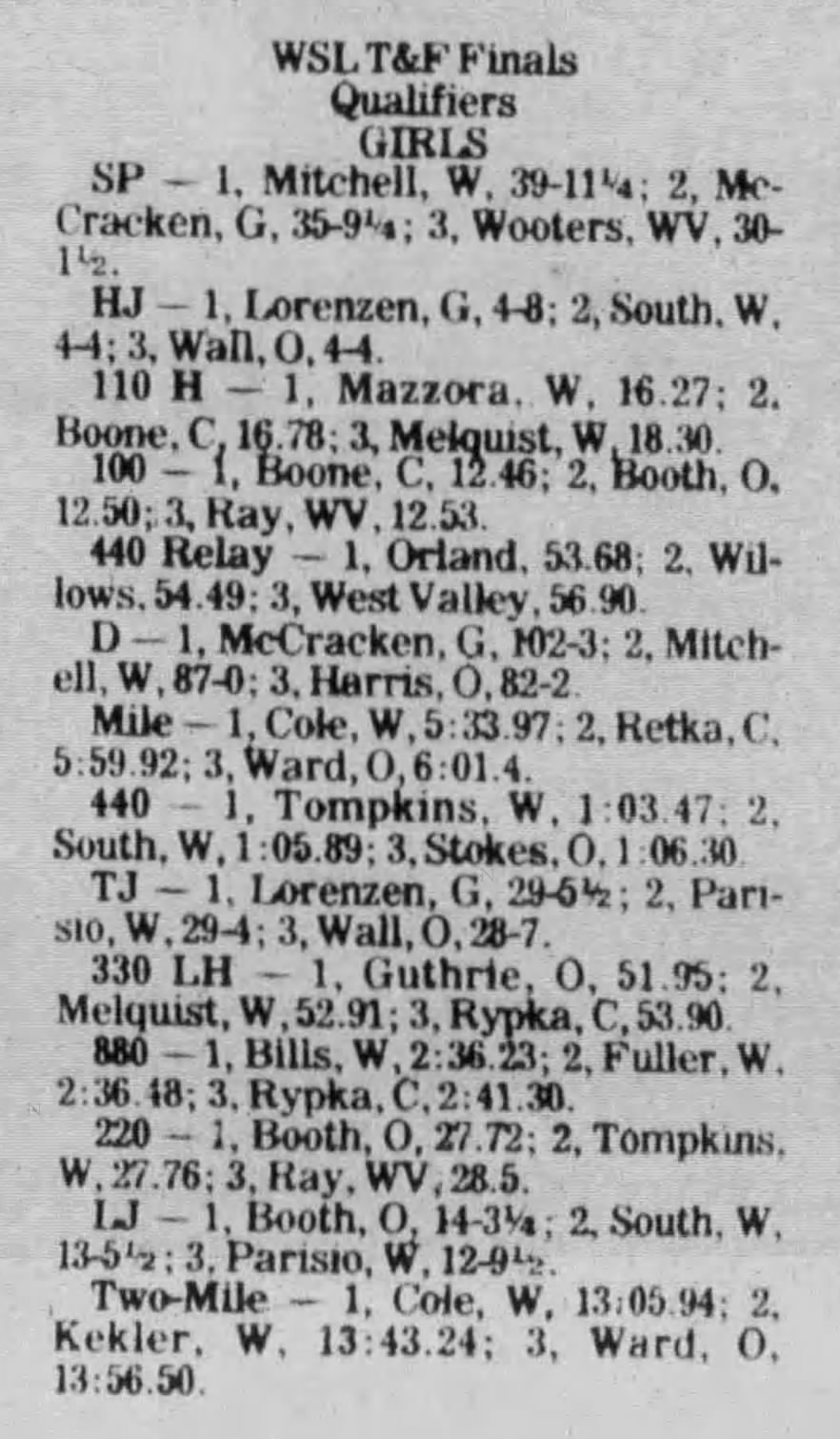 1982 WSL Track & Field Championships