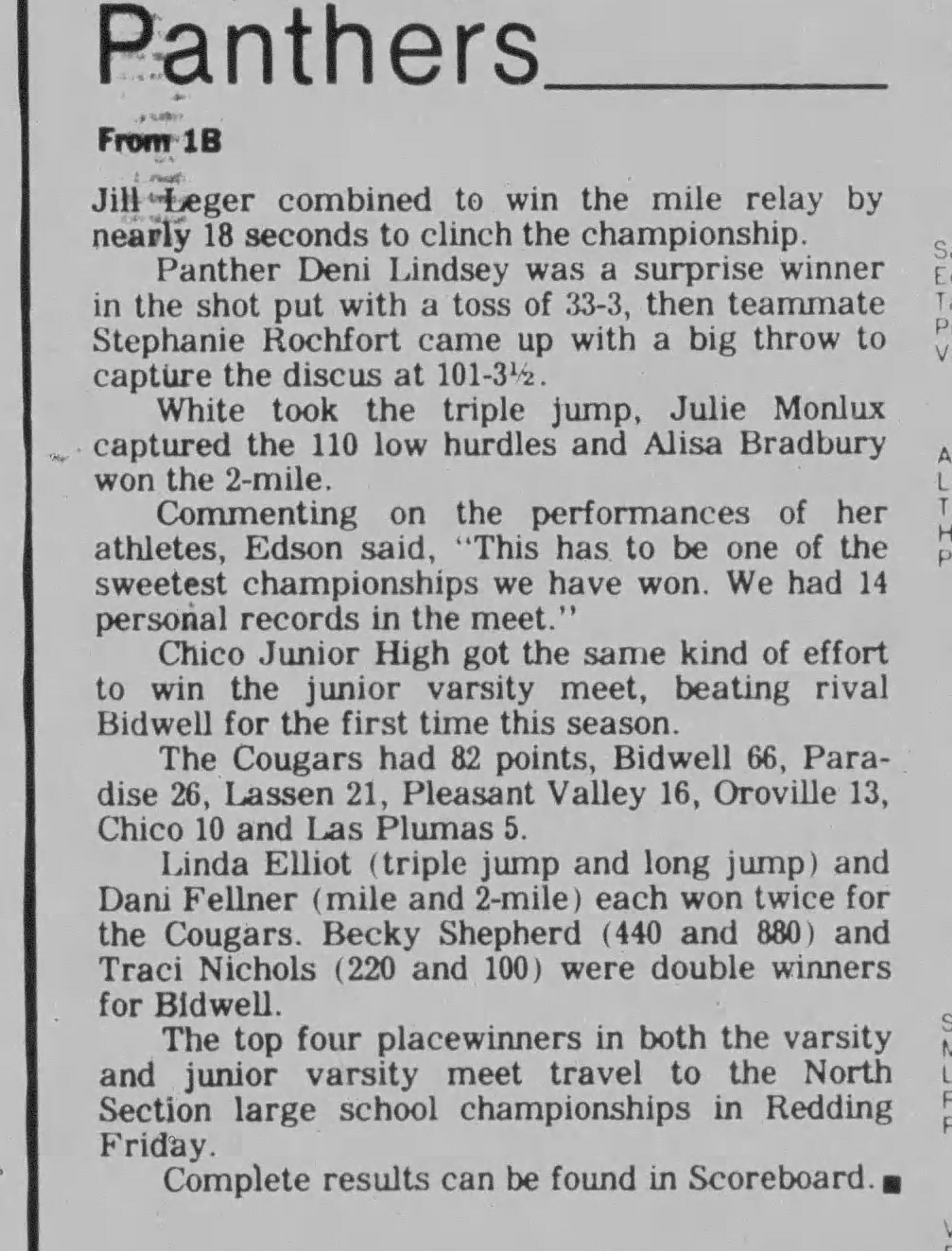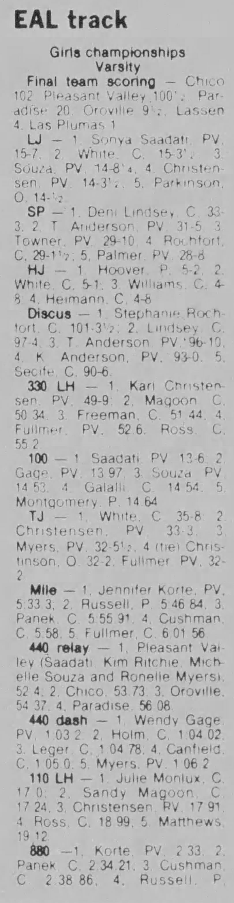 1983 EAL Girls Track & Field Championships Harrision Stadium & Butte College Track Oroville, California Thursday May 5, 1983