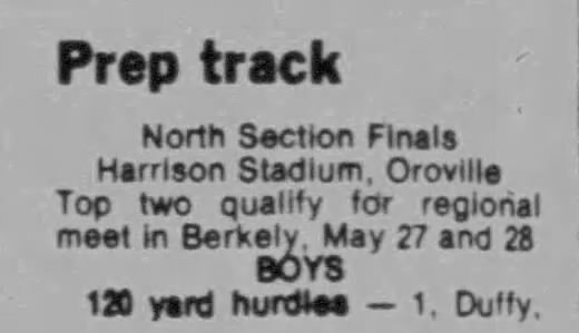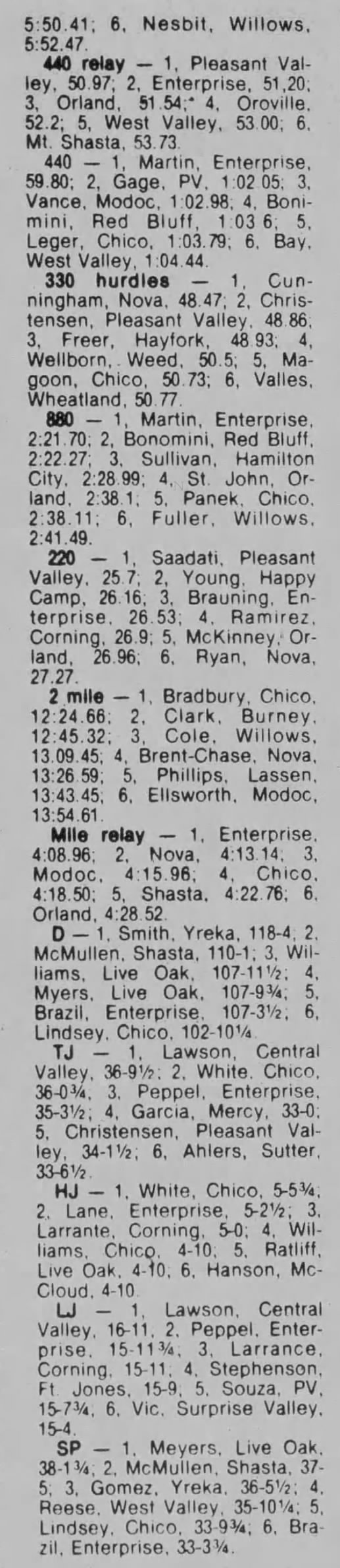 1983 NSCIF Track & Field Championships Harrision Stadium Oroville, California Friday May 20, 1983 Transcribed results