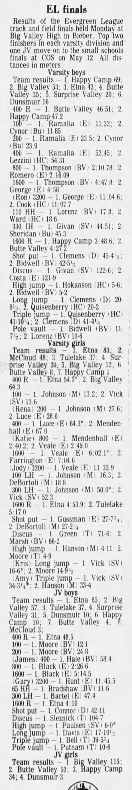 1984 Evergreen League Track & Field Championships Shasta College Redding, California Monday May 7, 1984
