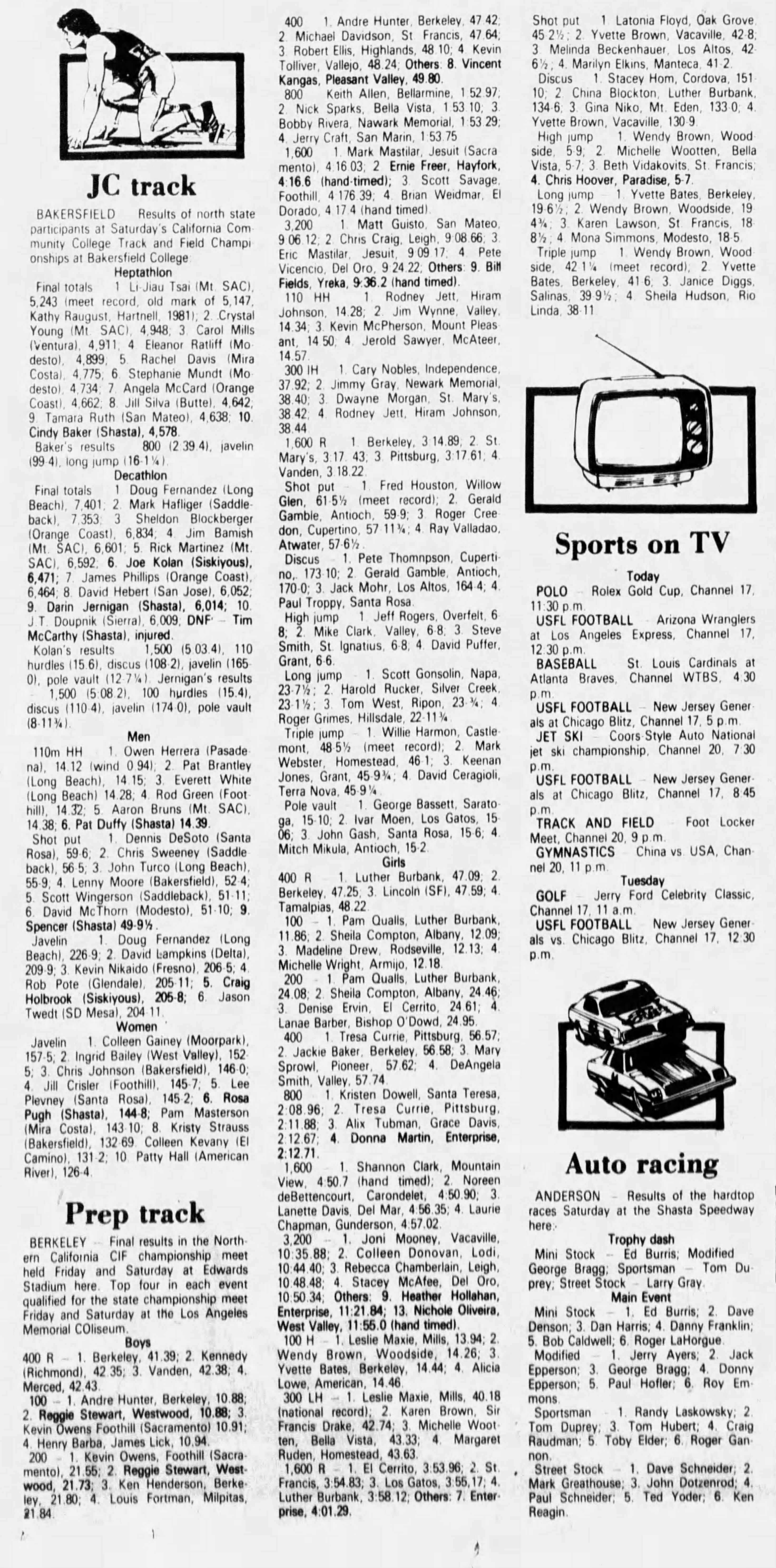 1984 Northern California CIF Track & Field Championships Edwards Stadium University of California Berkeley, California Fri-Sat May 25-26, 1984 Transcribed results