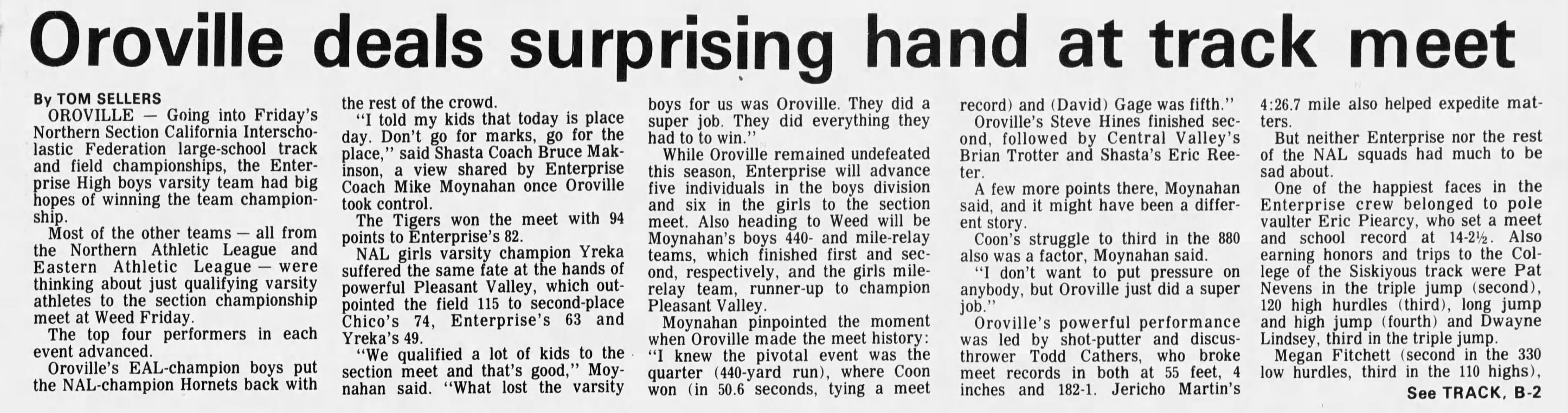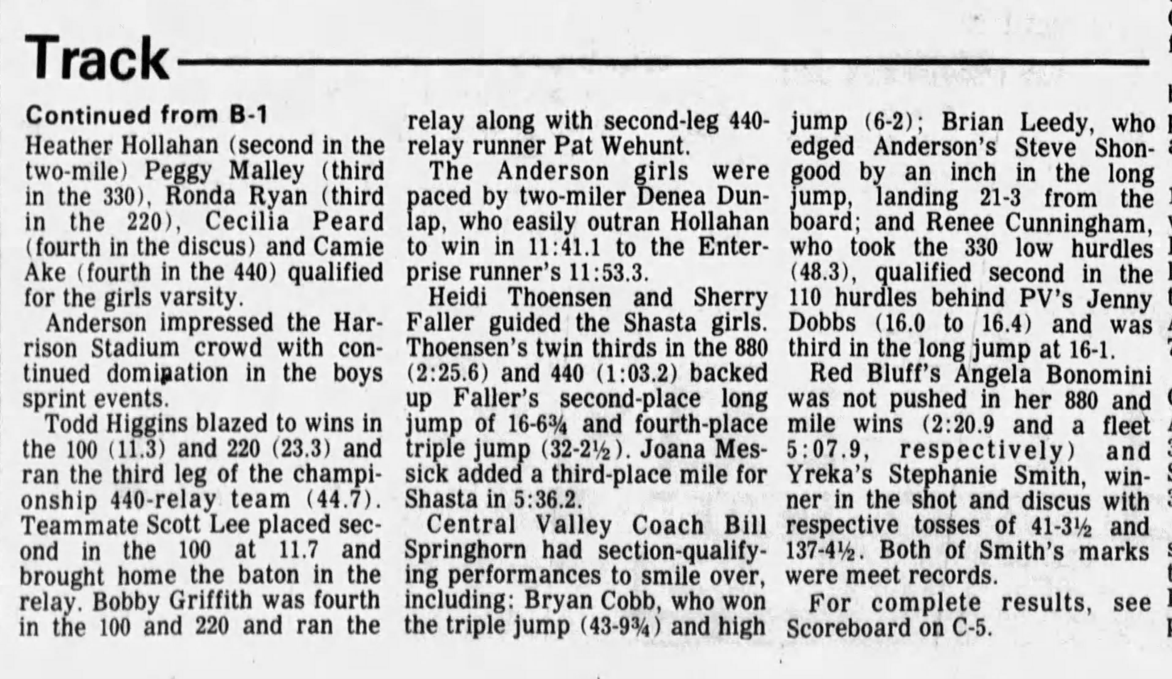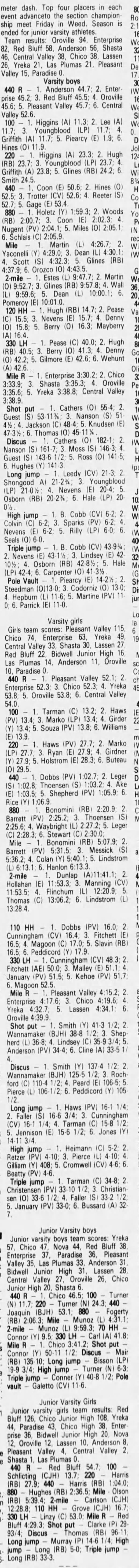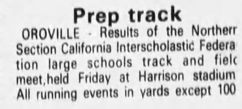 1985 Large Schools (AAA) Track & Field Championships Harrison Stadium Oroville, California Friday May 17, 1985 Transcribed results