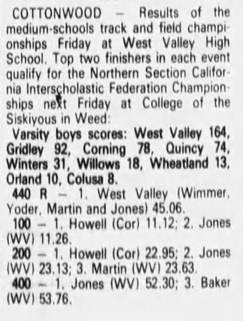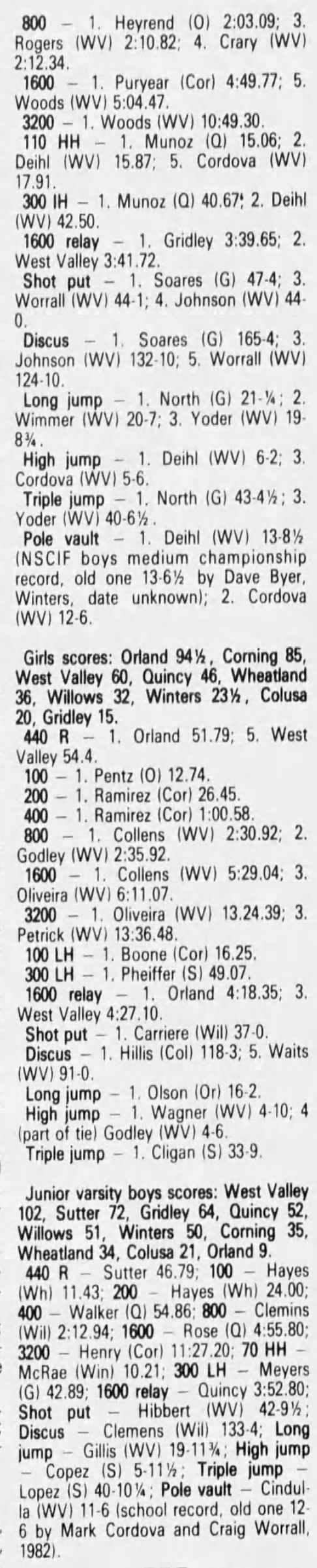 1985 Medium Schools (AA) Track & Field Championships West Valley High School Cottonwood, California Friday May 17, 1985