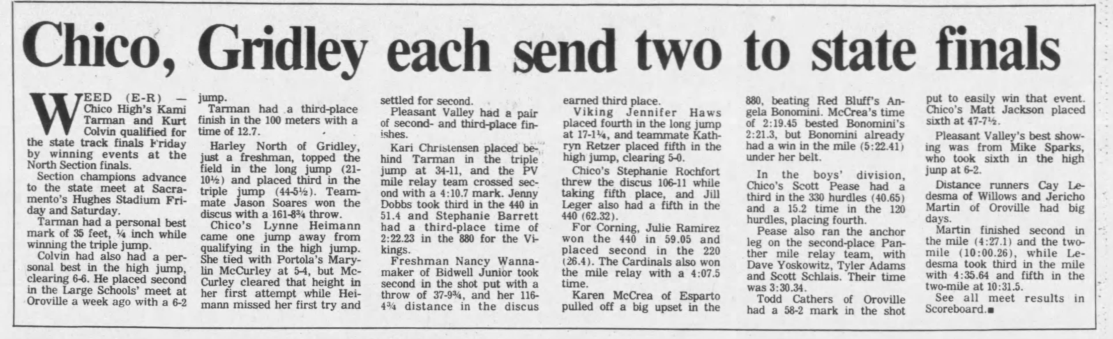 1985 NSCIF Track & Field Championships College of the Siskiyous Weed, California Friday May 24, 1985 Transcribed results