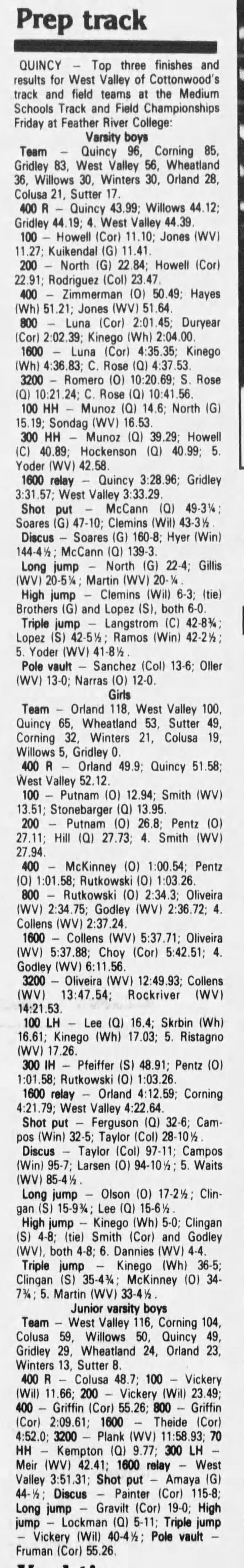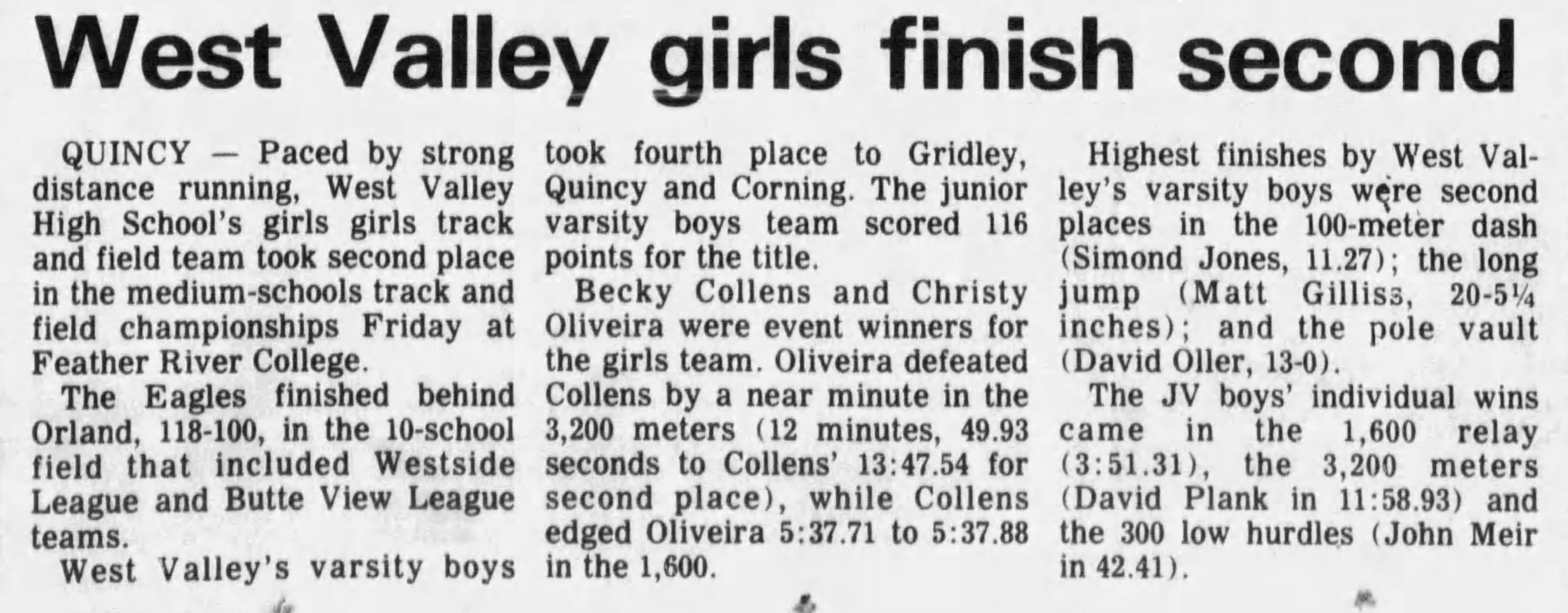 1986 Medium Schools (AAA) Track & Field Championships Feather River College Quincy, California Friday May 23, 1986