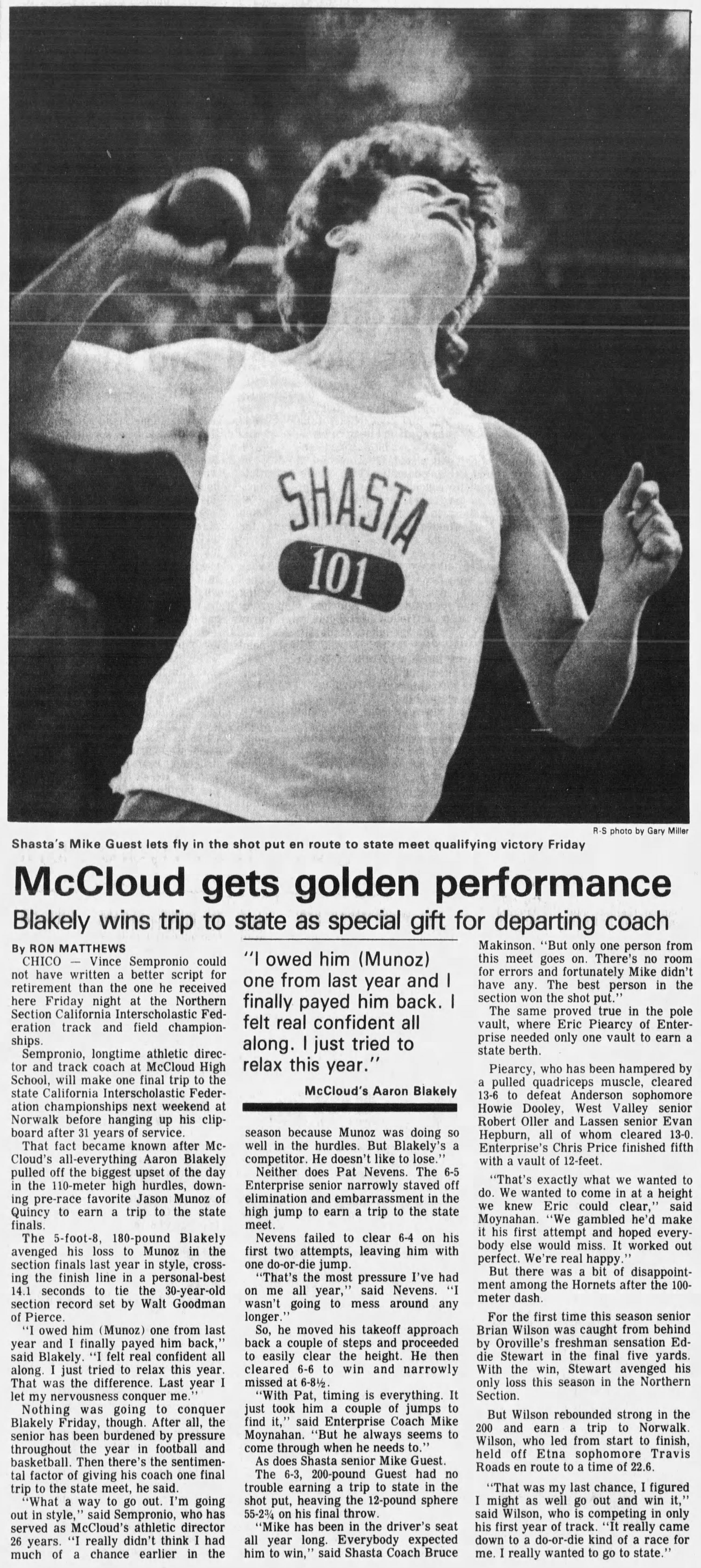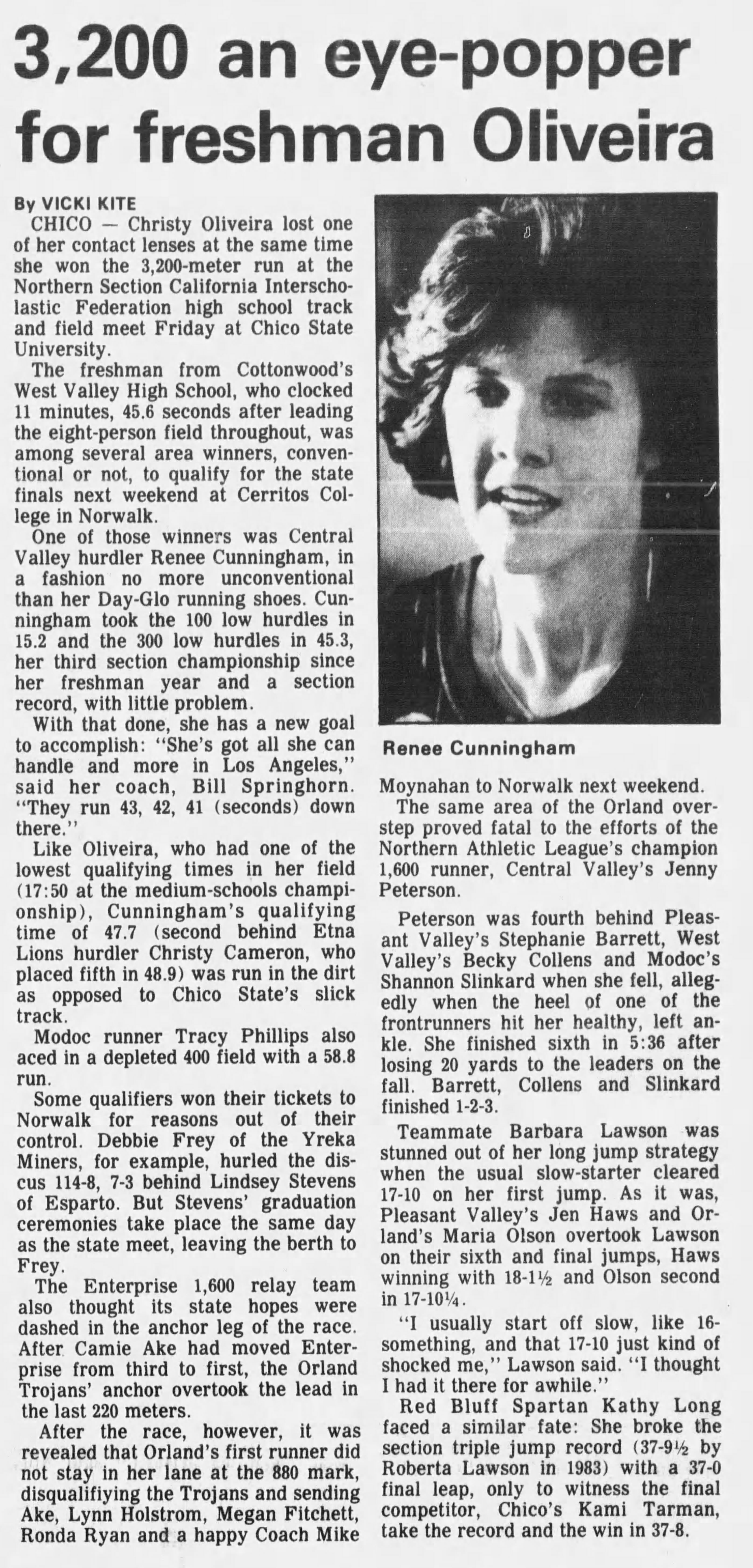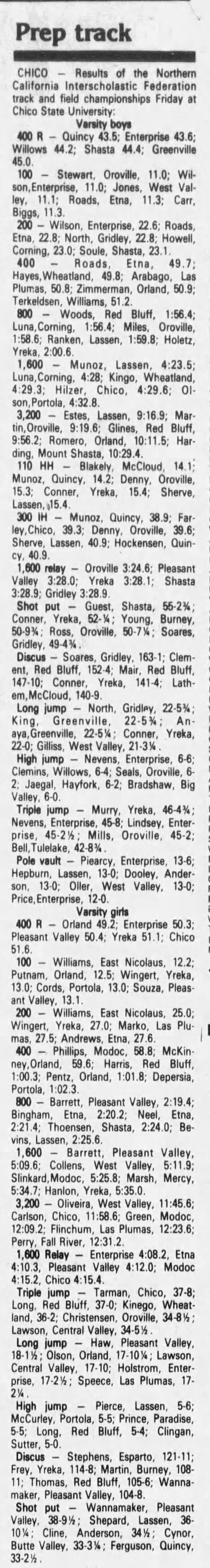 1986 NSCIF Track & Field Championships Harrison Stadium Oroville, California Friday May 30, 1986 complete results