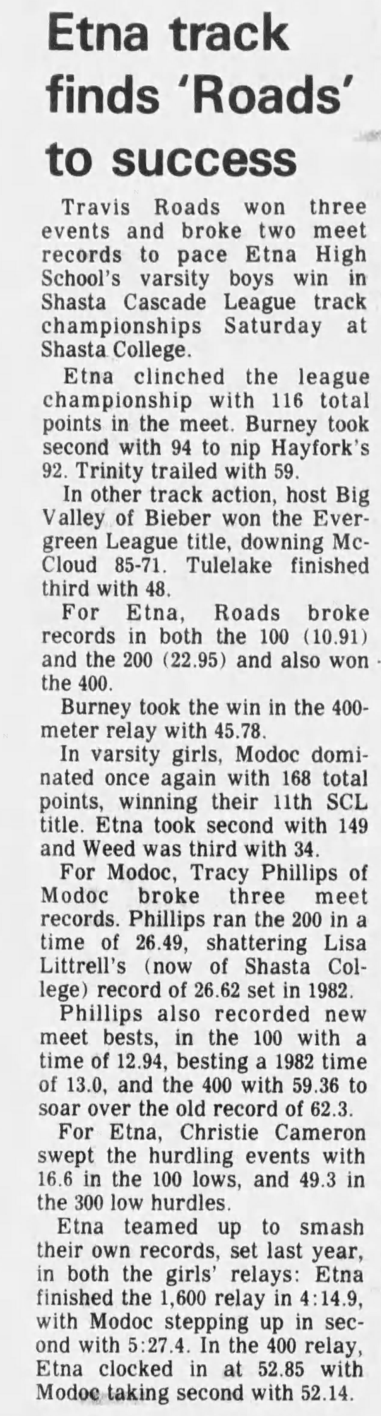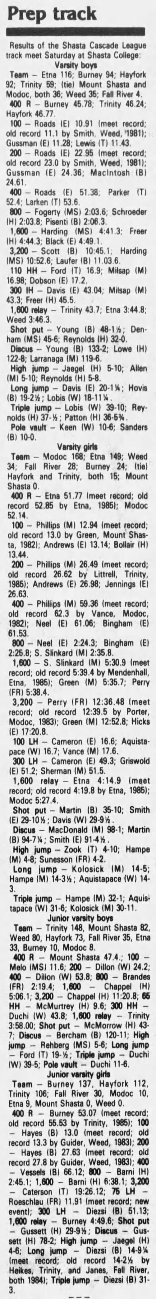 1986 Shasta Cascade League (SCL) Track & Field Championships Shasta College Redding California Saturday May 17, 1986