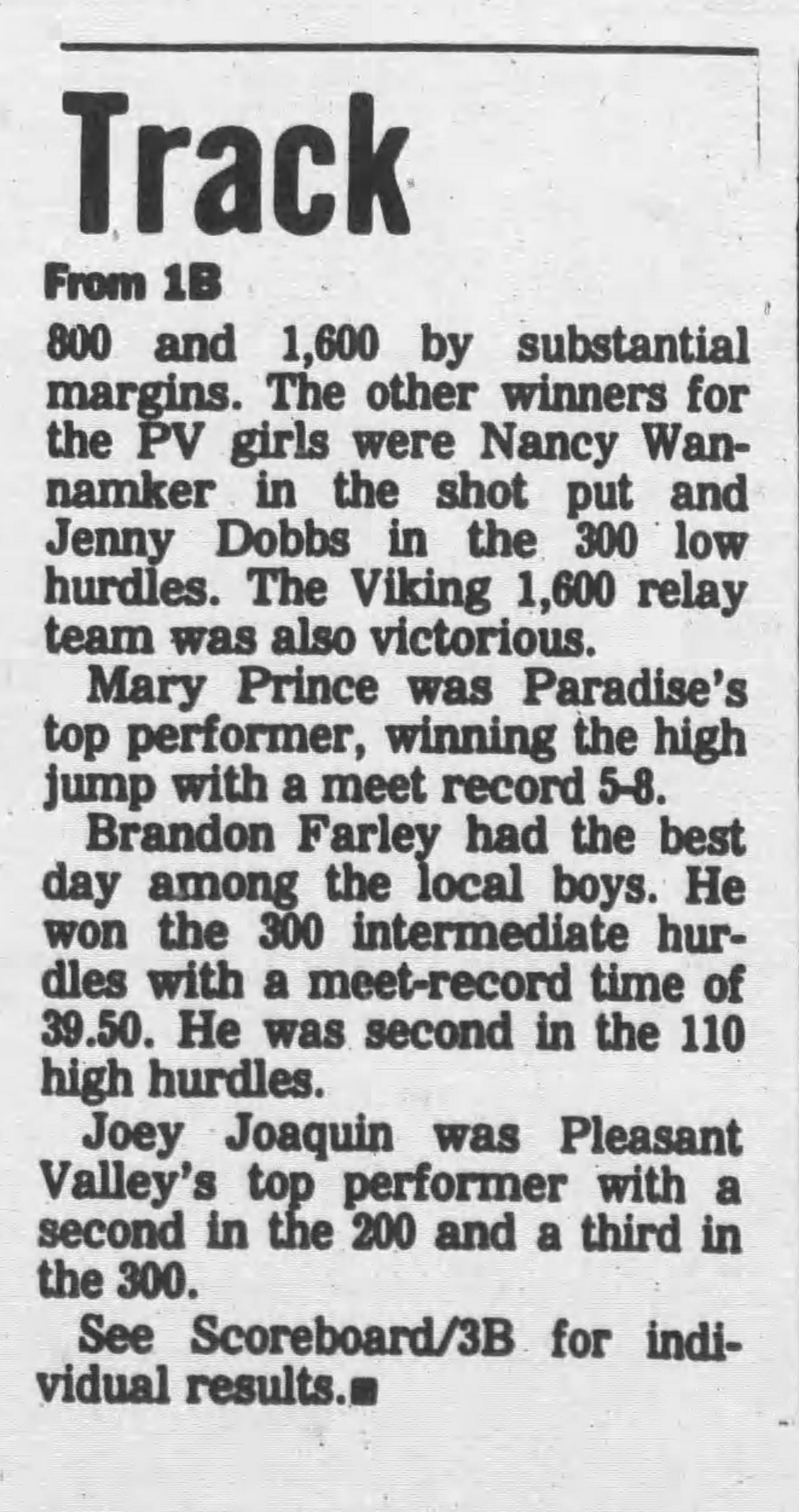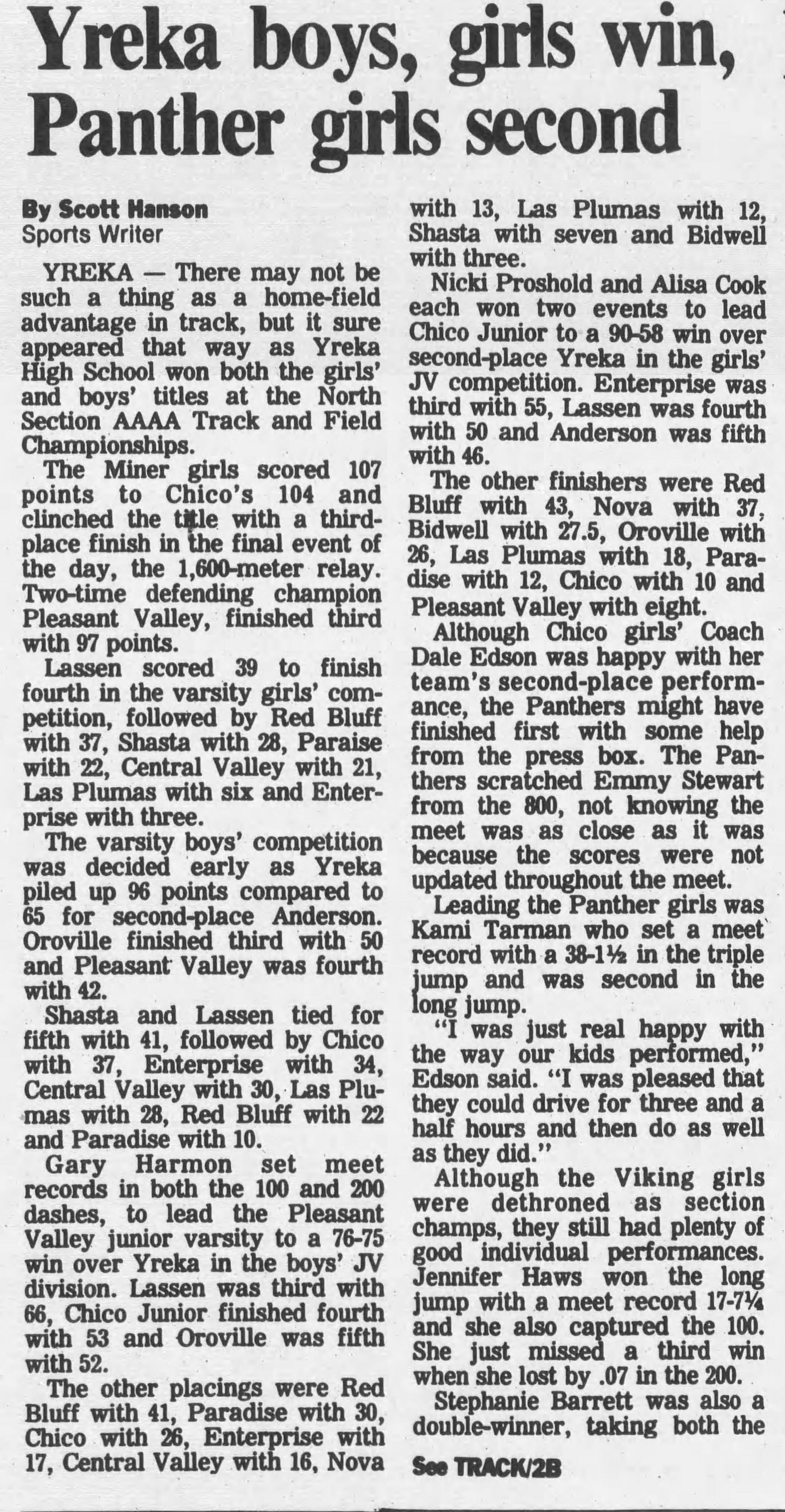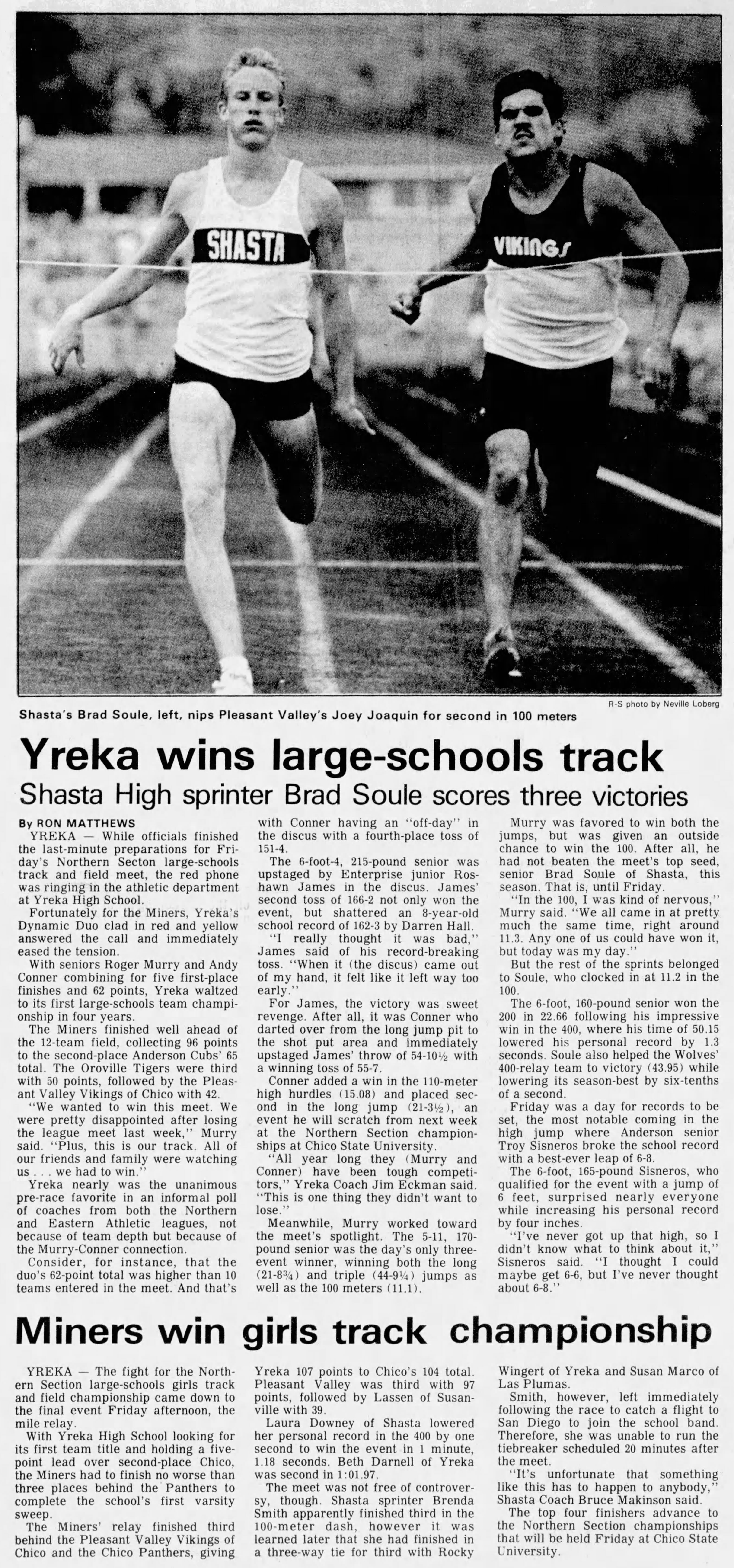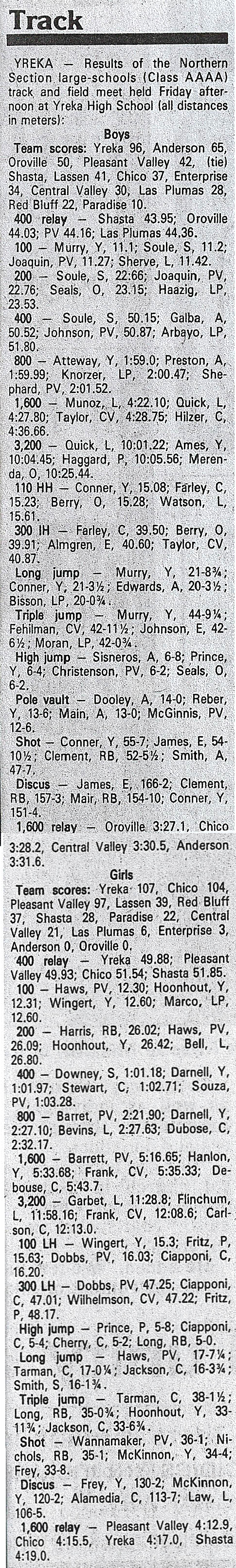1987 Large Schools (AAAA) Track & Field Championships Yreka High School Yreka, California Friday May 22, 1987