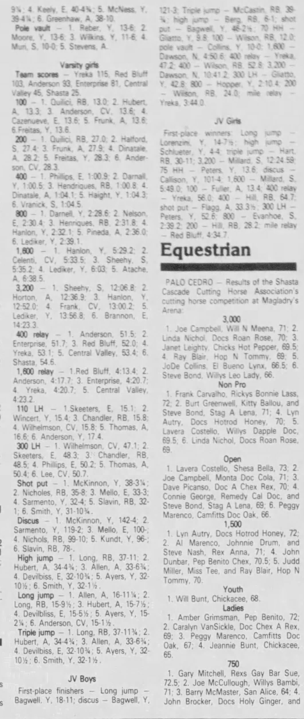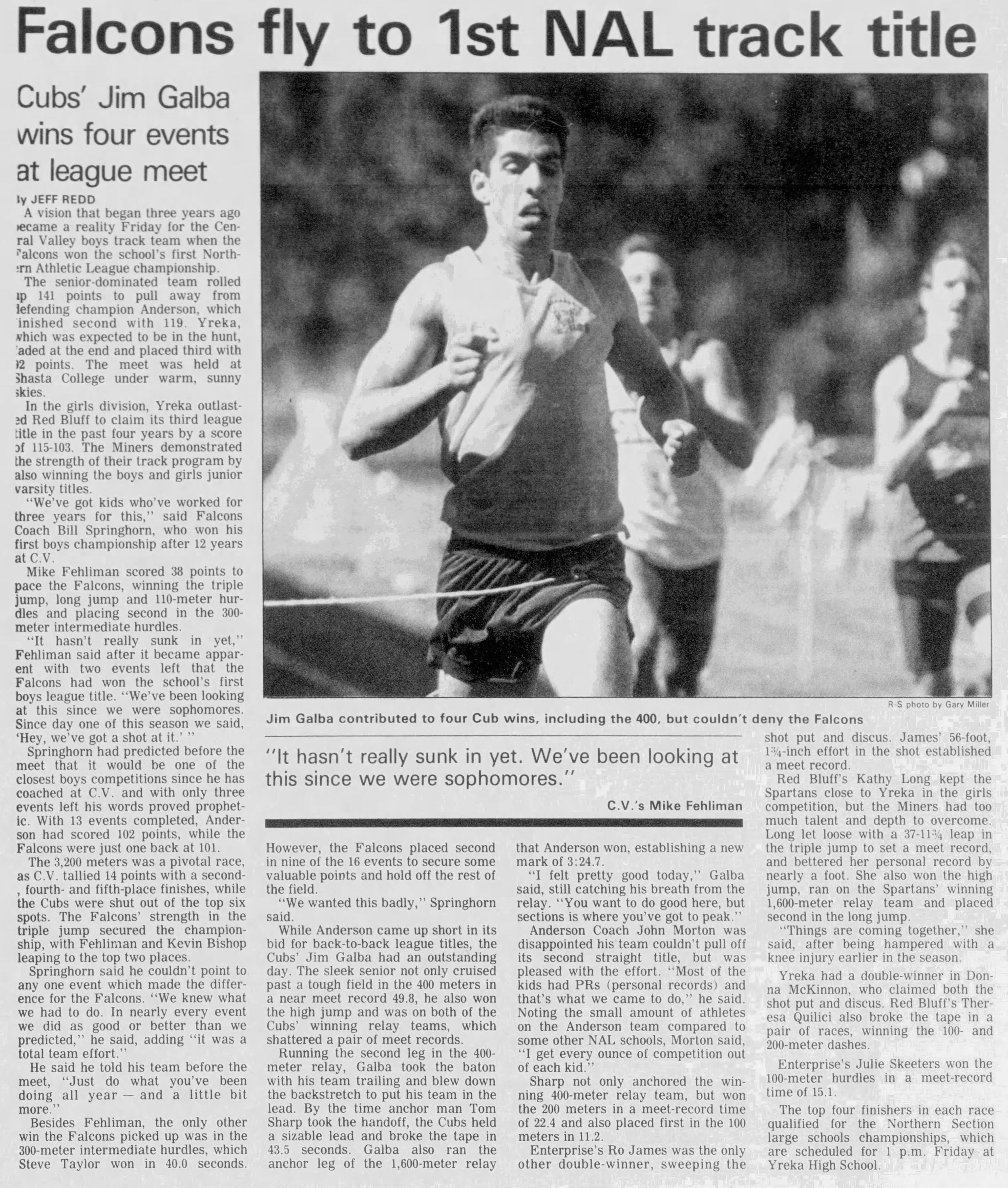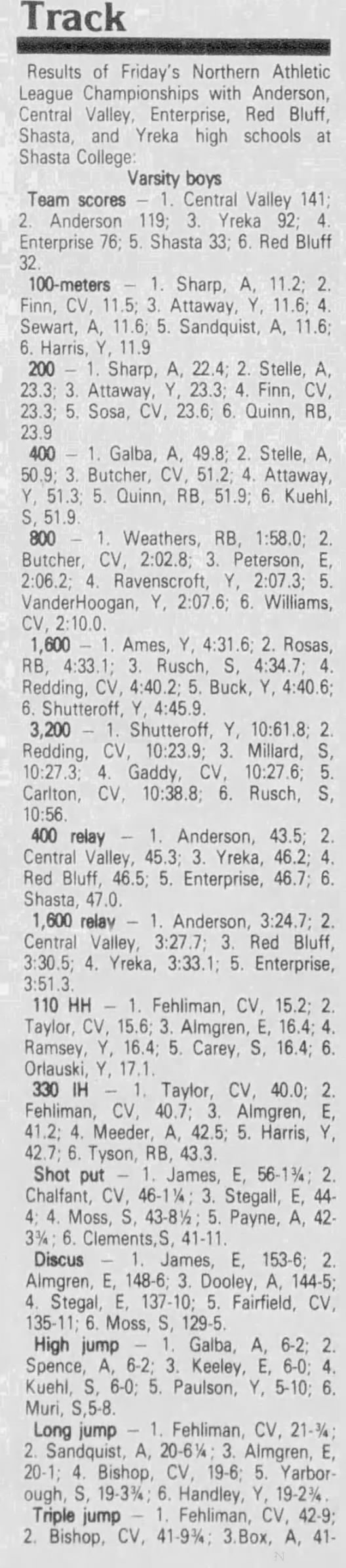 1988 Northern Athletic League (NAL) Track & Field Championships Shasta College Redding, California Friday May 13, 1988