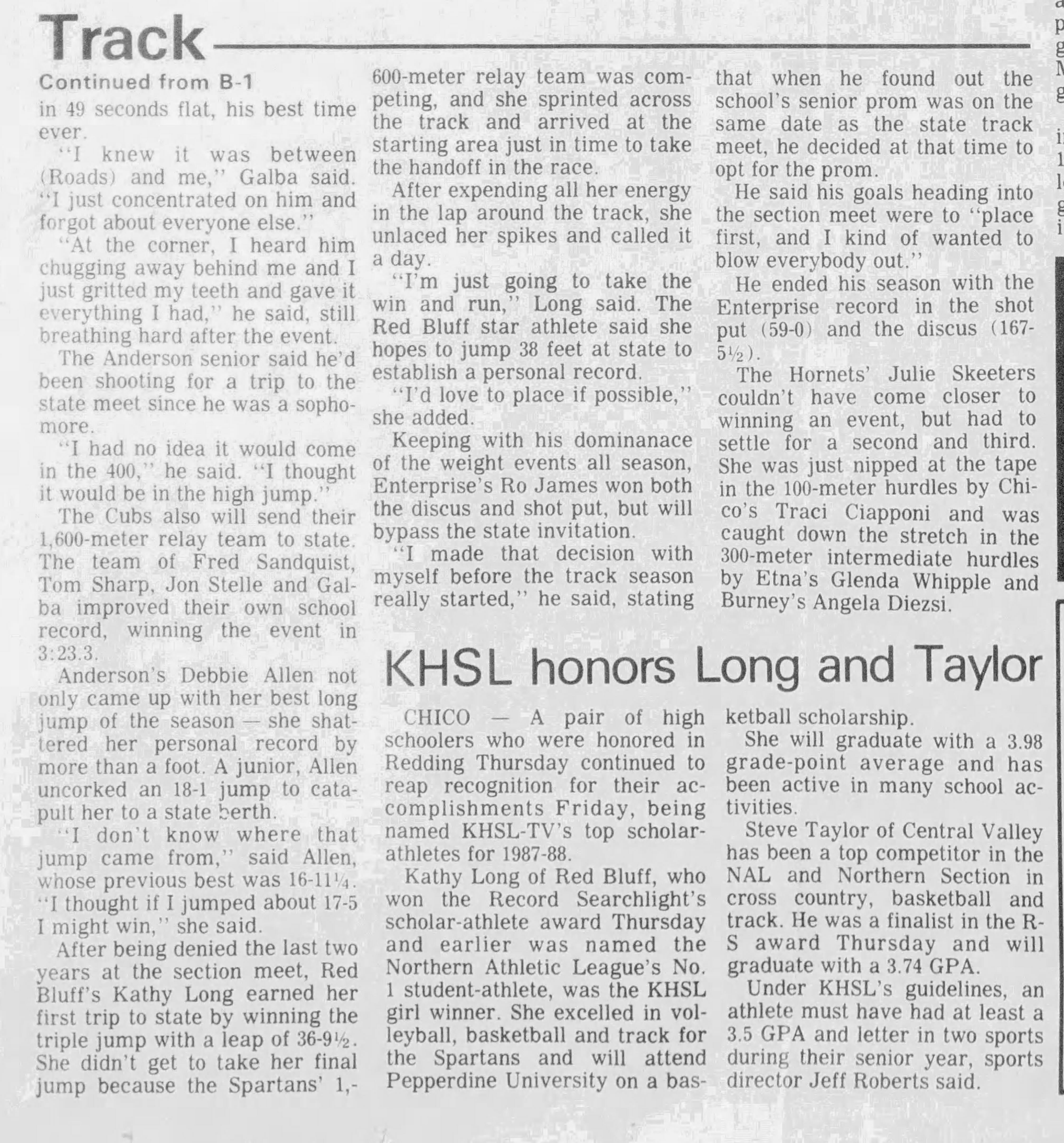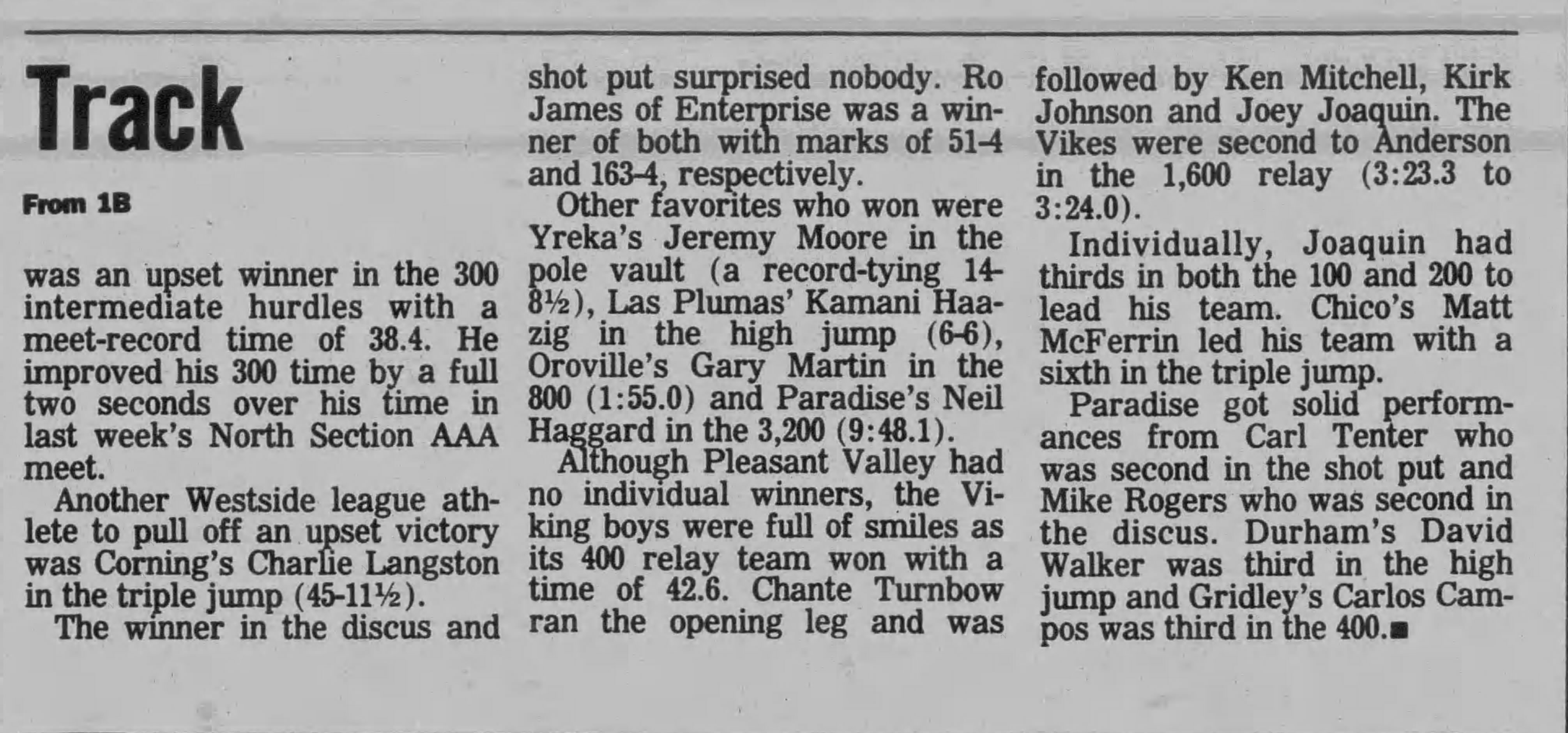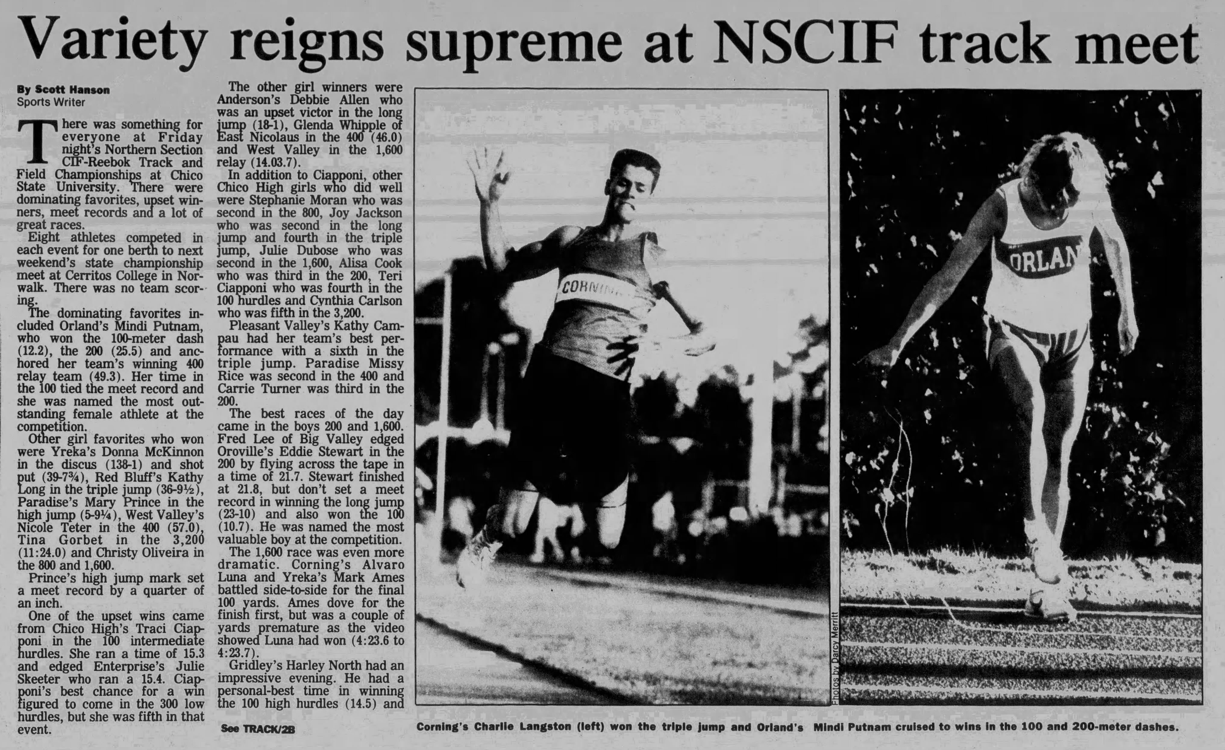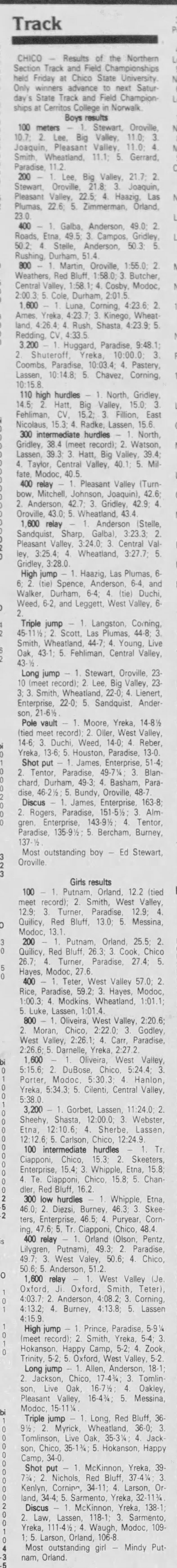 1988 NSCIF Boys Track & Field Championships University Stadium Chico State University Chico, California Friday May 27, 1988 complete results