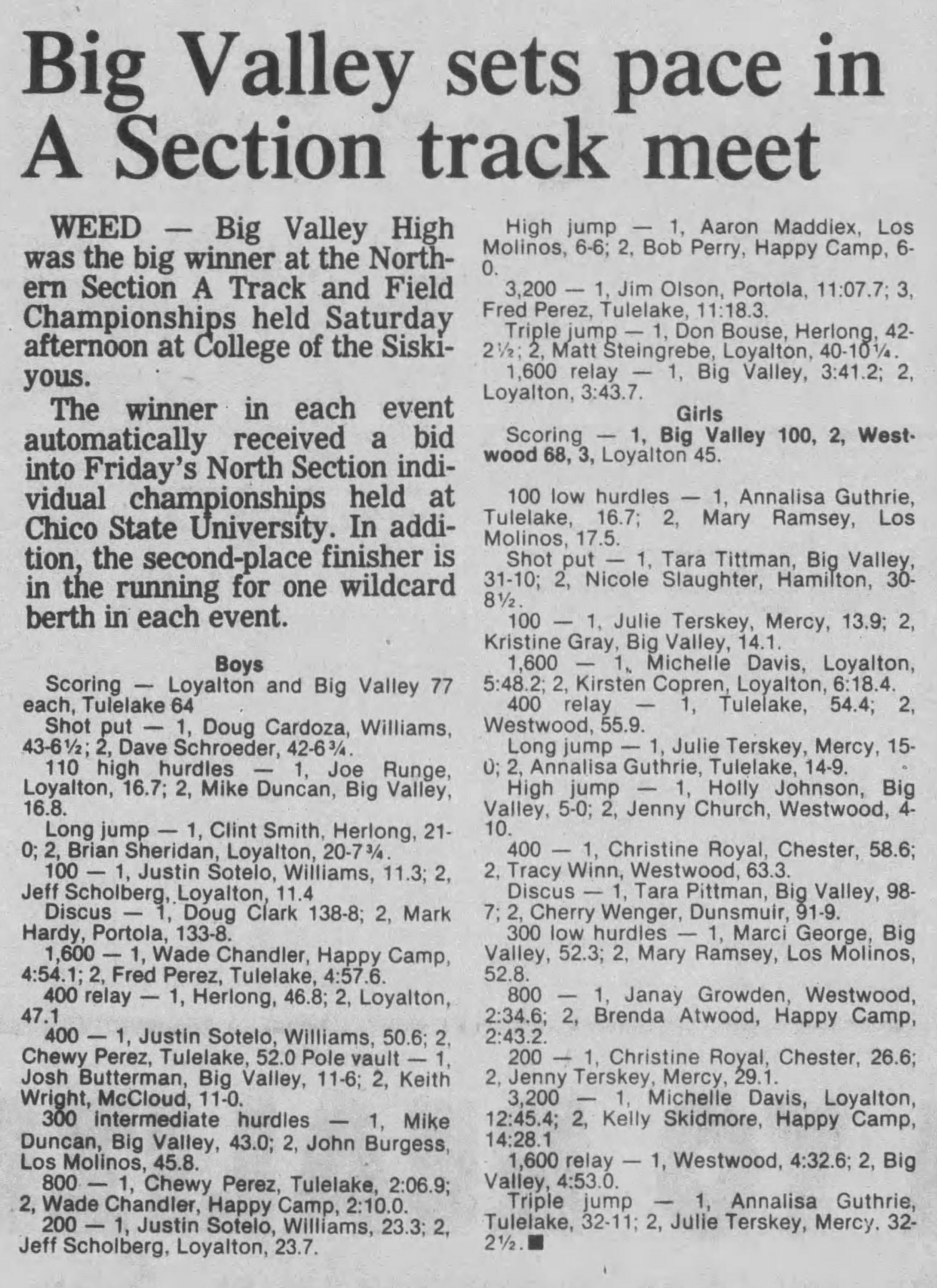 College of the Siskiyous Weed, California Saturday May 20, 1989
