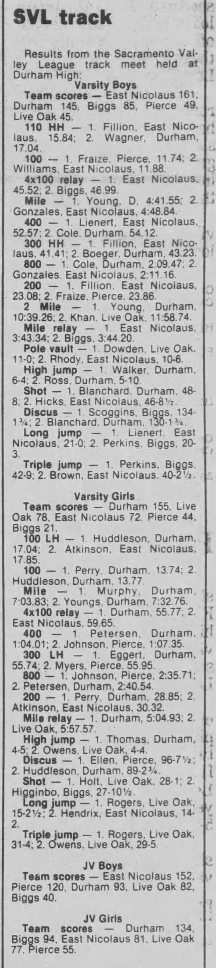 1989 Sacramento Valley League (SVL) Track & Field Championships Durham HS Durham, California Friday May 12, 1989