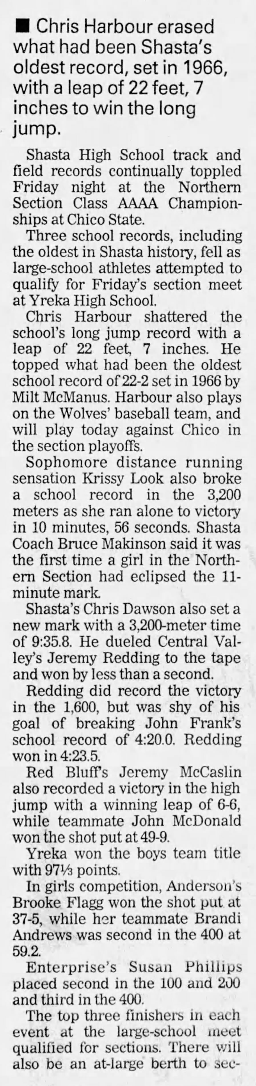 1990 AAAA Track & Field Championships University Stadium Chico State University Chico, California Friday May 18, 1990