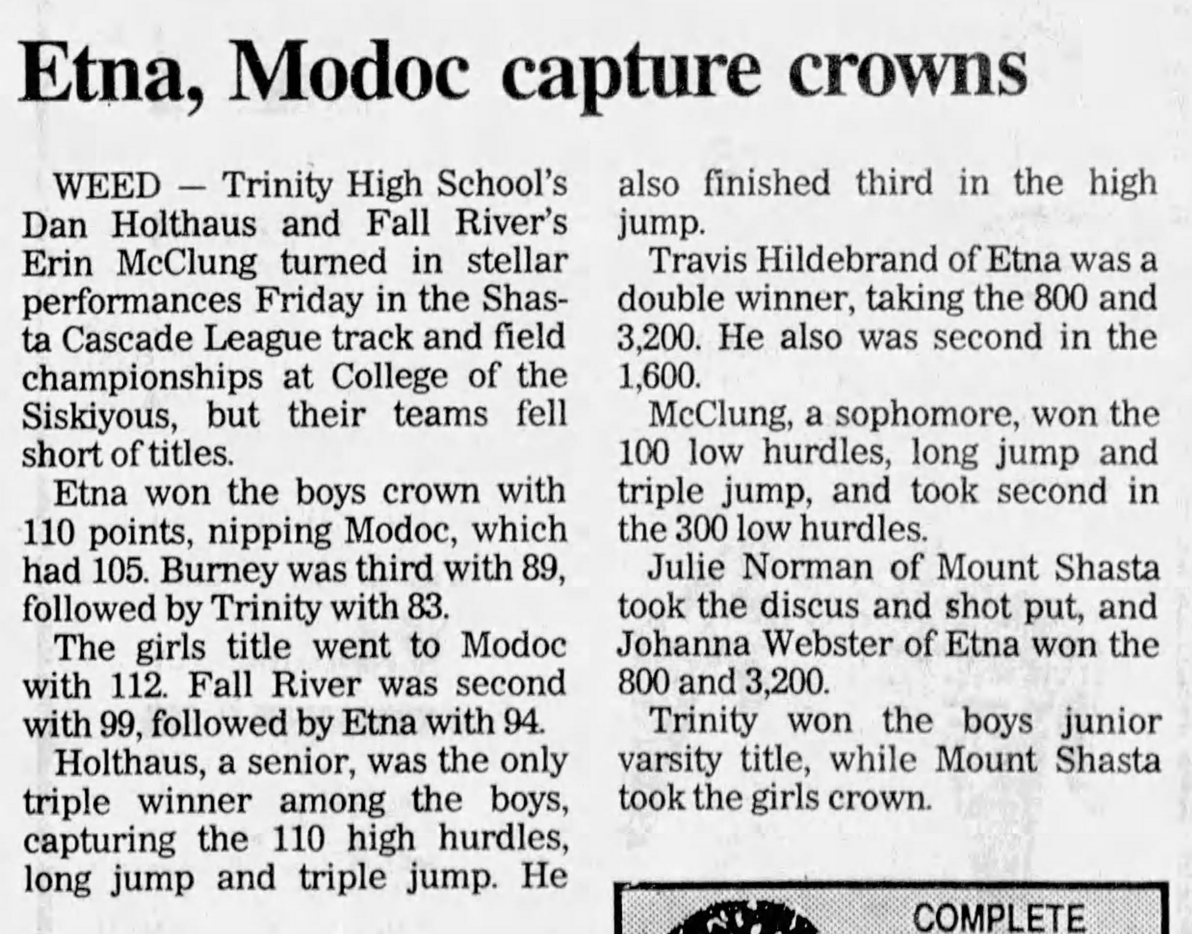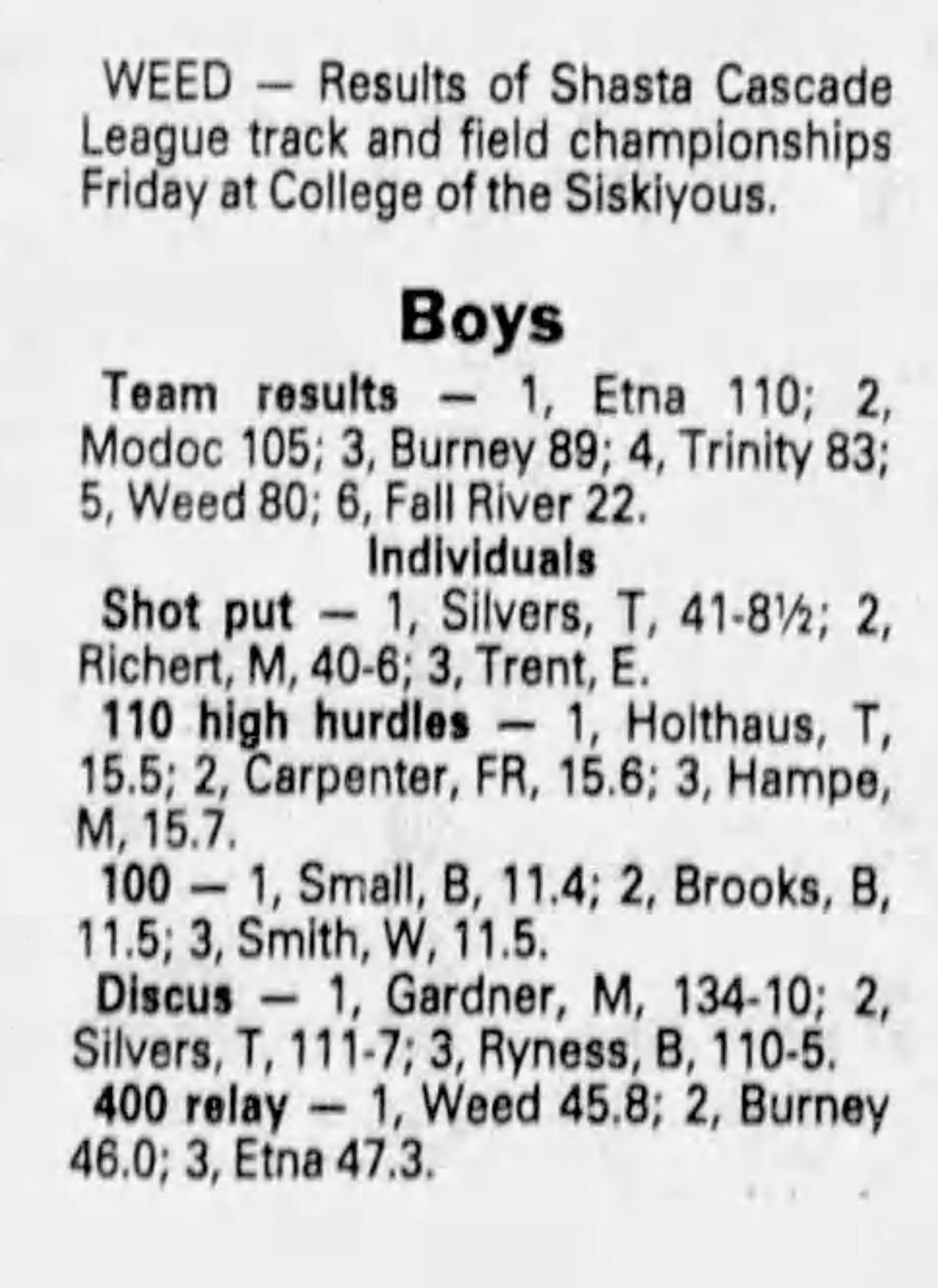 1990 Shasta-Cascade League (SCL) Track & Field Championships College of the Siskiyous Weed, California Friday May 11, 1990