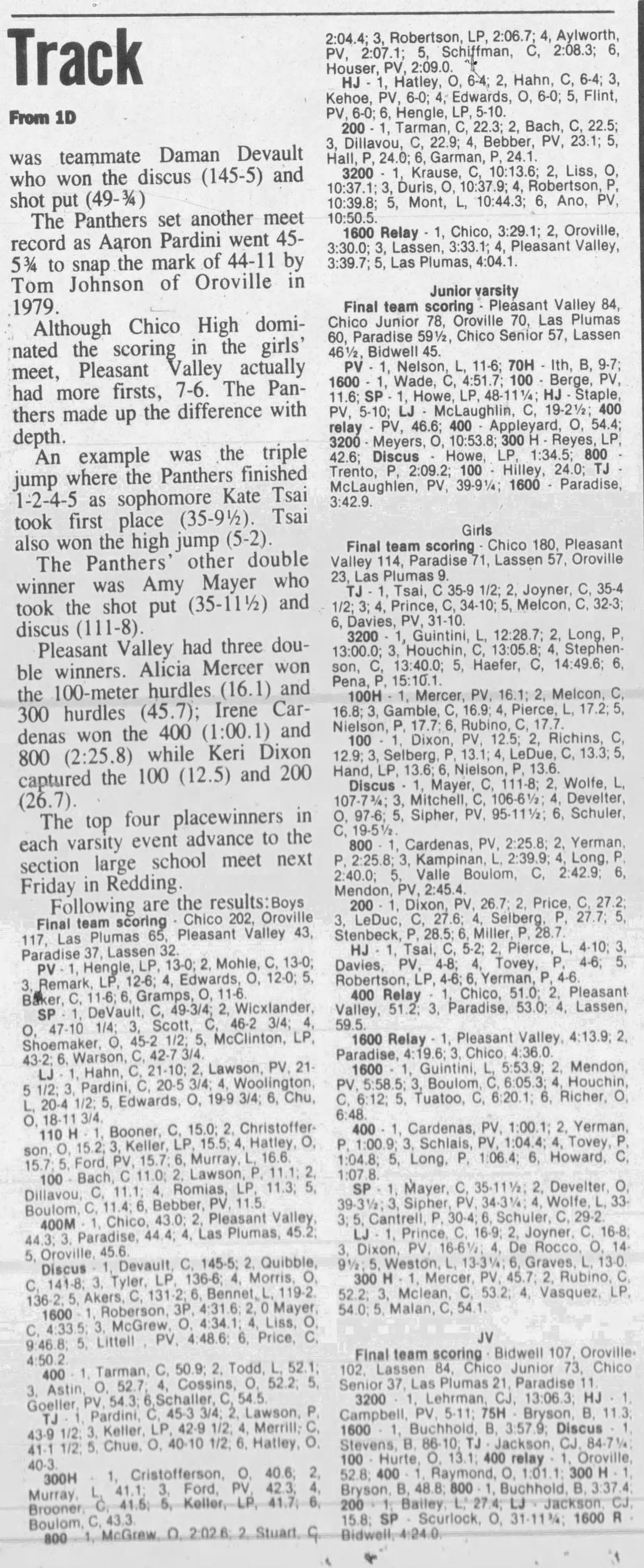 1991 Eastern Athletic League Track & Field Championships University Track Chico State University Chico, California Friday May 10, 1991