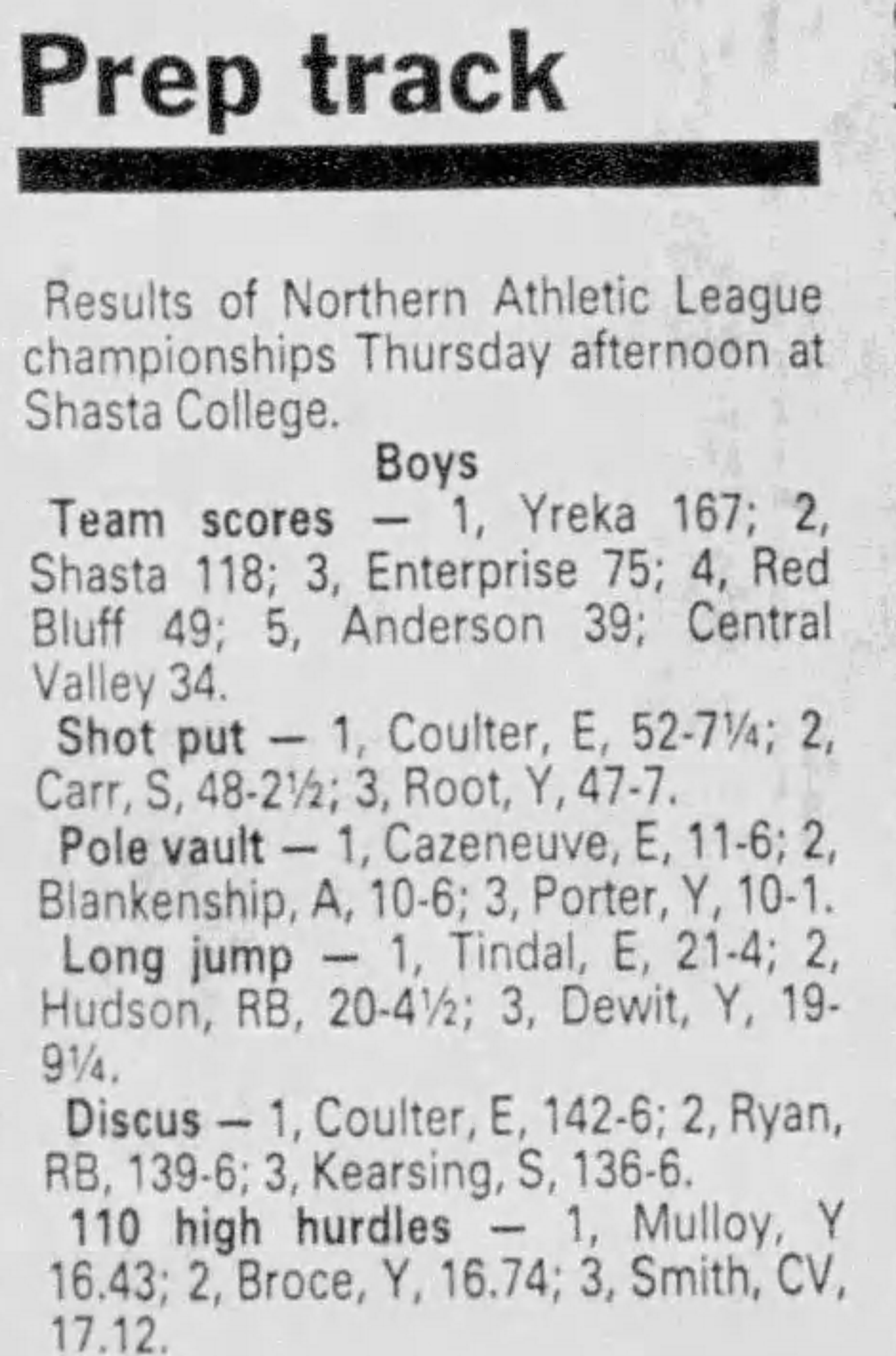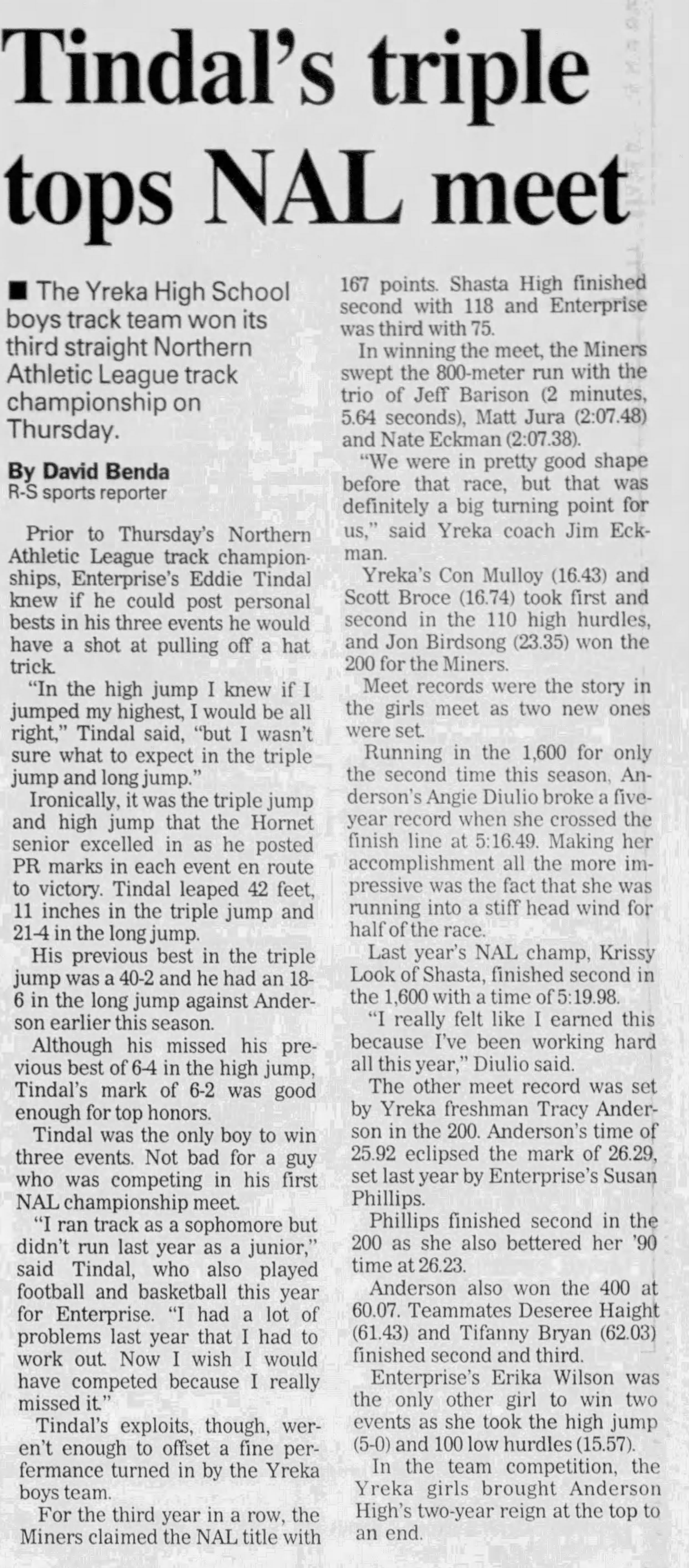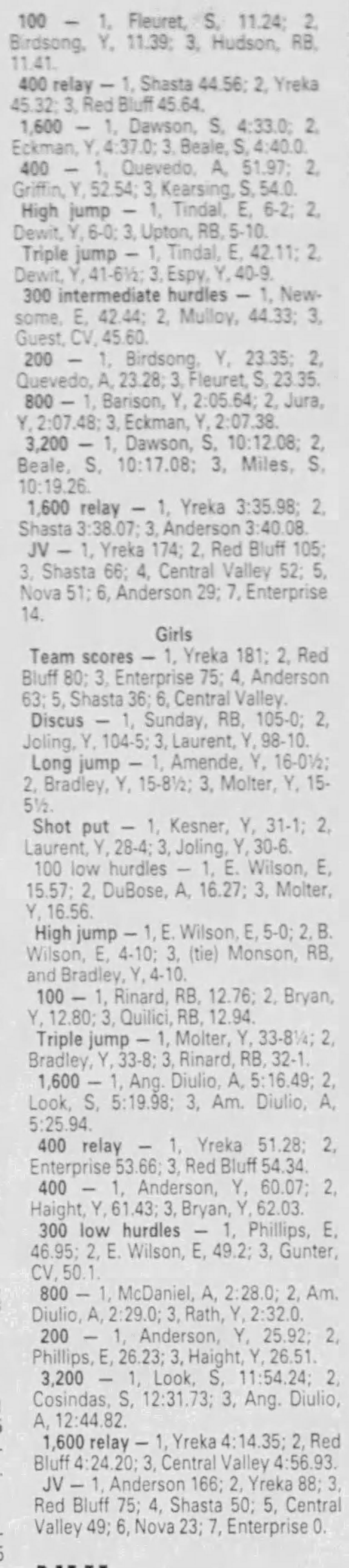 1991 Northern Athletic League (NAL) Track & Field Championships Shasta College Redding, California Thursday May 9, 1991