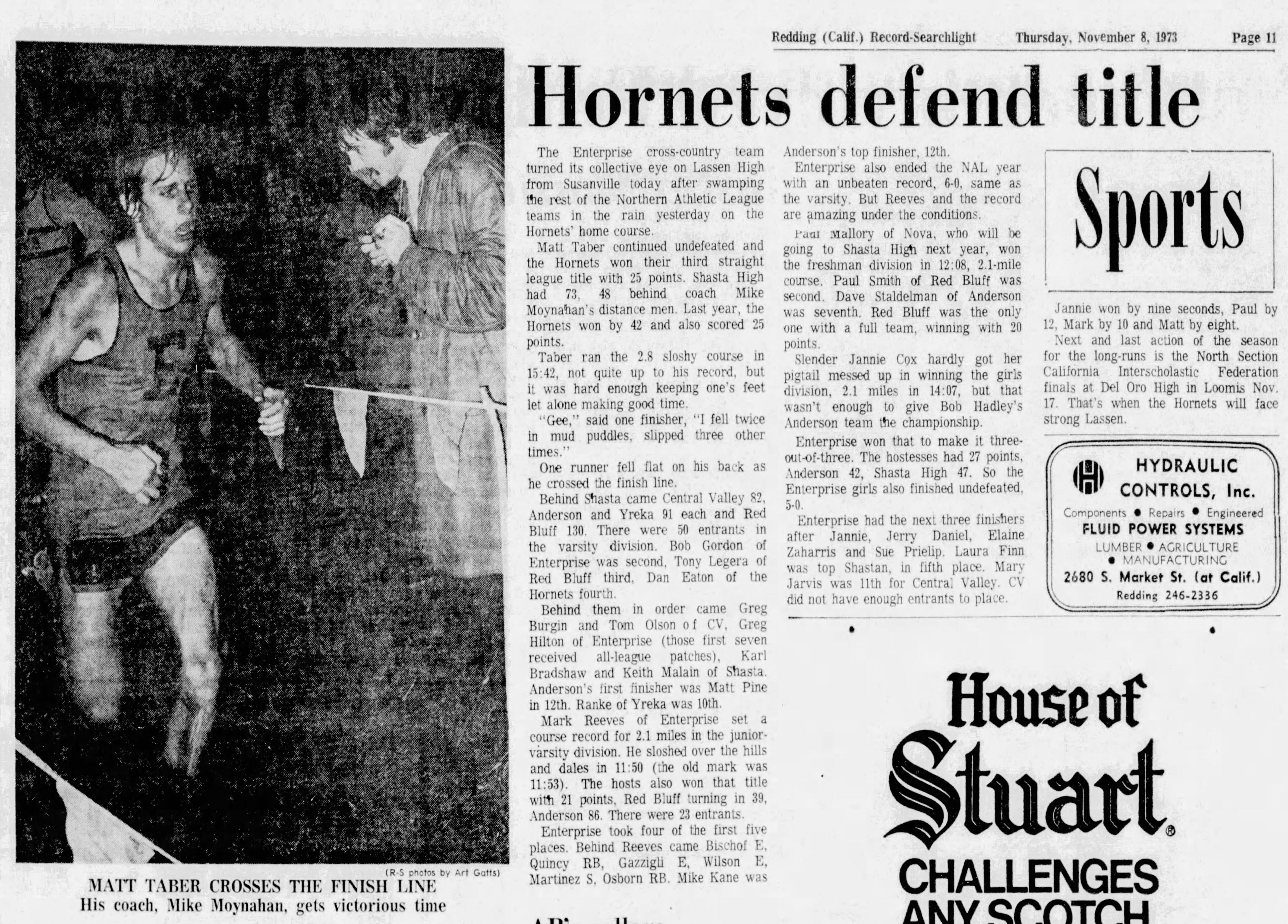 1973 NAL Cross Country Championships Enterprise HS hosts first official league championship Redding, California Wednesday November 7, 1973