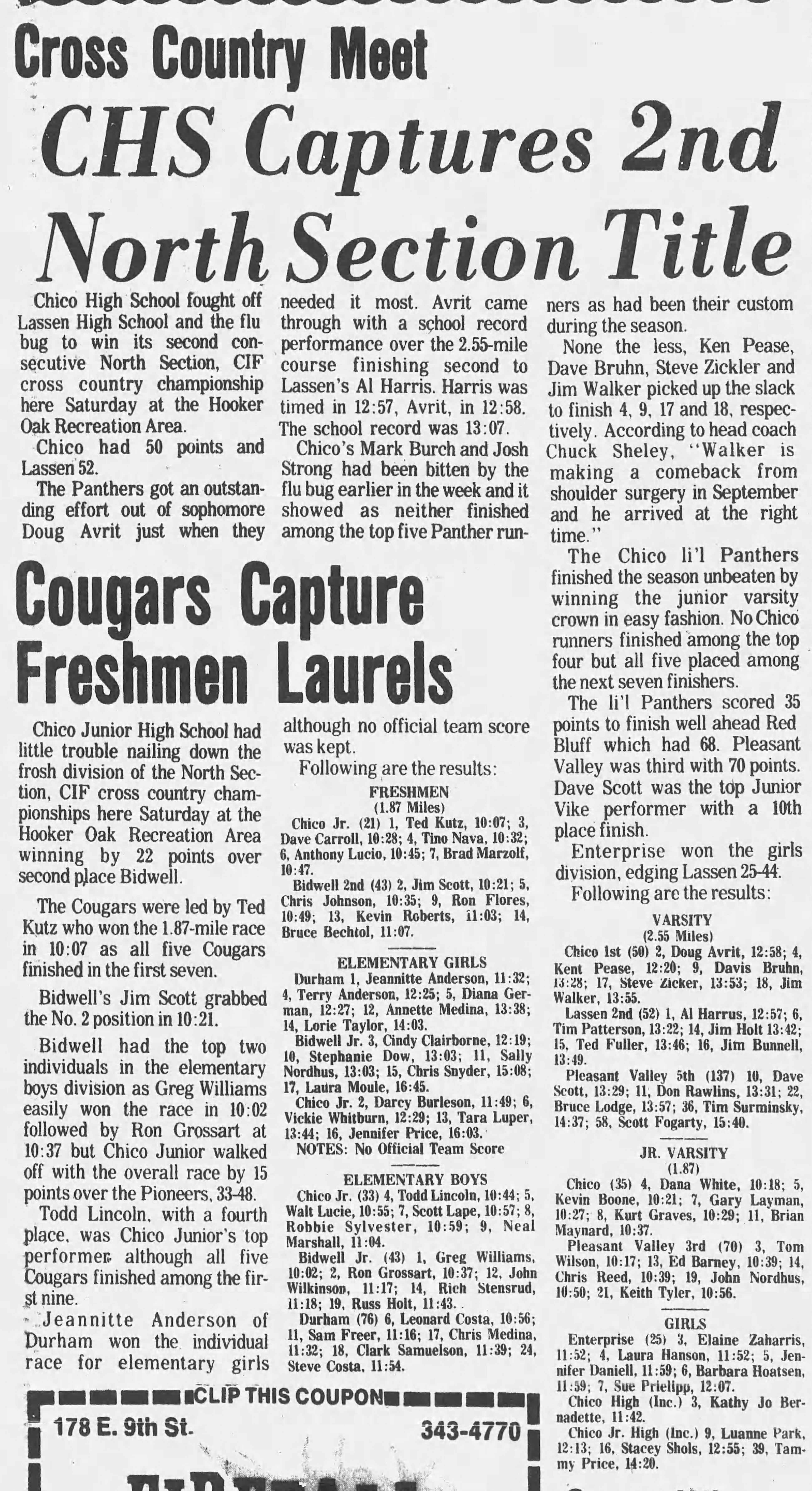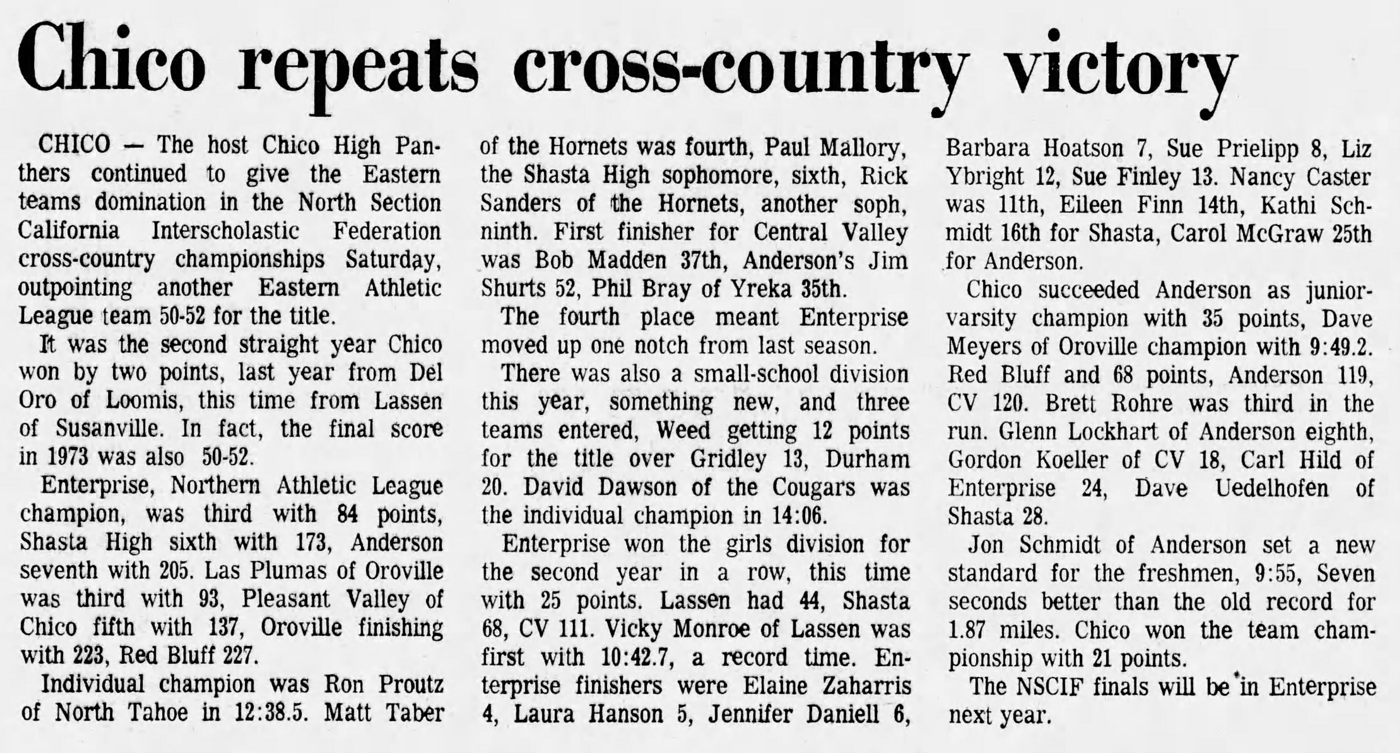 1974 NSCIF Cross Country Championships Hooker Oak Recreation Area Chico, California Saturday November 9, 1974