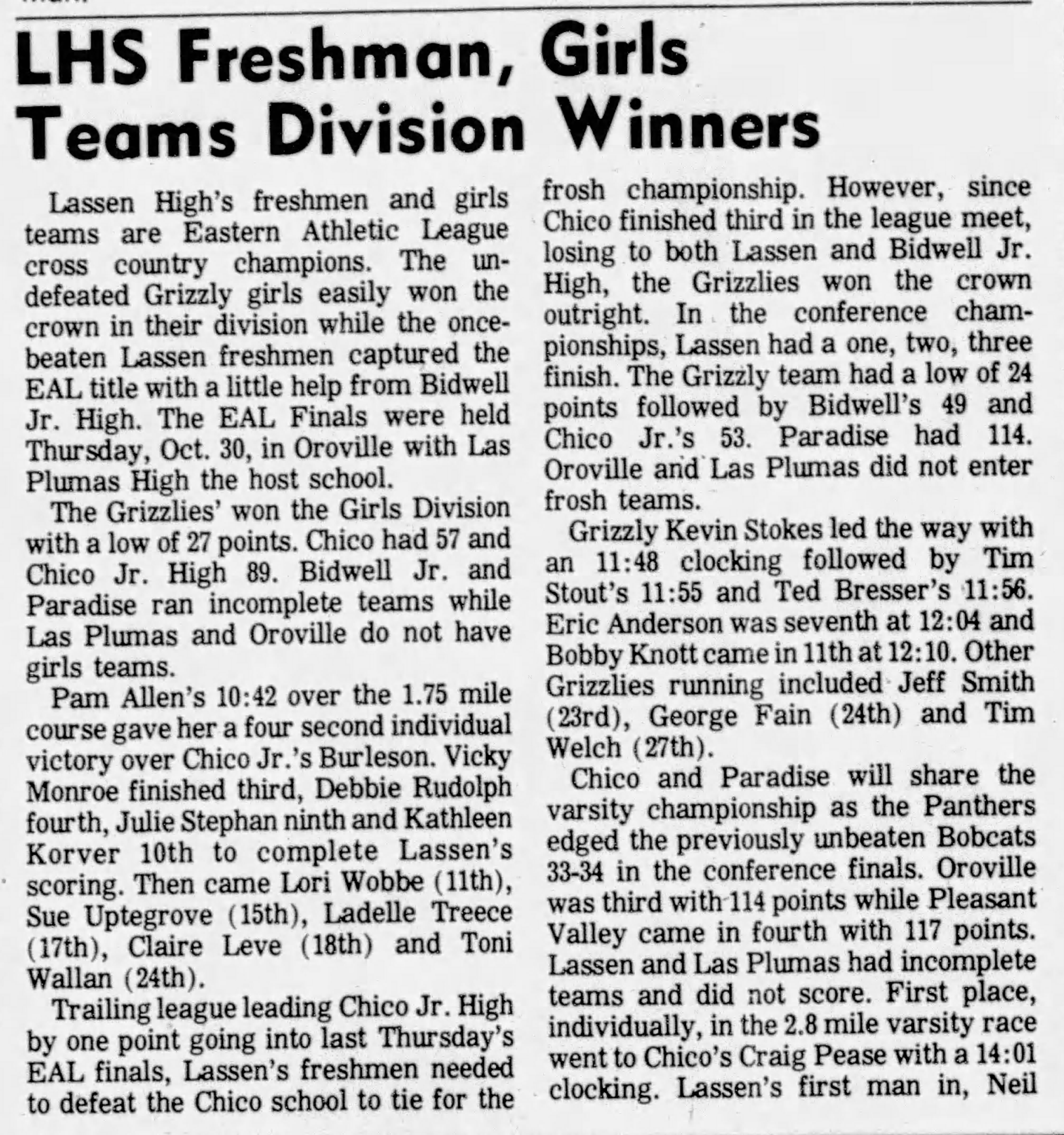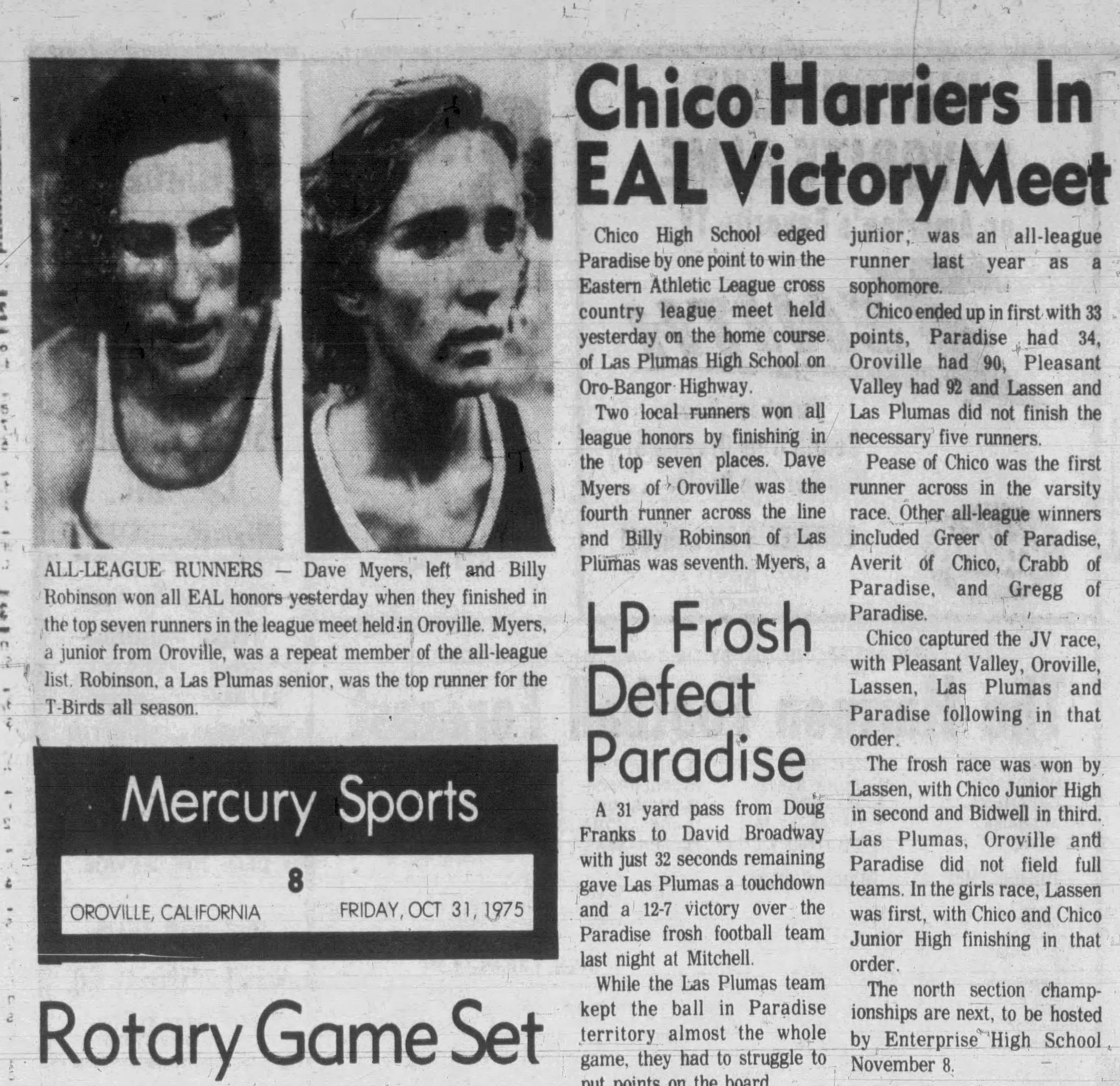 1975 EAL Cross Country Championships Las Plumas home course Oroville, California Thursday October 30, 1975