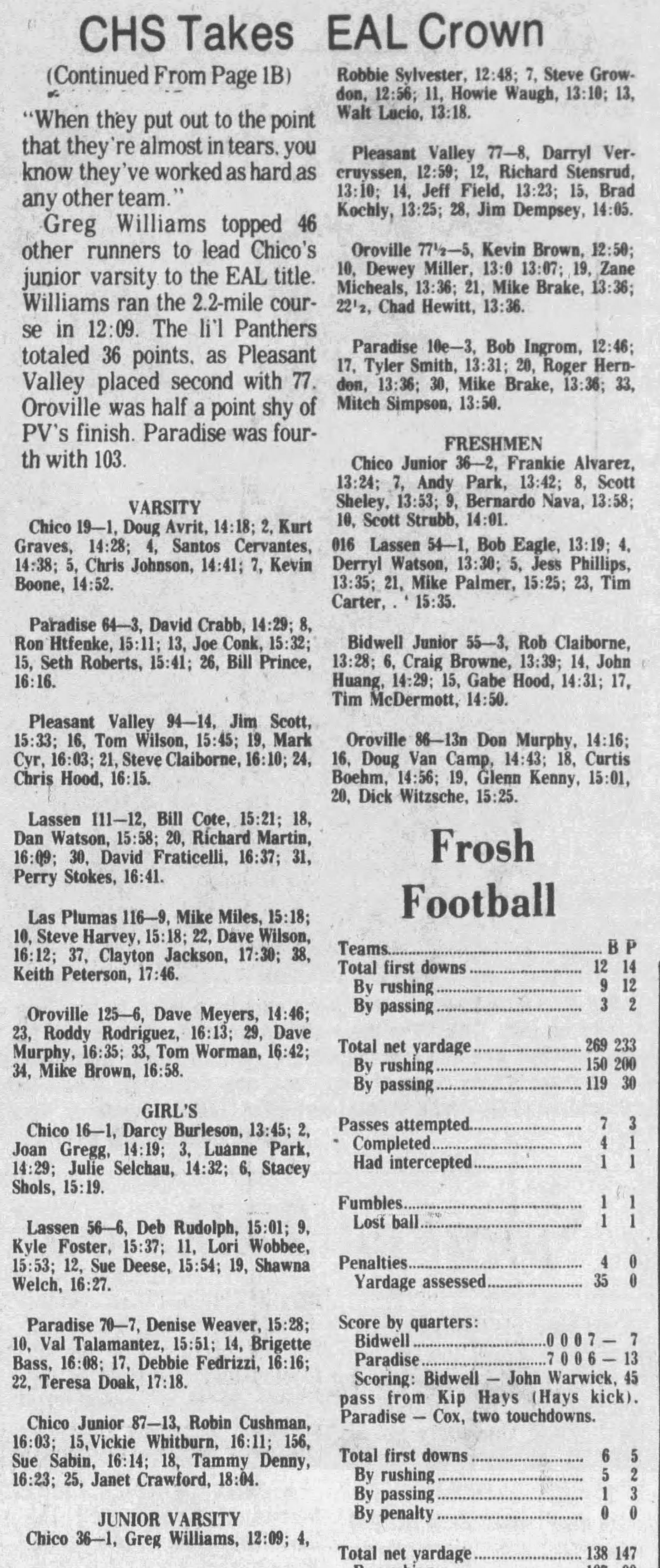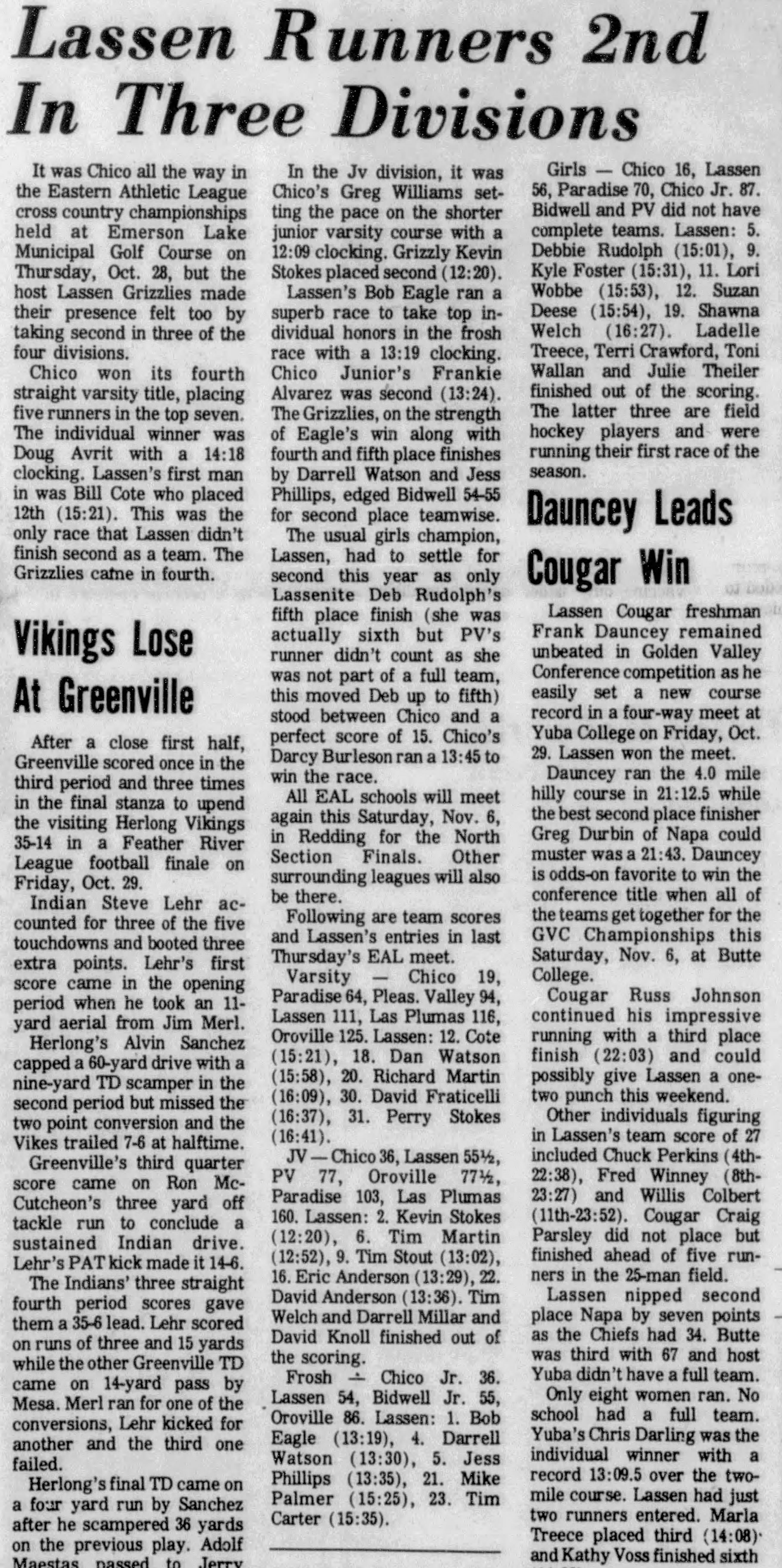 1976 EAL Cross Country Championships Emerson Lake Golf Course Susanville, California Thursday October 28, 1976