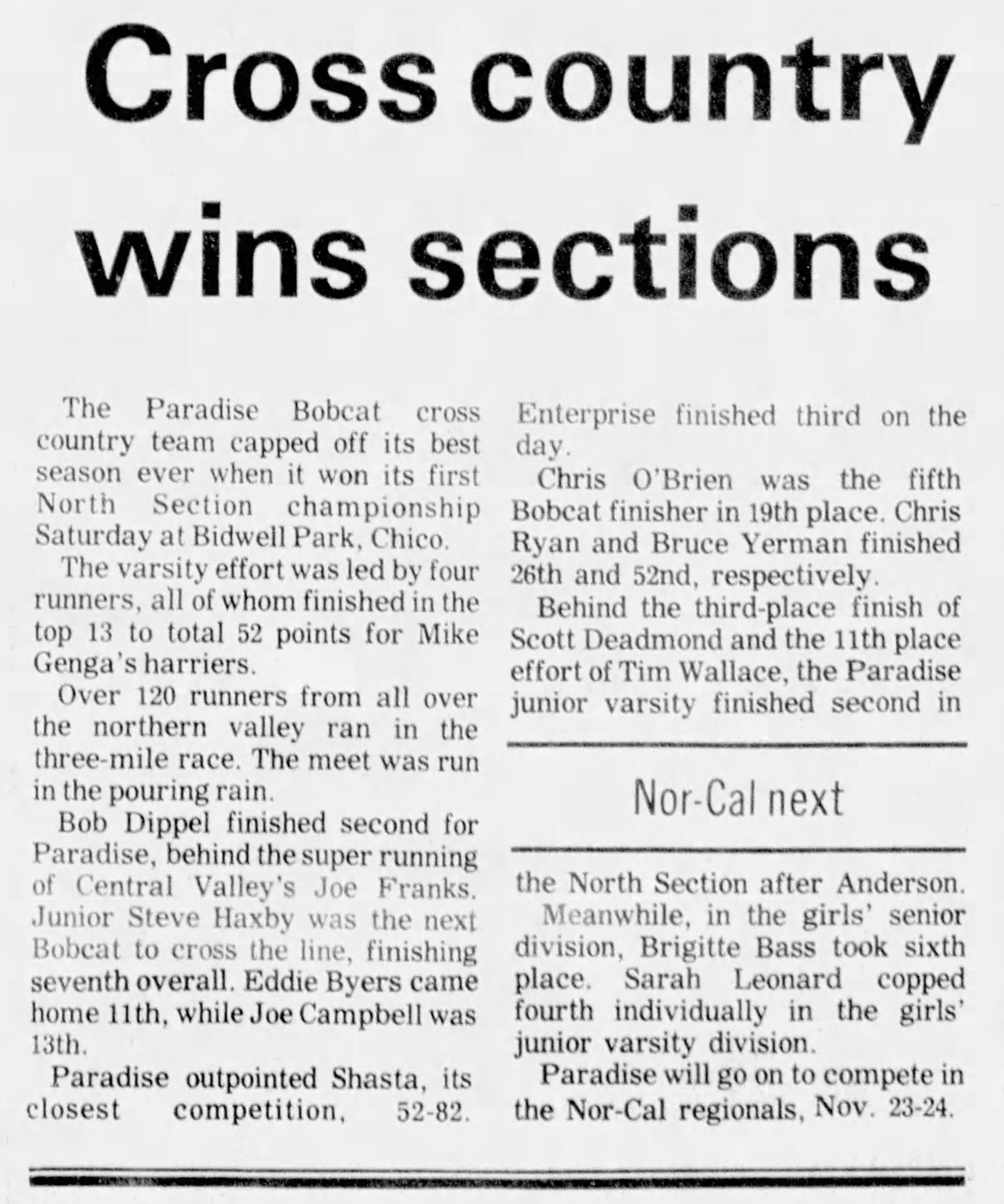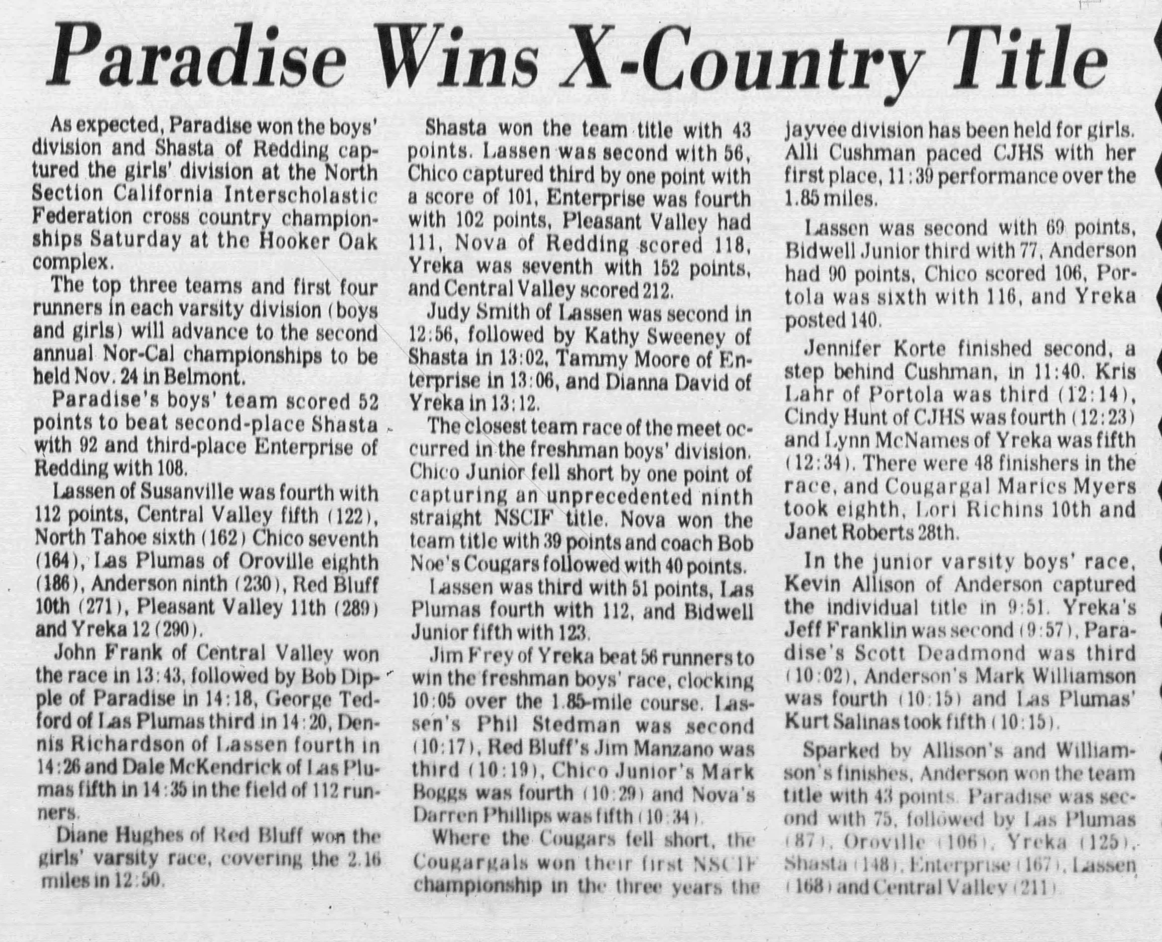1979 NSCIF Cross Country Championships Hooker Oak Recreation Area (Chico HS host) Chico, California Saturday November 3, 1979