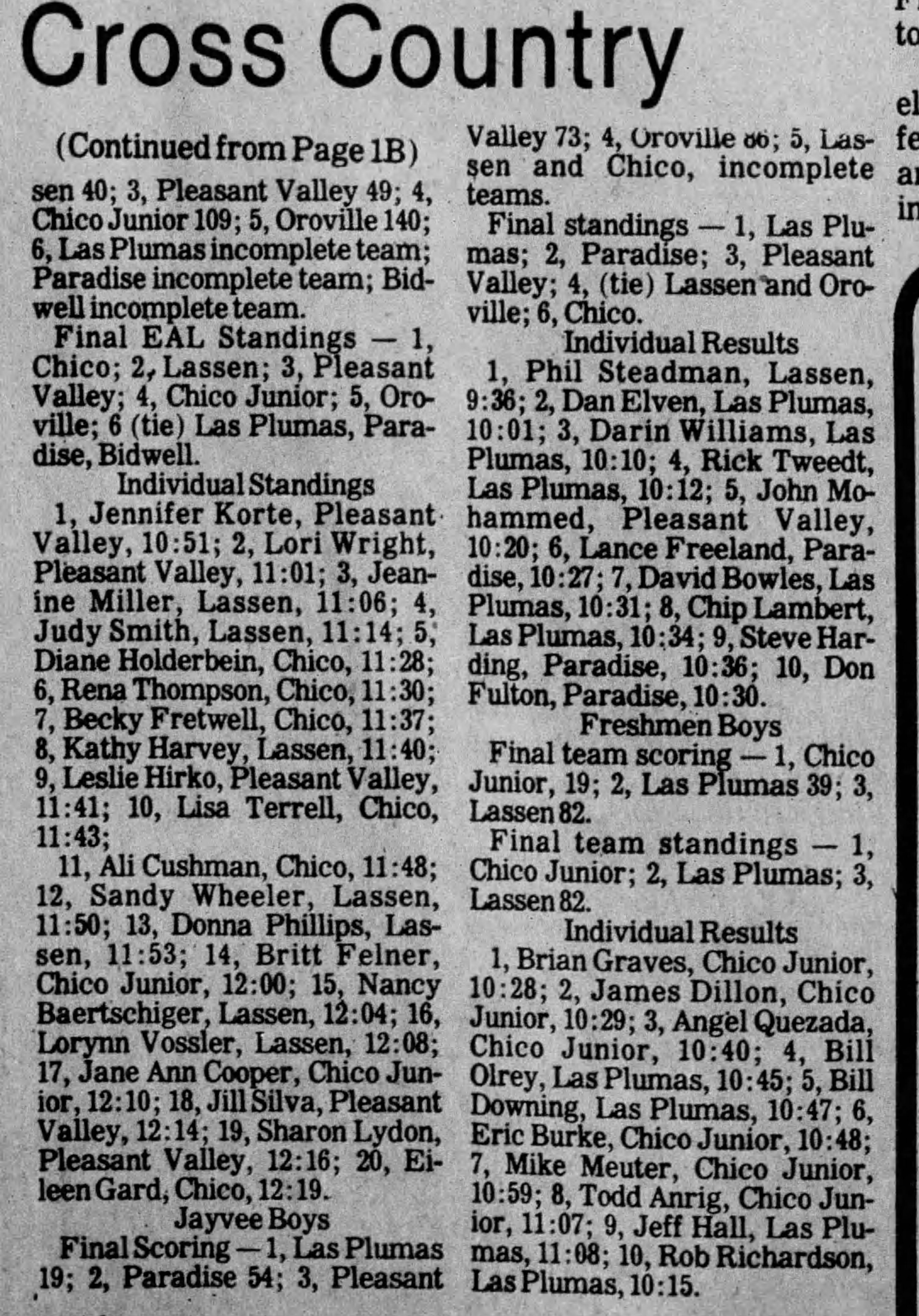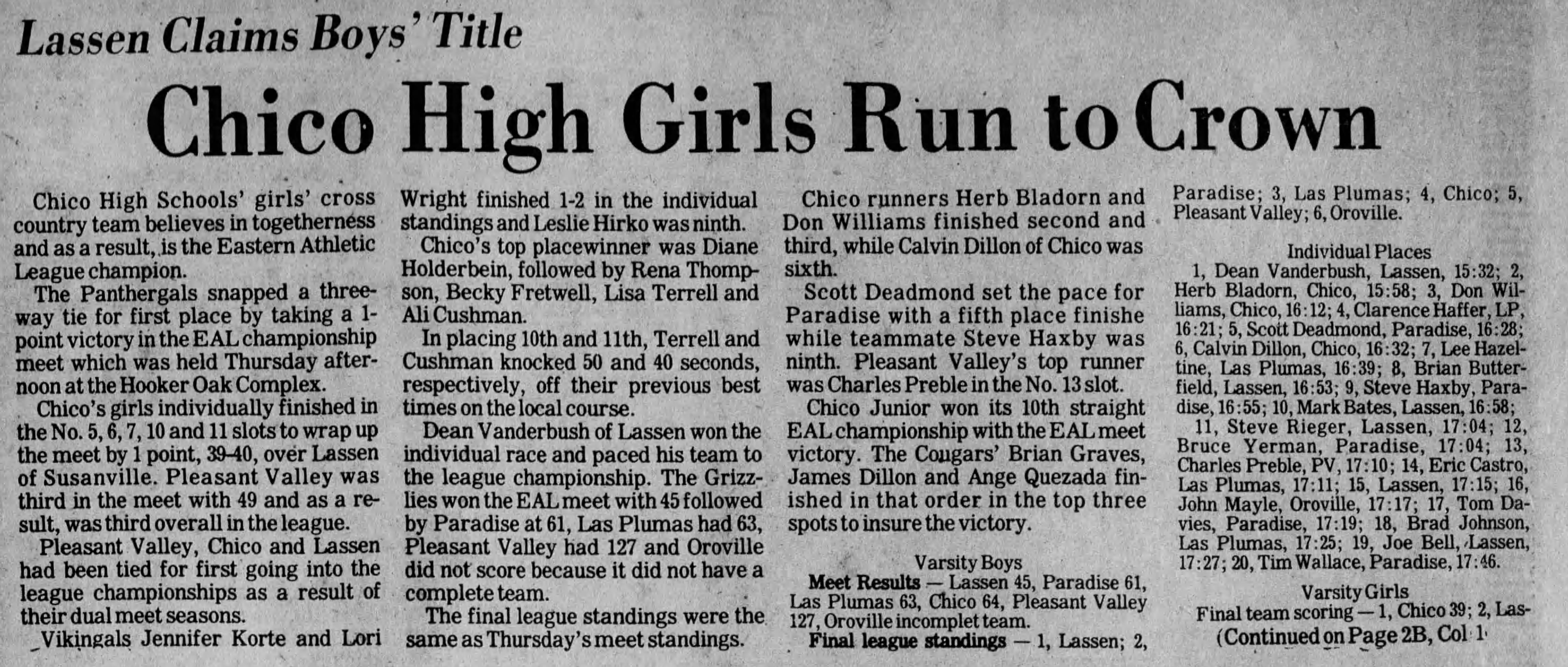1980 EAL Cross Country Championships Hooker Oak Recreation Area Chico, California Thursday October 30, 1980