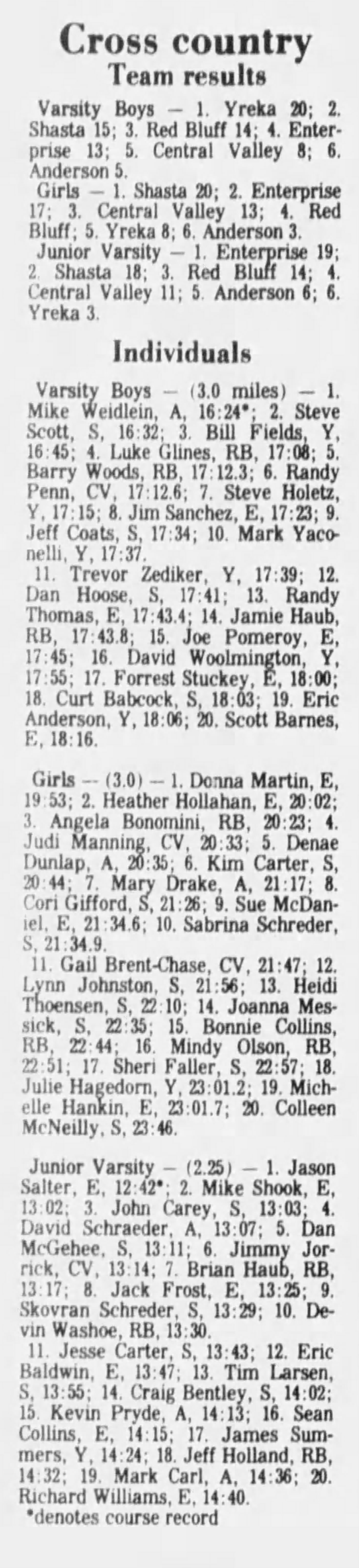 1983 NAL Cross Country Championships Red Bluff High School Red Bluff, California Thursday October 27, 1983