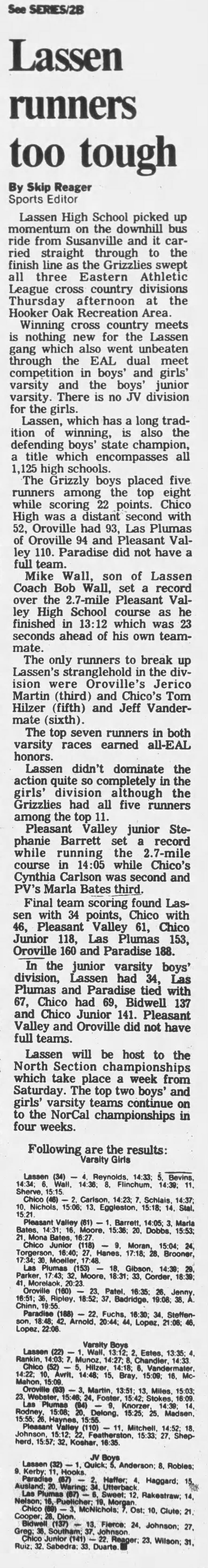 1985 EAL Cross Country Championships Hooker Oak Recreation Area Chico, California Thursday October 24, 1985