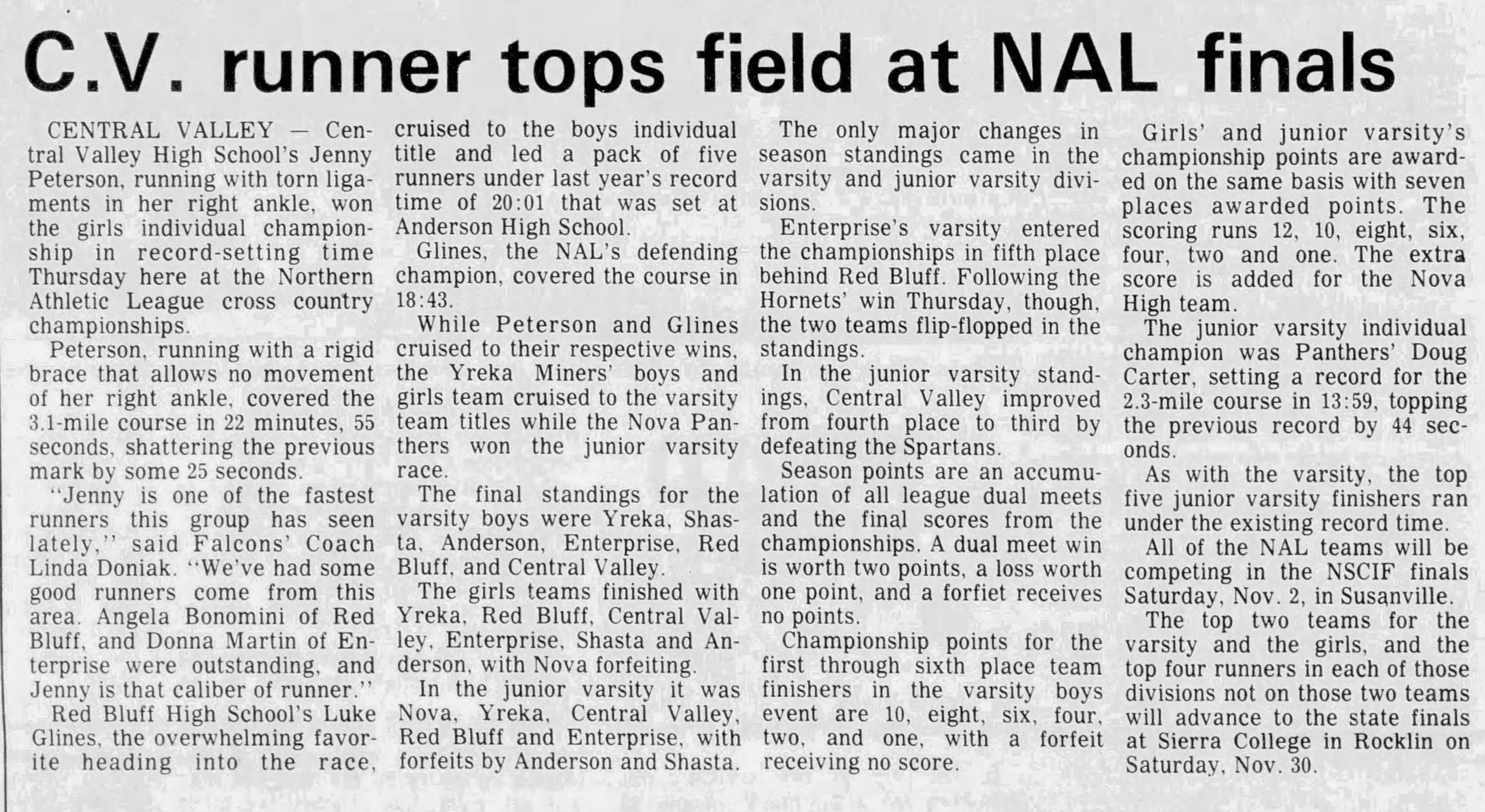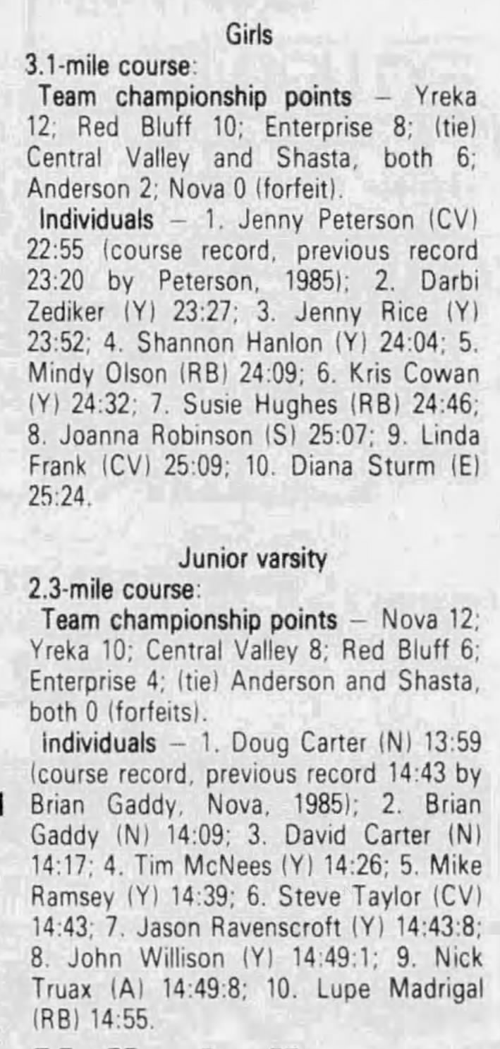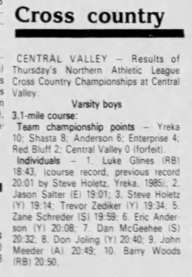 1985 NAL Cross Country Championships Central Valley High School Central Valley*, California Thursday October 24, 1985 *now known as Shasta Lake