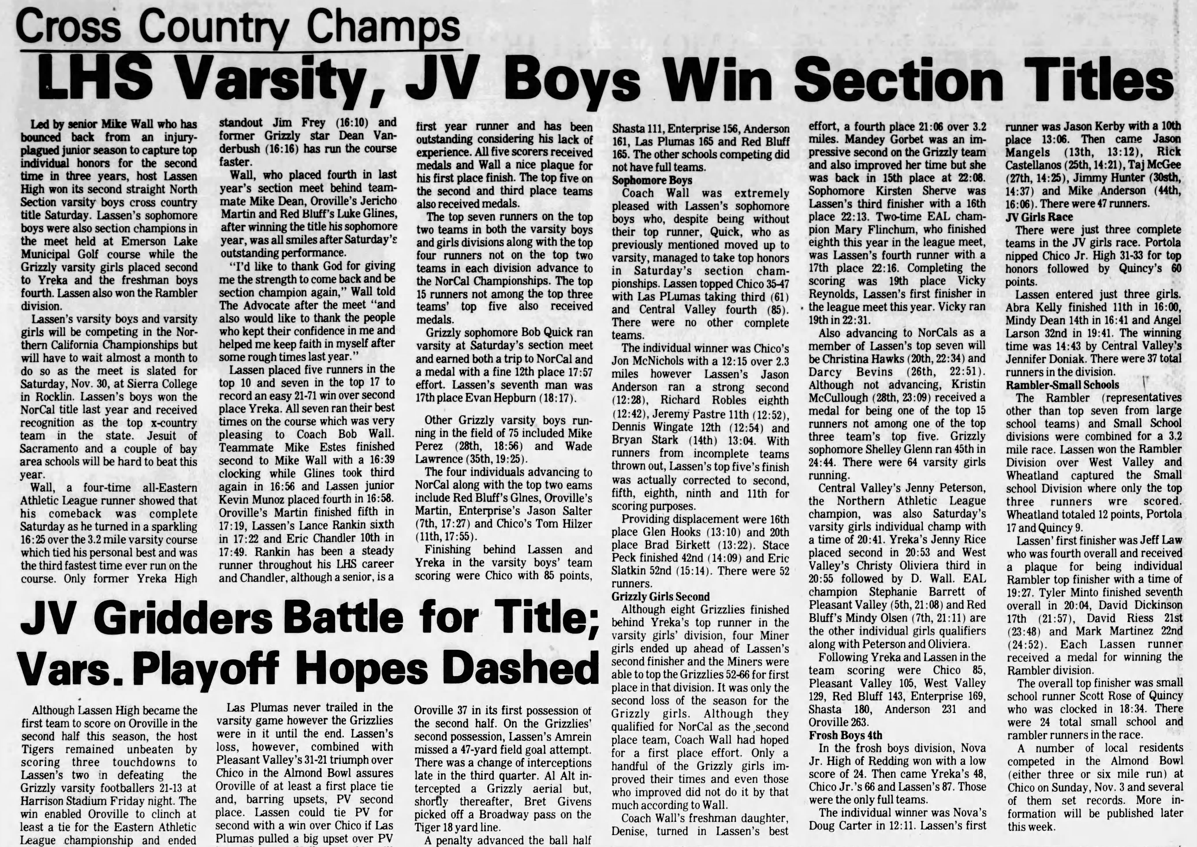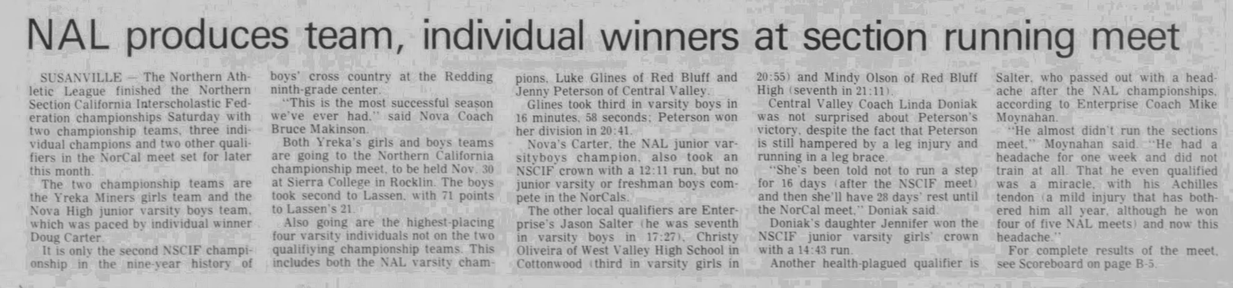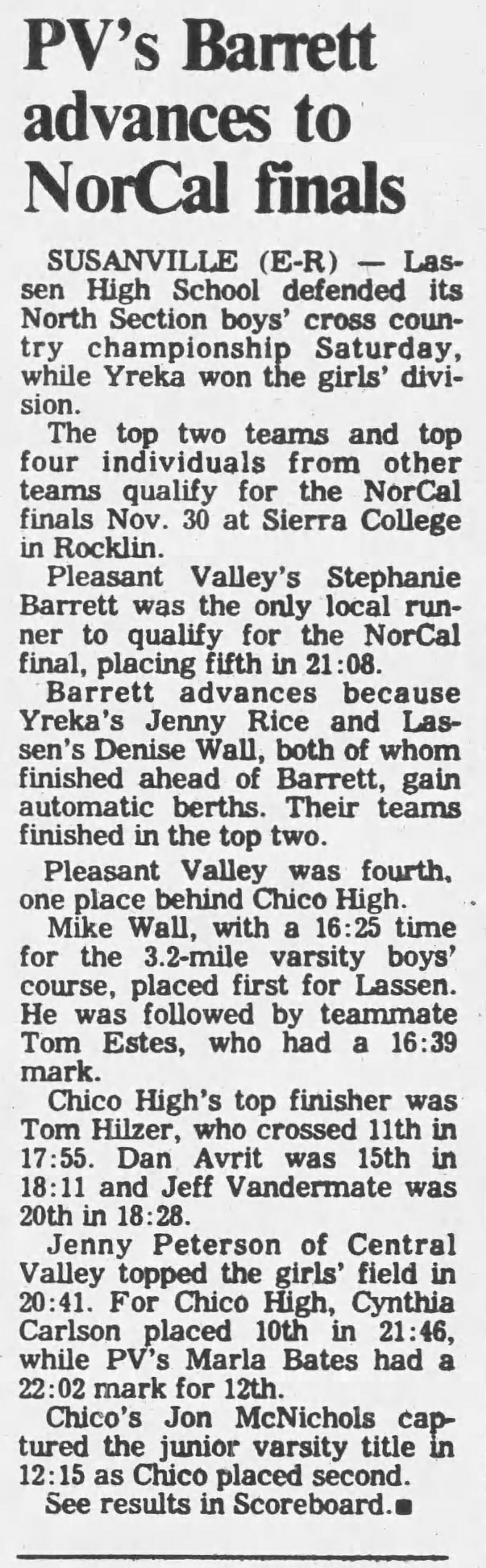 1985 NSCIF Cross Country Championships Emerson Lake Municipal Golf Course Susanville, California Saturday November 2, 1985 complete results