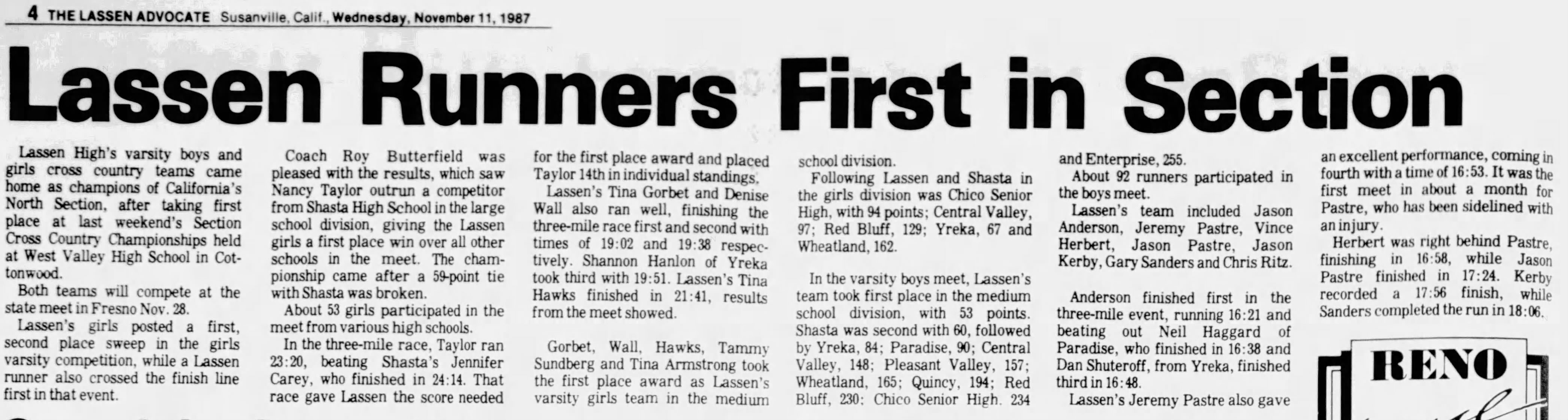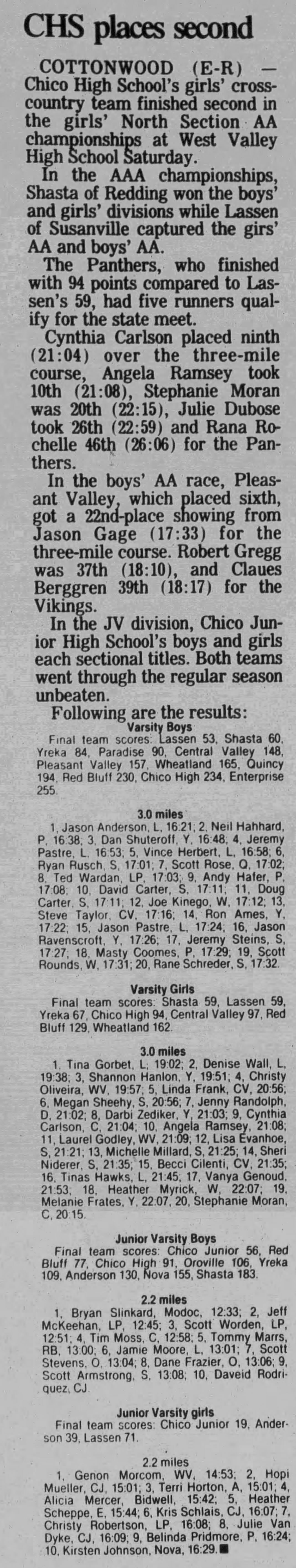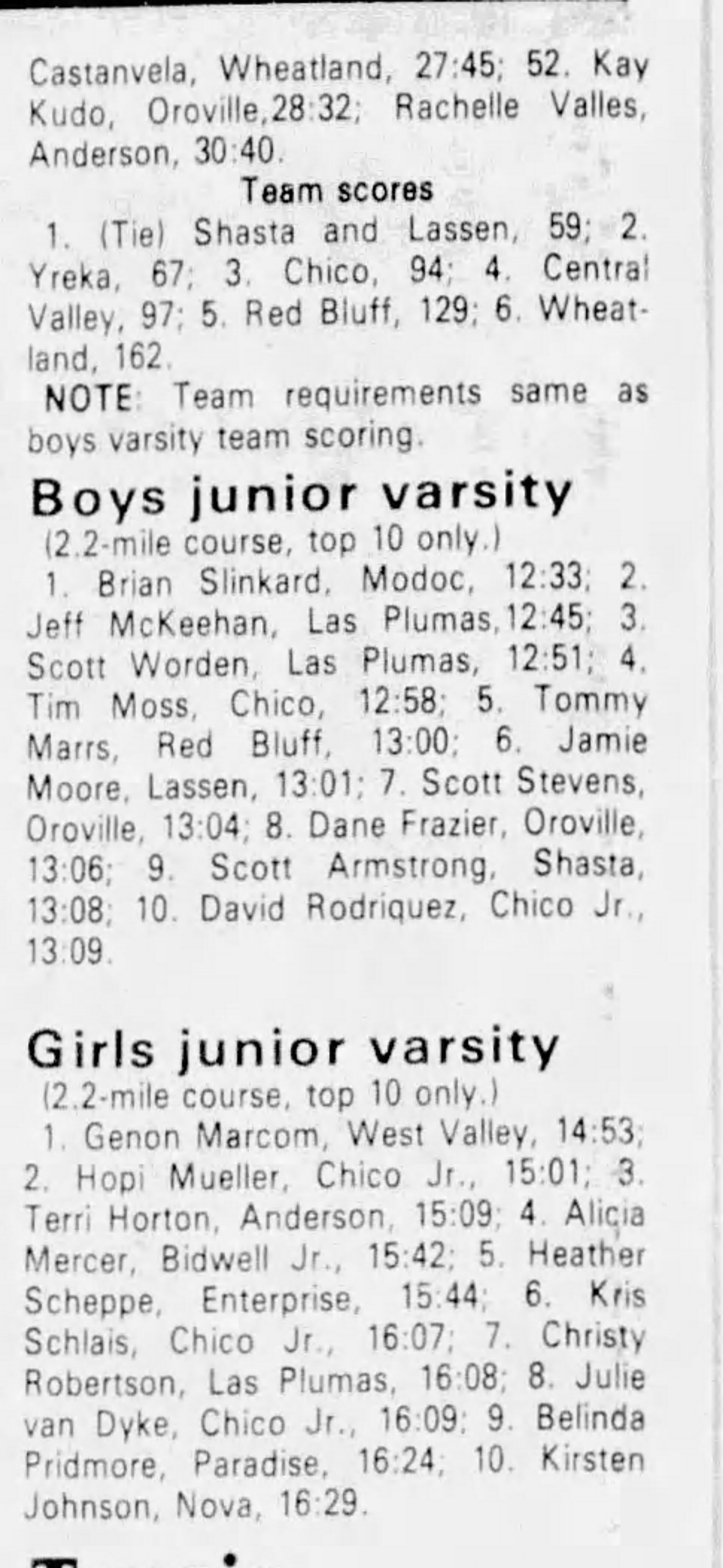 1987 NSCIF Cross Country Championships West Valley HS (old powerline course) Cottonwood, California Saturday November 7, 1987