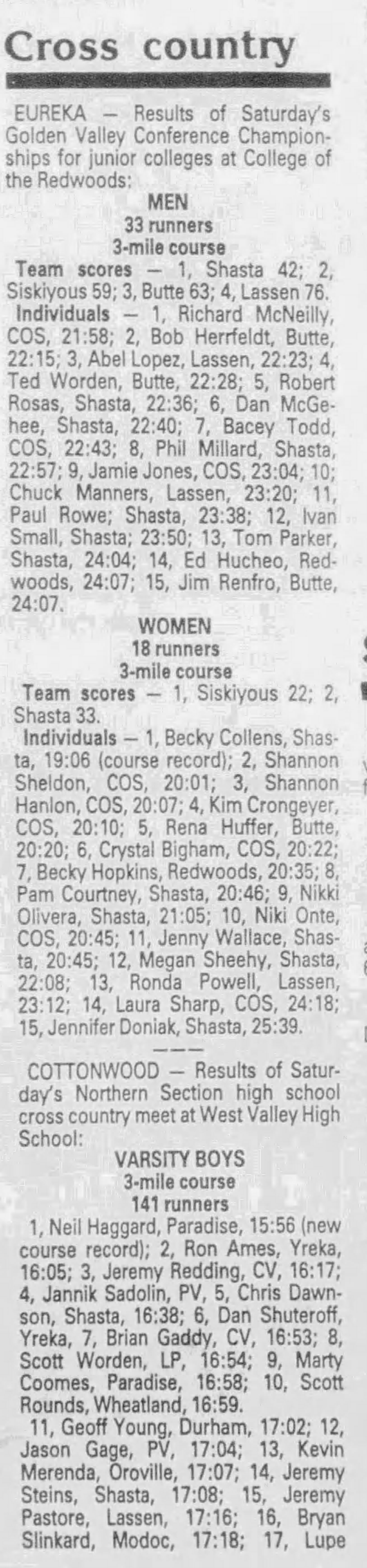 1988 NSCIF Cross Country Championships West Valley HS (old powerline course) Cottonwood, California Saturday November 5, 1988