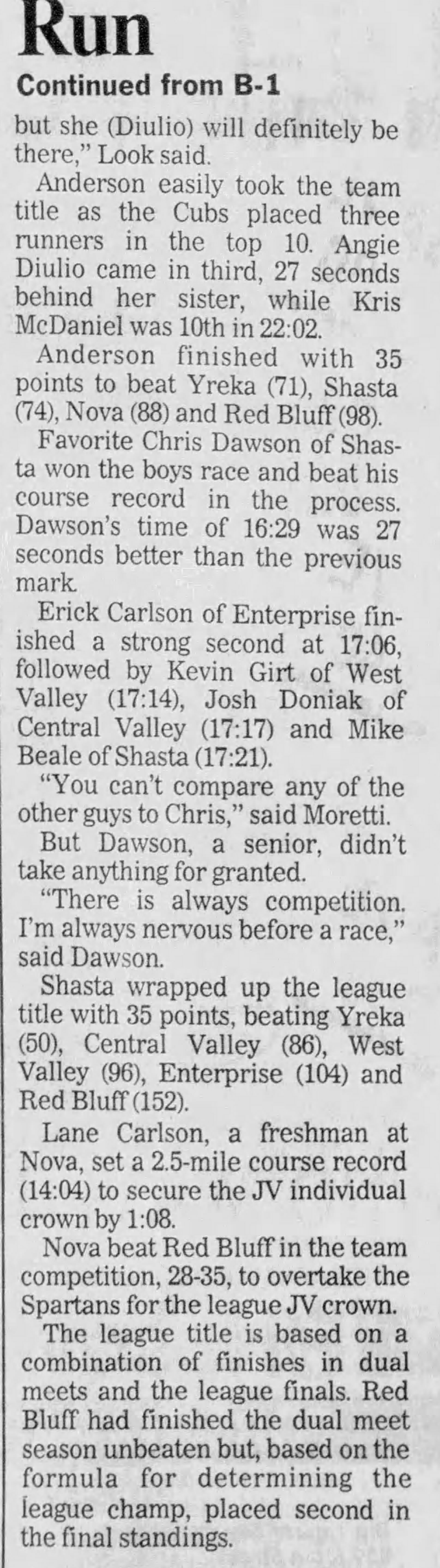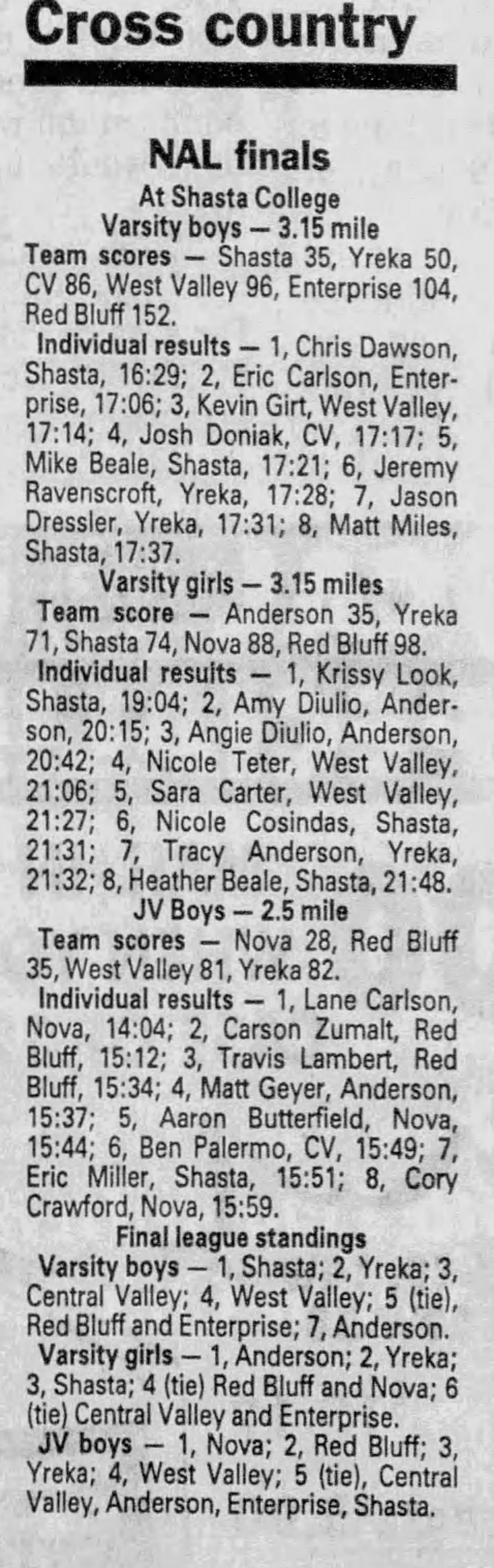 1990 NAL Cross Country Championships Shasta College Redding, California Thursday October 25, 1990 Complete results
