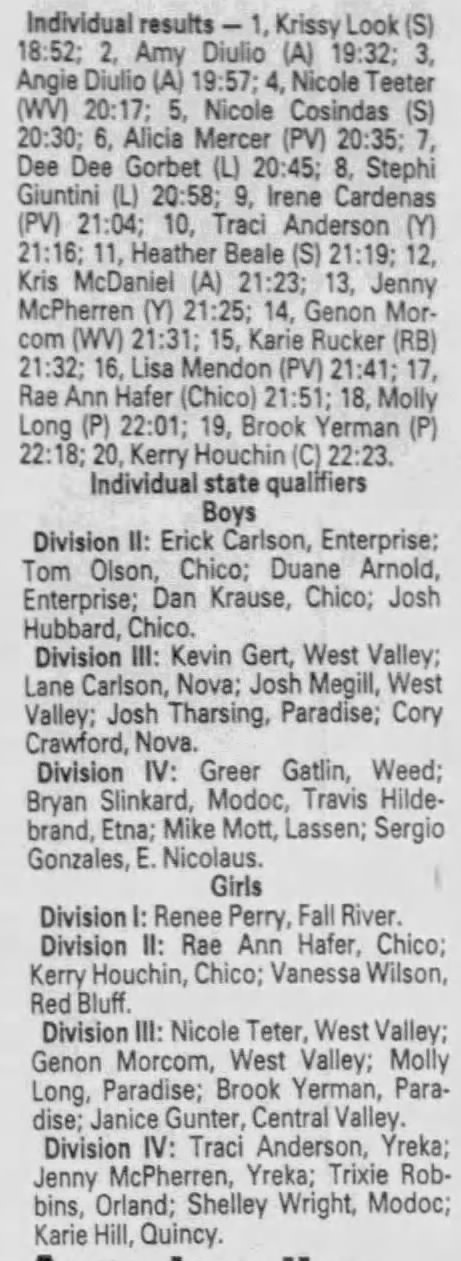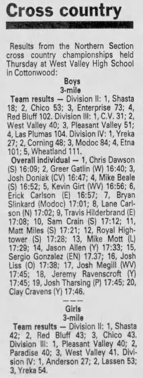 1990 NSCIF Cross Country Championships West Valley HS (old powerline course) Cottonwood, California Thursday November 8, 1990