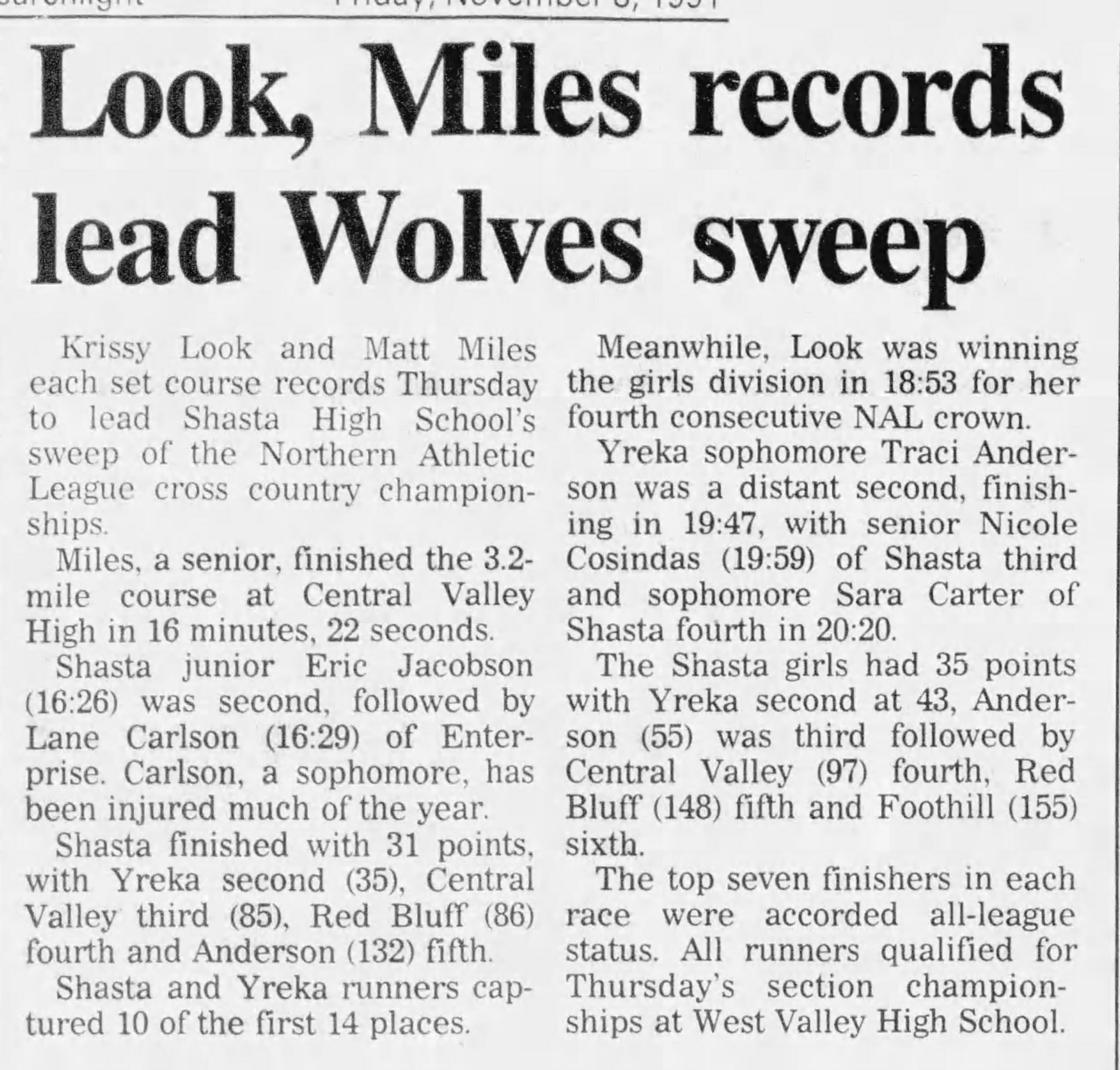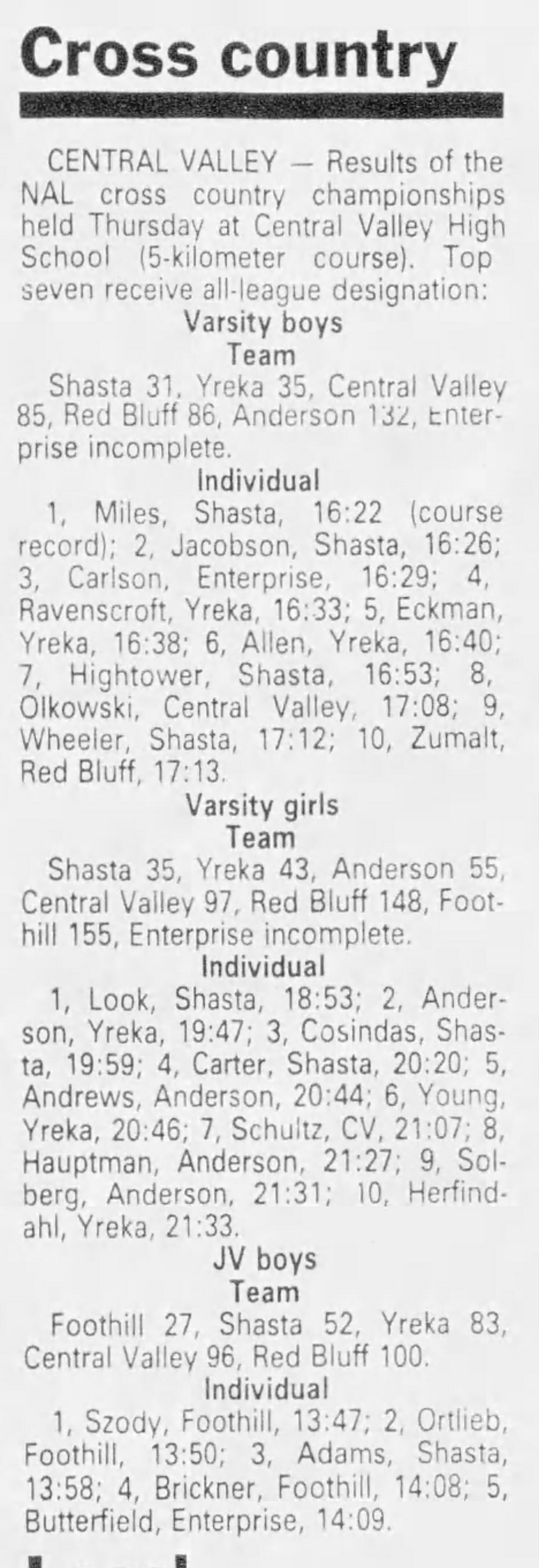 Central Valley HS Redding, California Thursday November 7, 1991