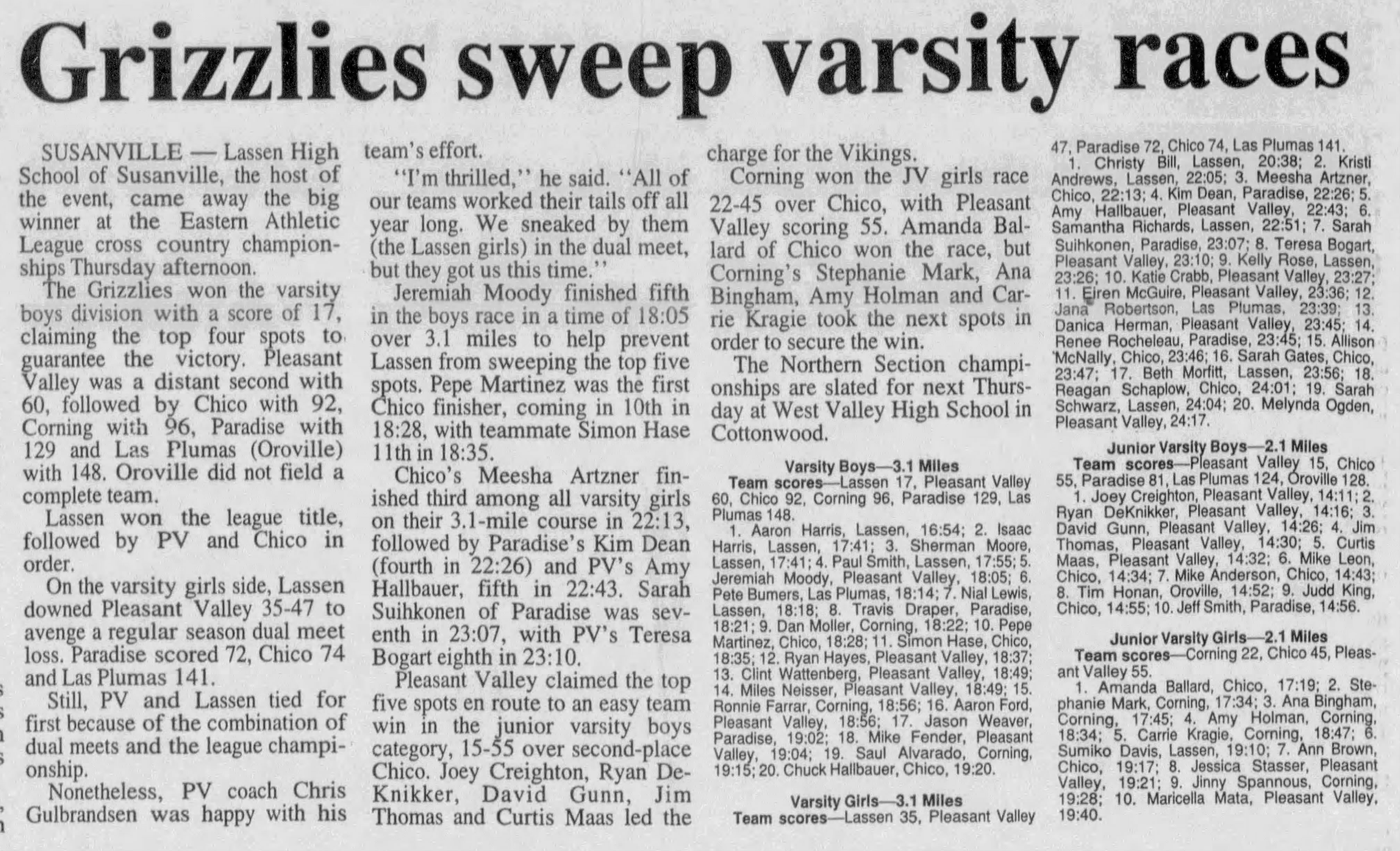 1994 EAL Cross Country Championships Susanville, California Thursday November 3, 1994 Complete results