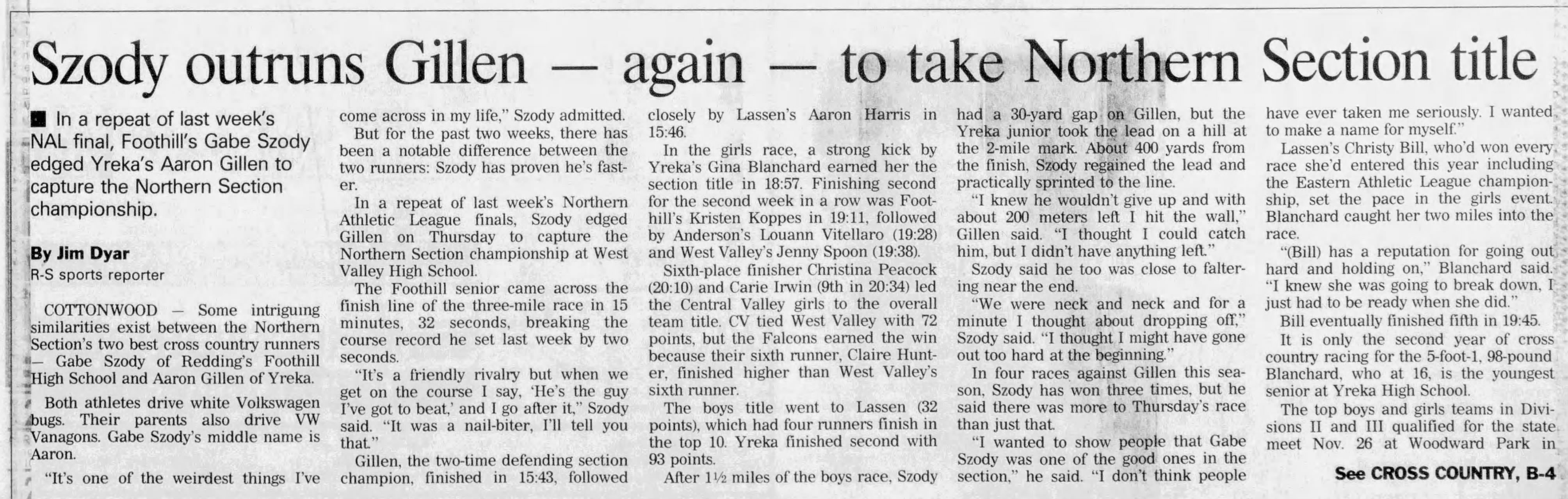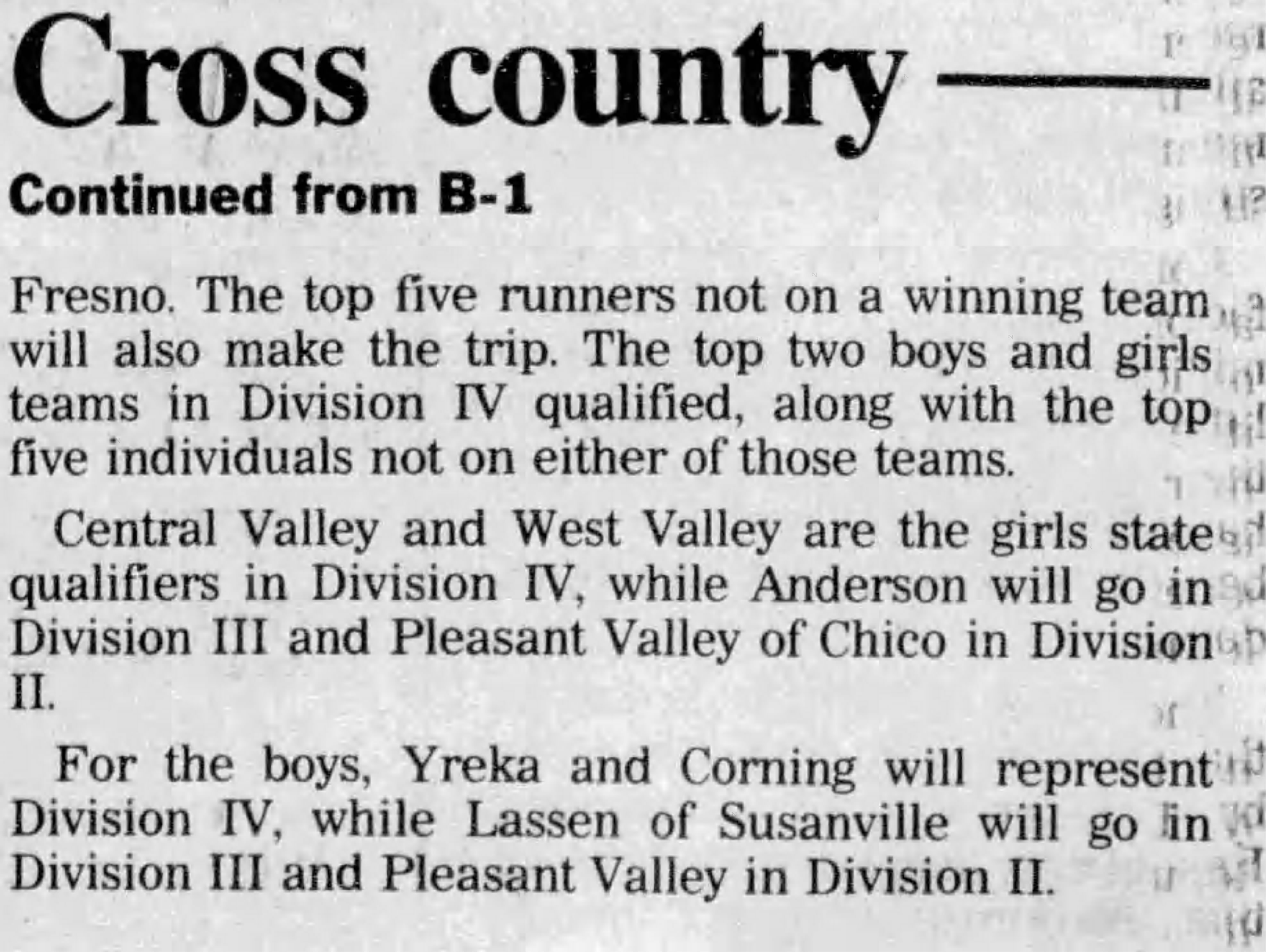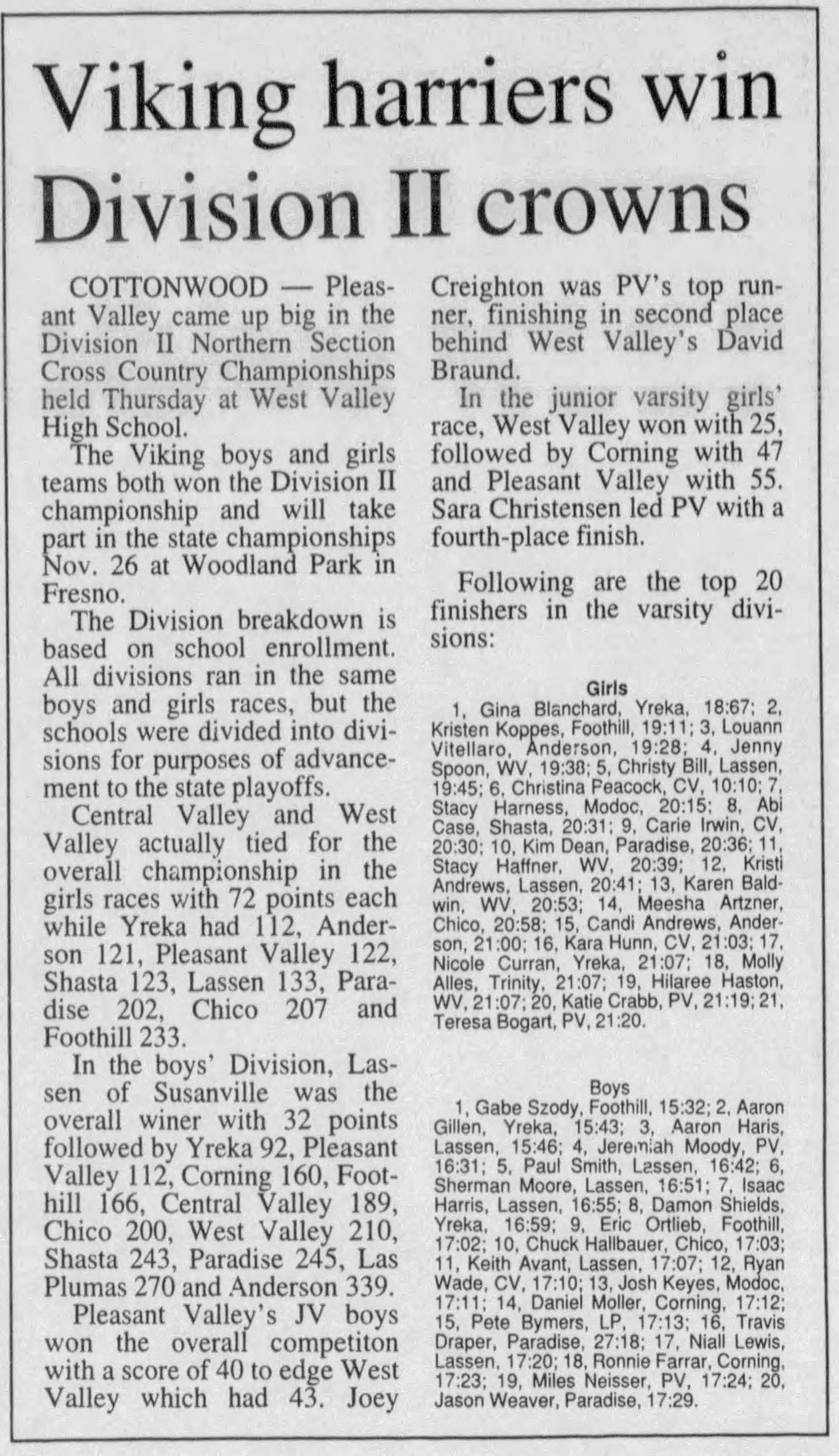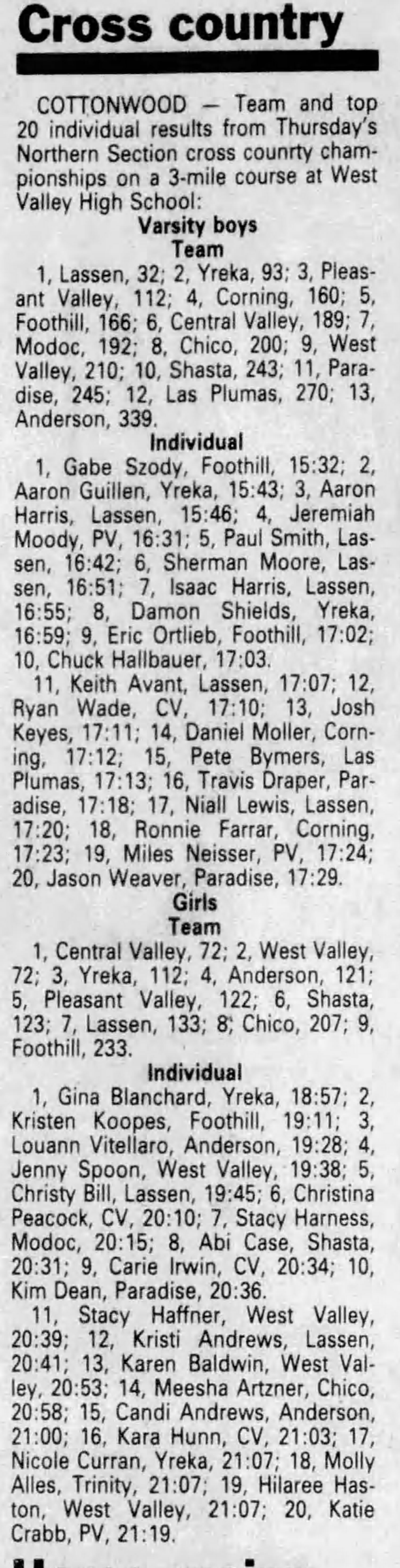 1994 NSCIF Cross Country Championships West Valley HS (current course) Cottonwood, California Thursday November 10, 1994