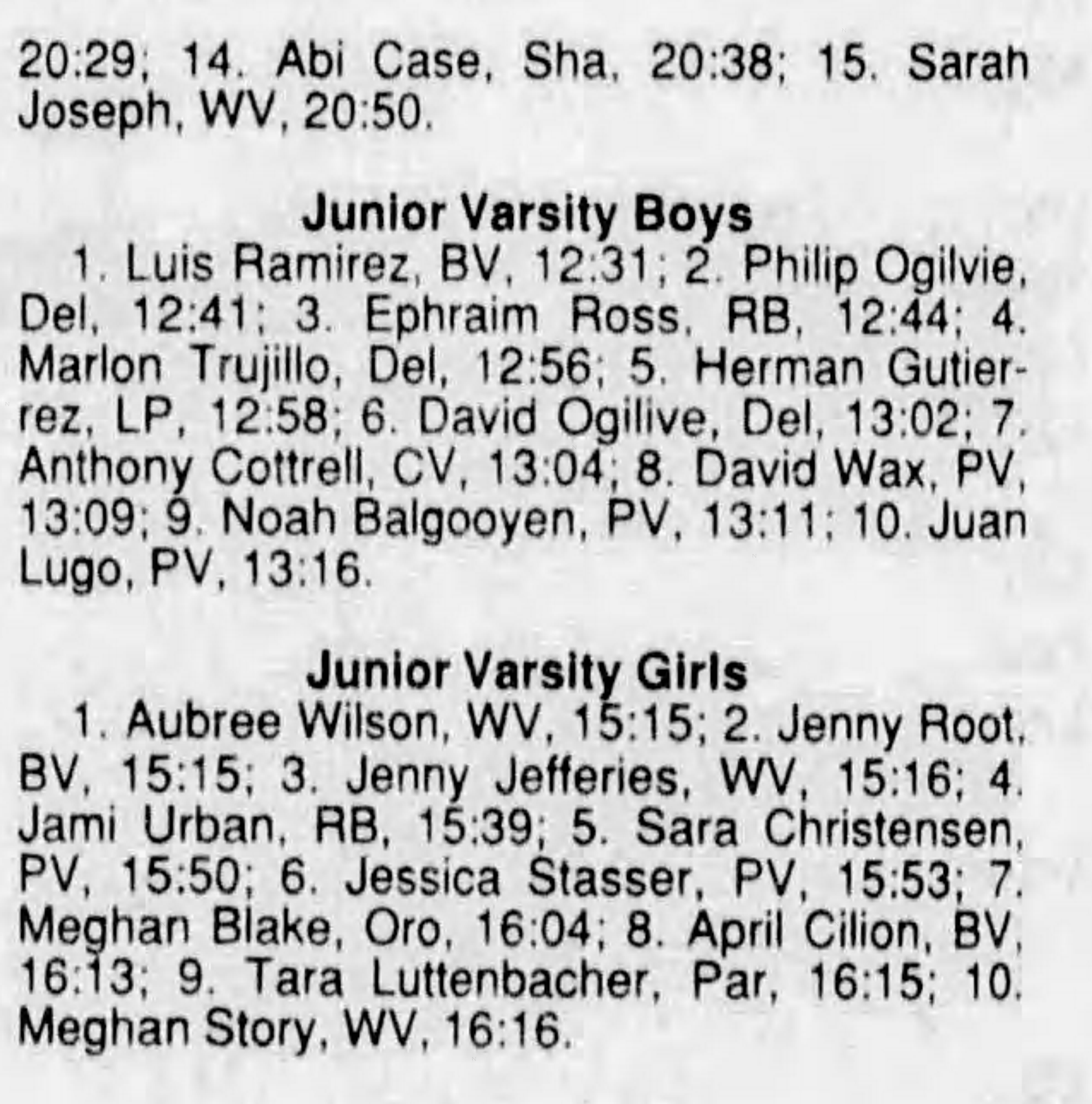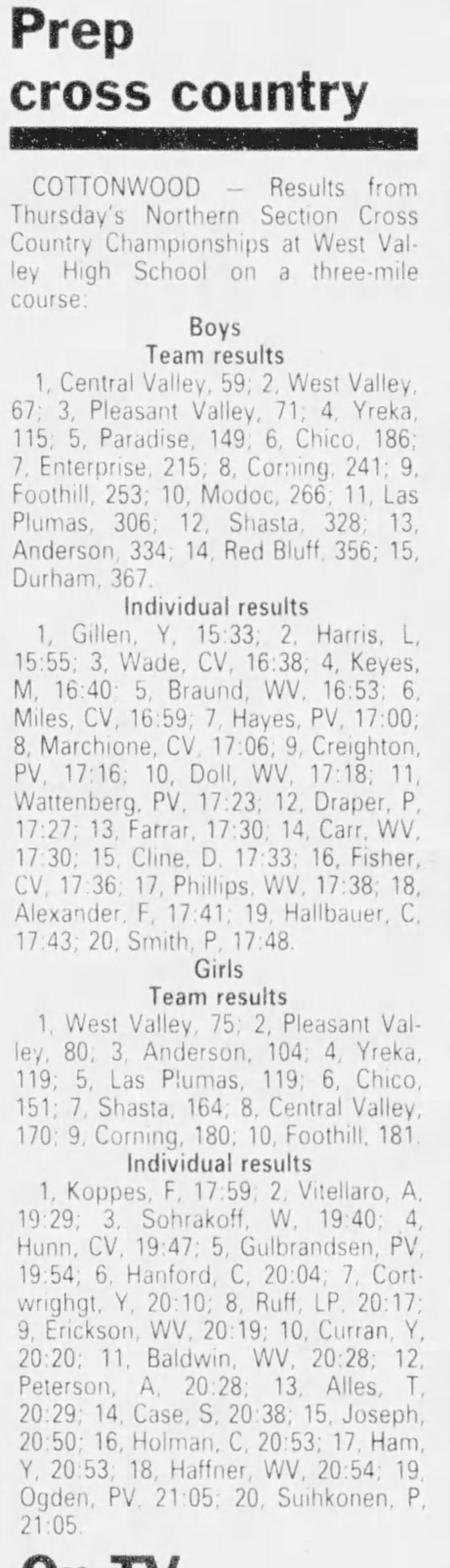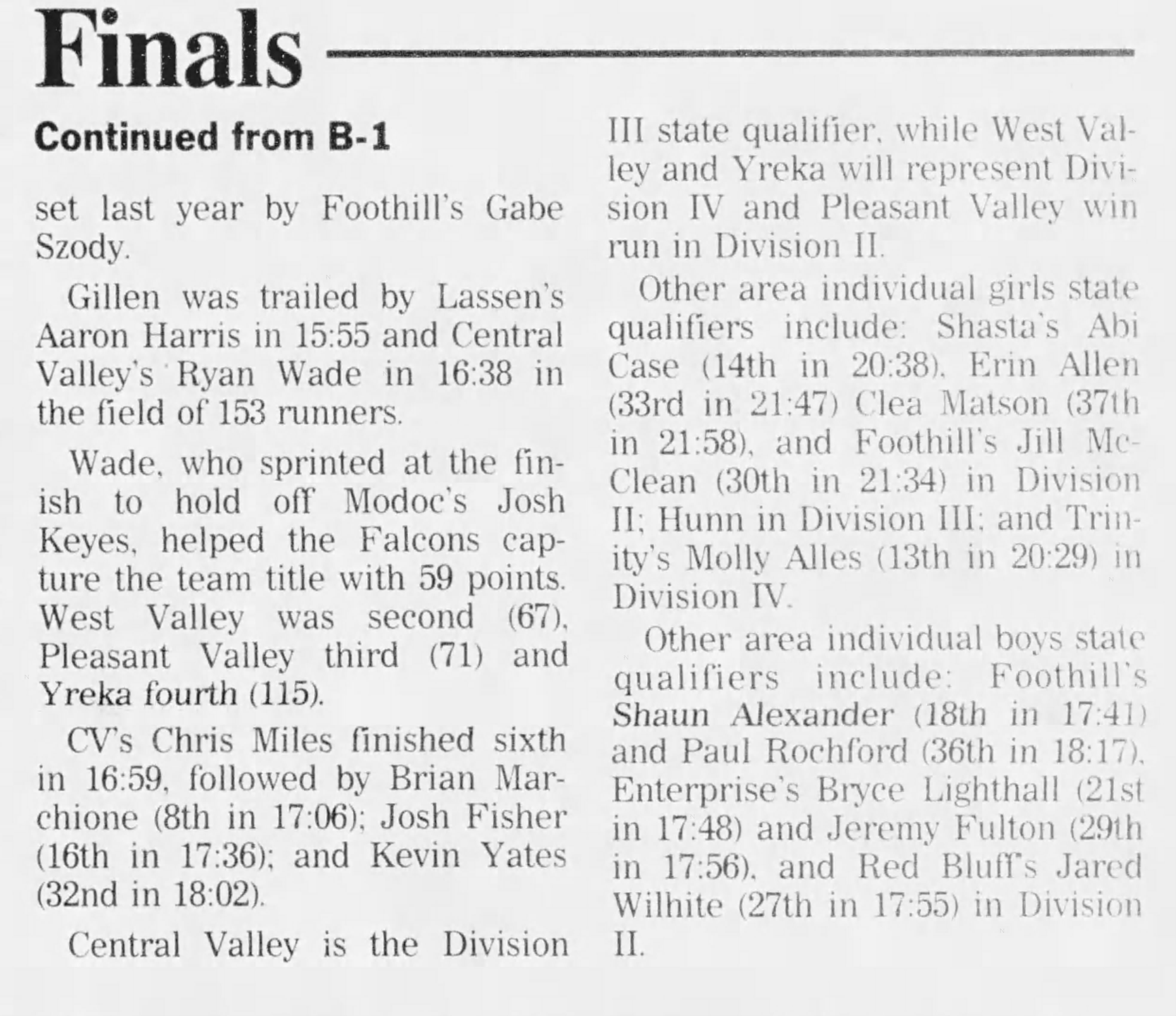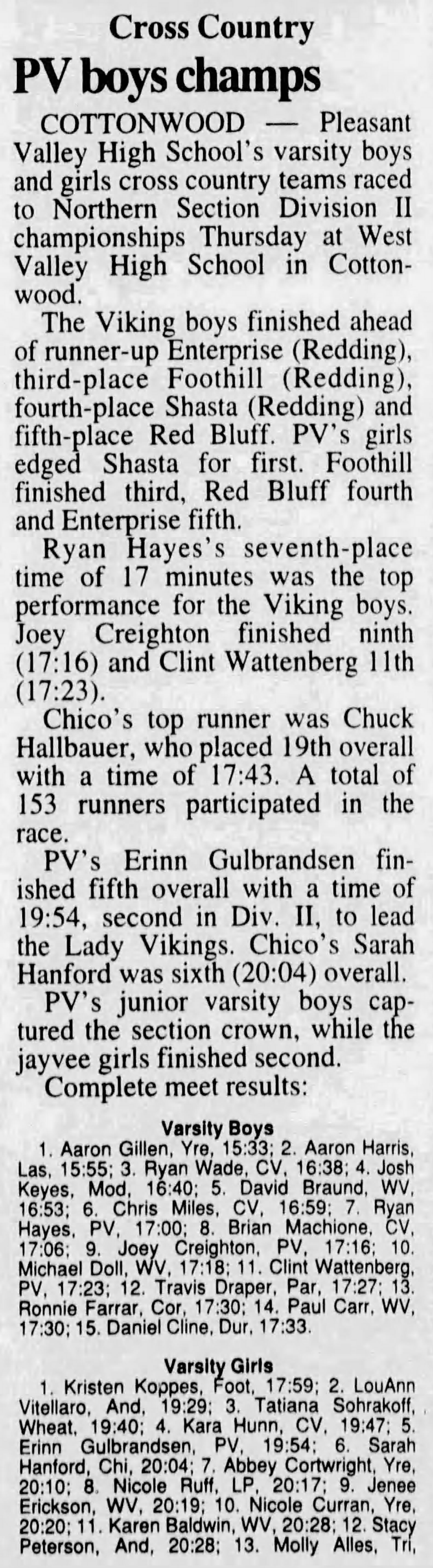 1995 NSCIF Cross Country Championships West Valley HS (current course) Cottonwood, California Thursday November 9, 1995